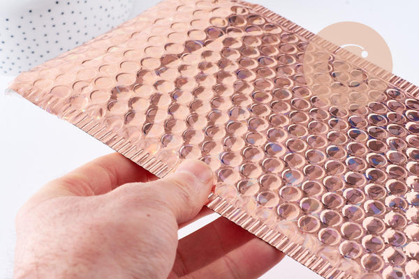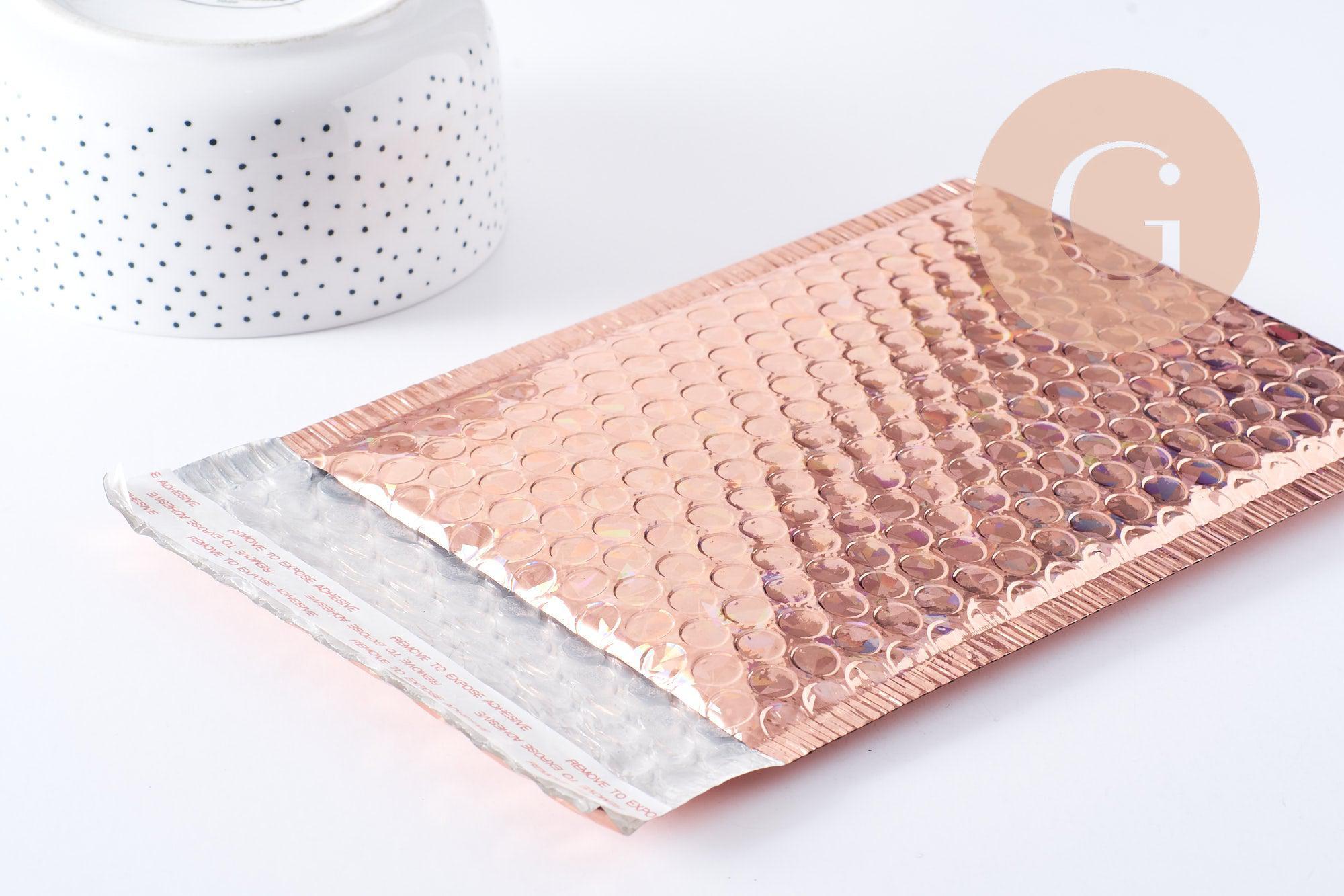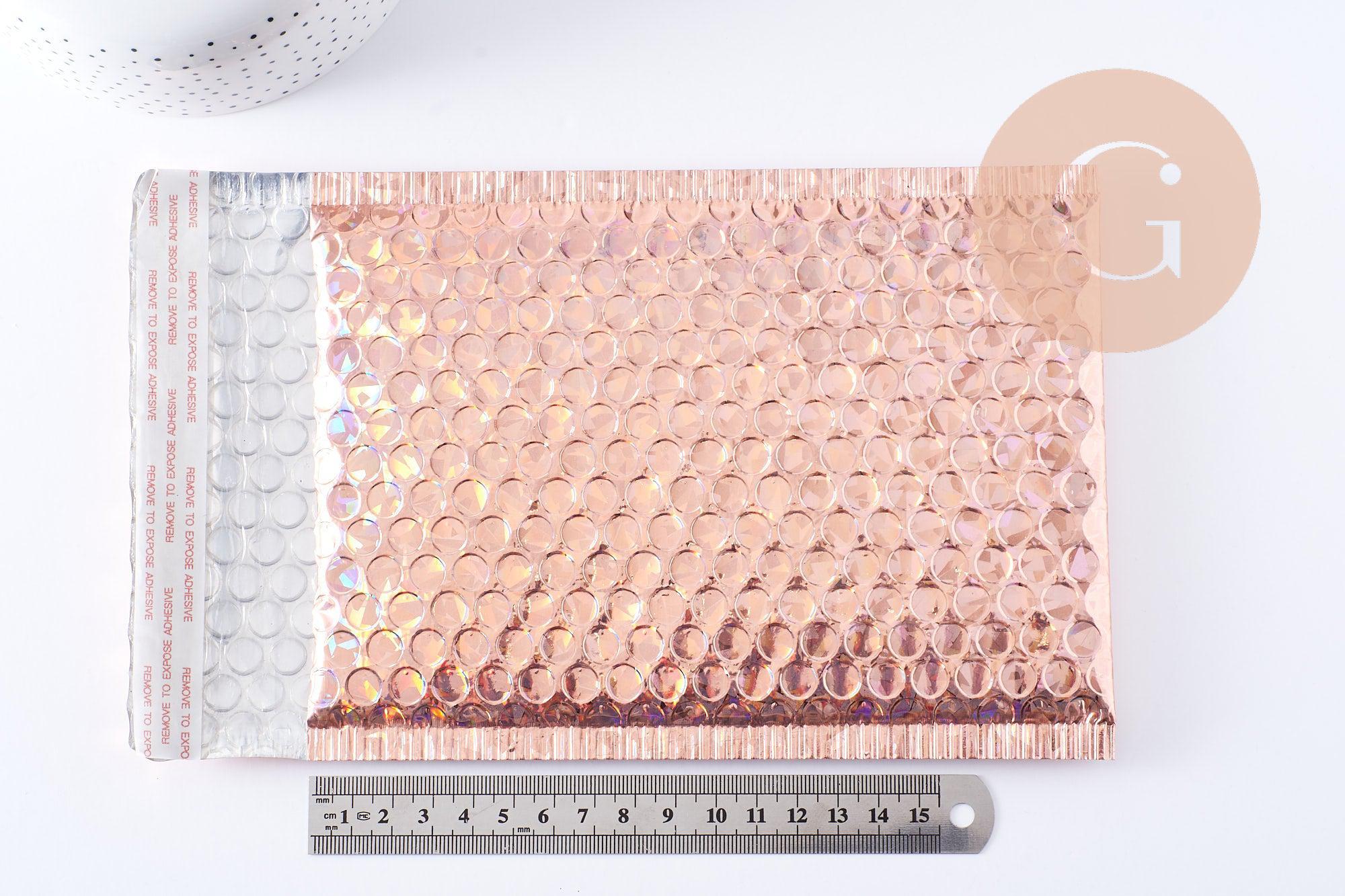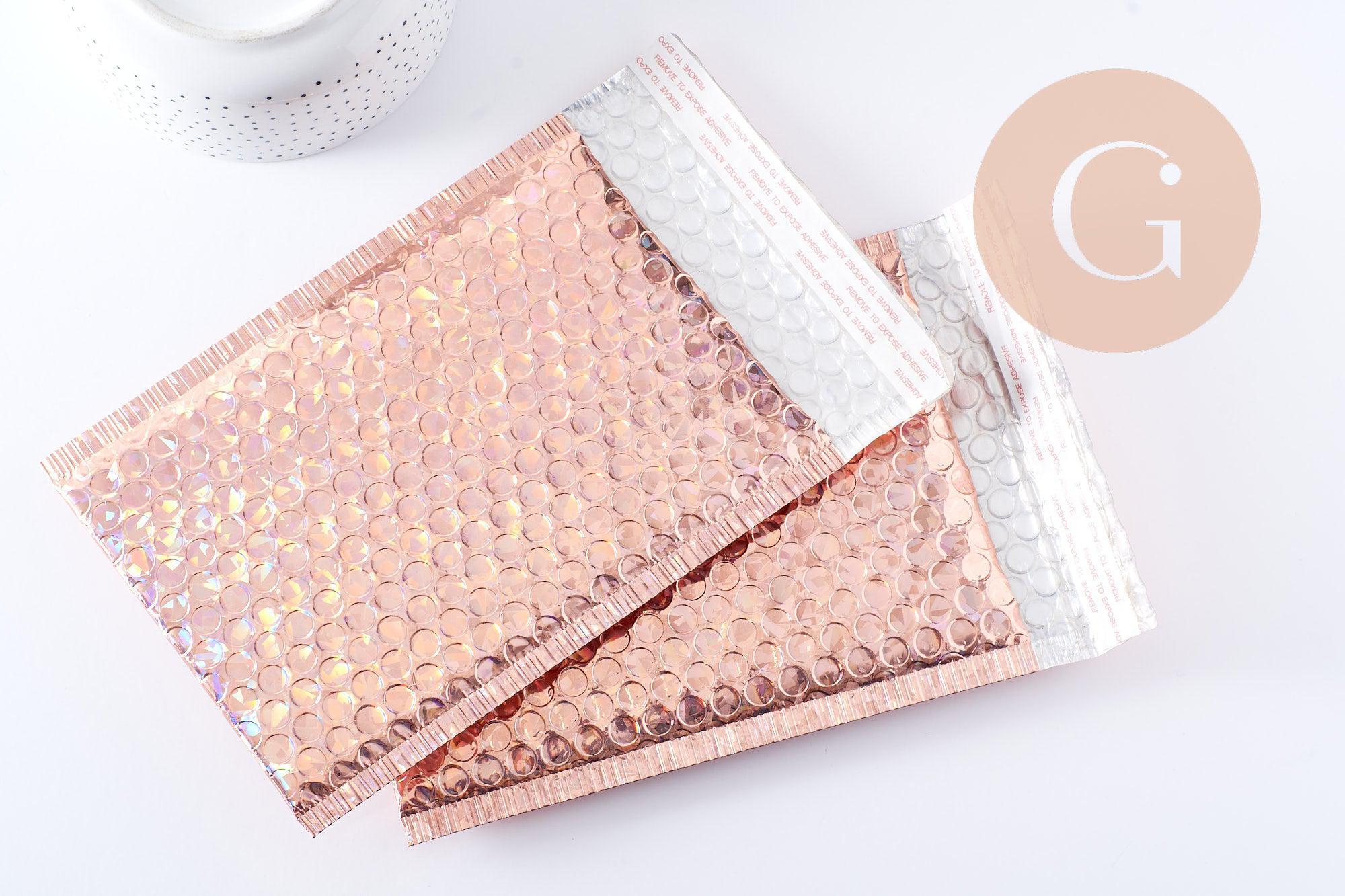 Añade un toque de glamour a tus envíos con estos sobres de burbujas de plástico metálico rosa holográfico .
