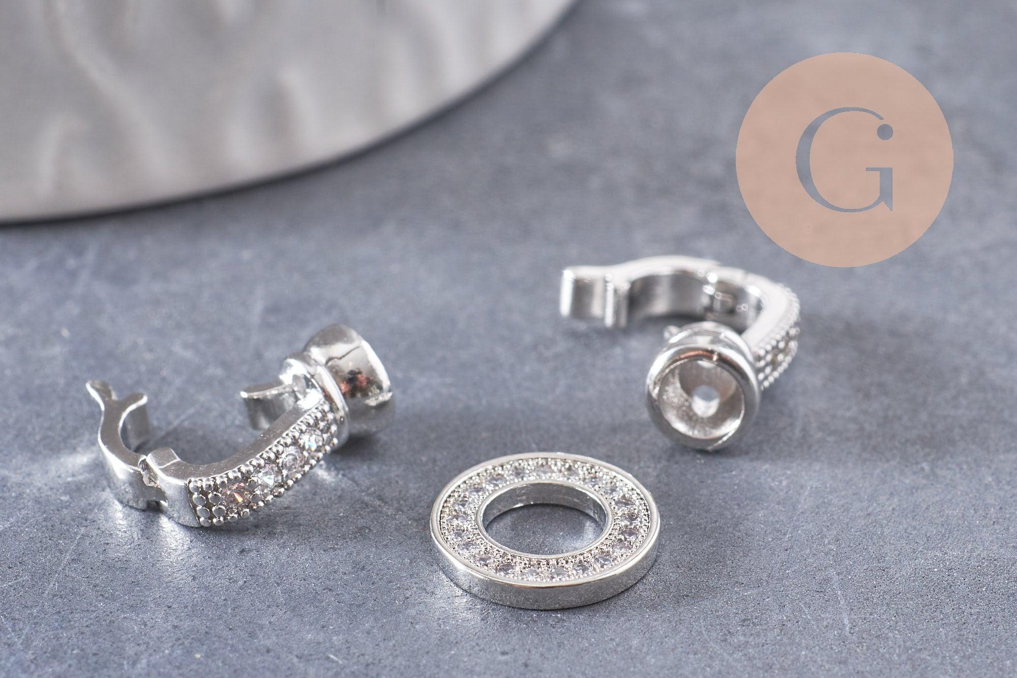 cierre de clip anillos de latón platino y pedrería, cierre de gran calidad, cierre de plata, cierre de lujo, fabricación de joyas, unidad, 27 mm