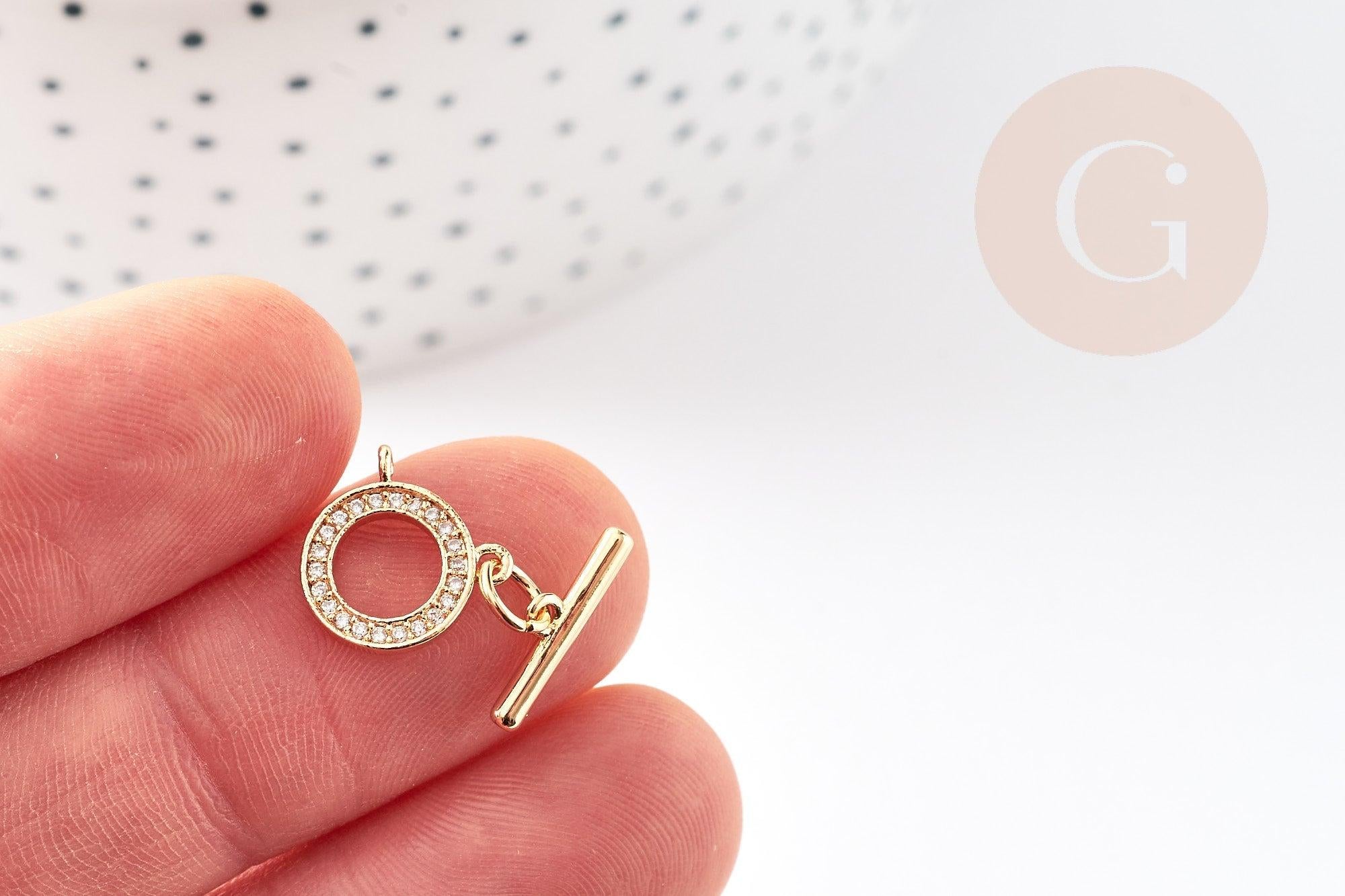 Un cierre en T de latón bañado en oro de 18 quilates y decorado con circonitas blancas para tus collares, pulseras y collares: sólido y de calidad, resaltará todas tus joyas DIY.