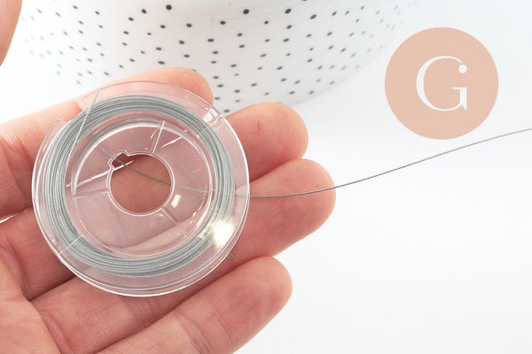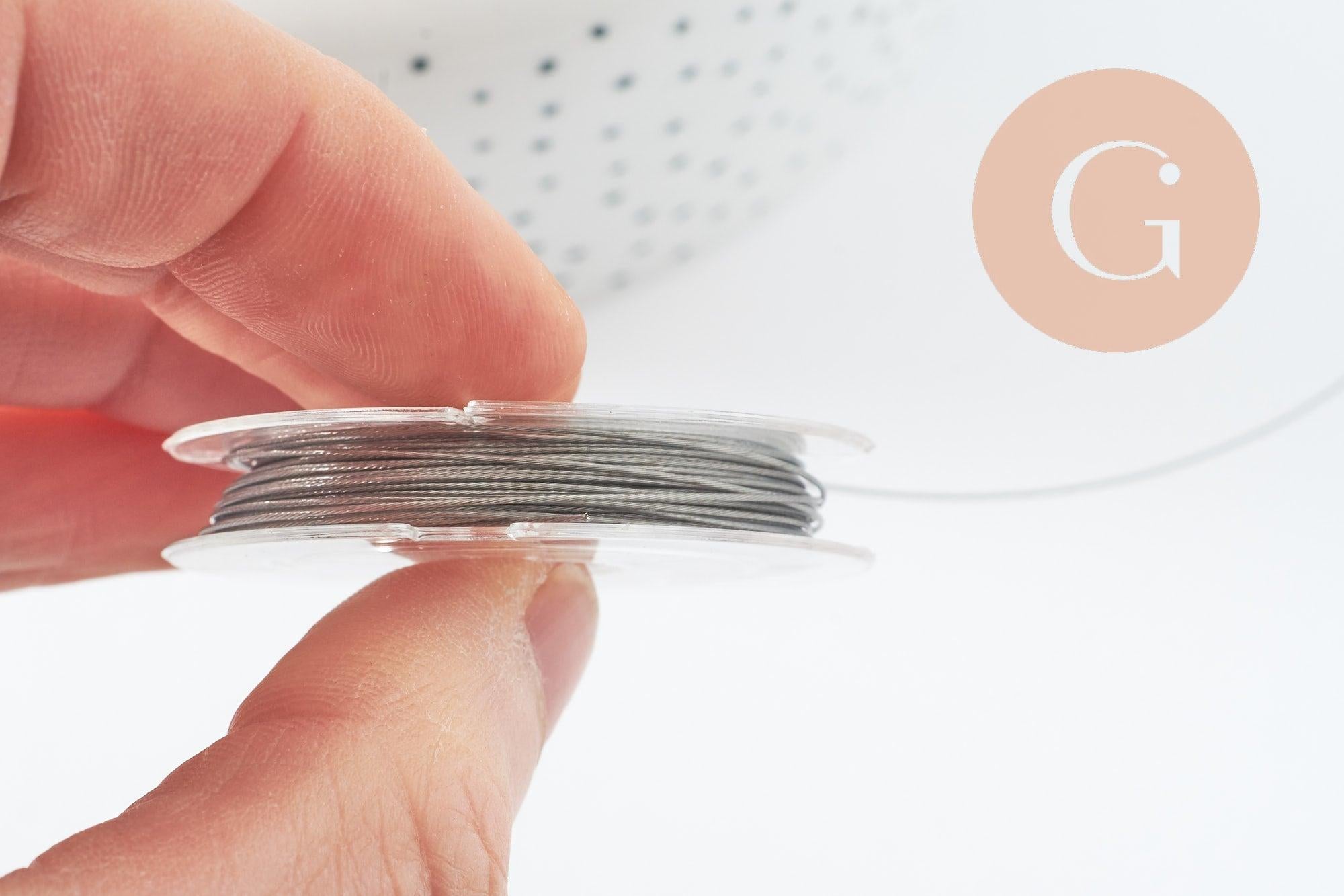 También llamado cable de alambre o “stringing wire”, el cable de cable enfundado está formado por pequeños hilos de acero inoxidable trenzados entre sí y rodeados por una película de nailon, lo que lo hace muy resistente y confiere a tus creaciones una verdadera sujeción.