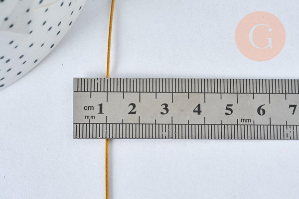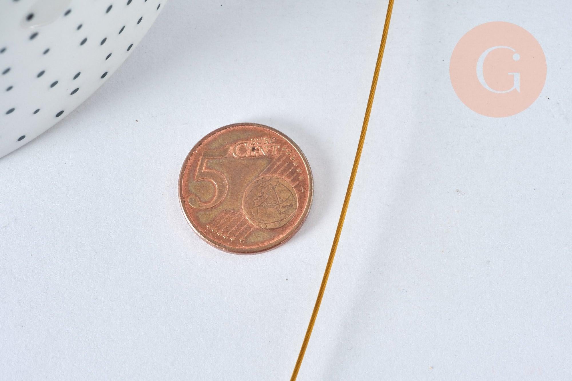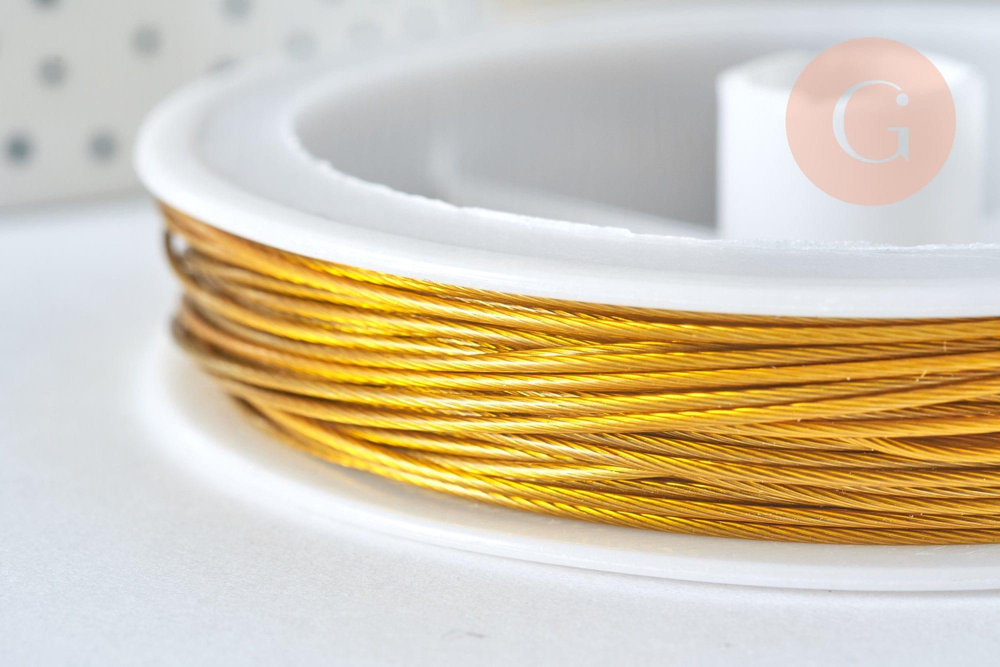 Este alambre de acero inoxidable dorado de 0,8 mm es perfecto para crear bisutería; generalmente se utiliza para ensartar cuentas en la elaboración de collares, pulseras o pendientes.
