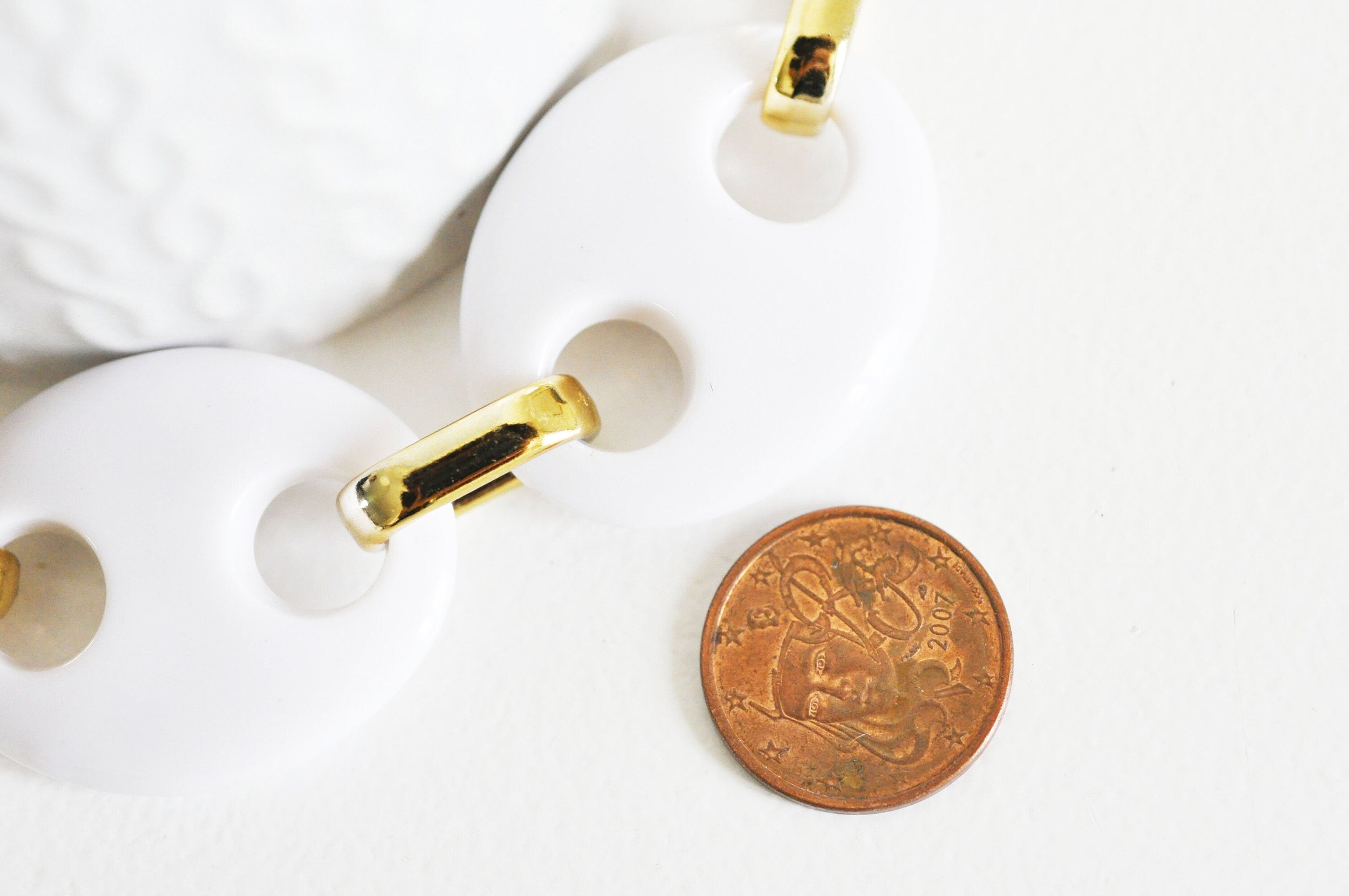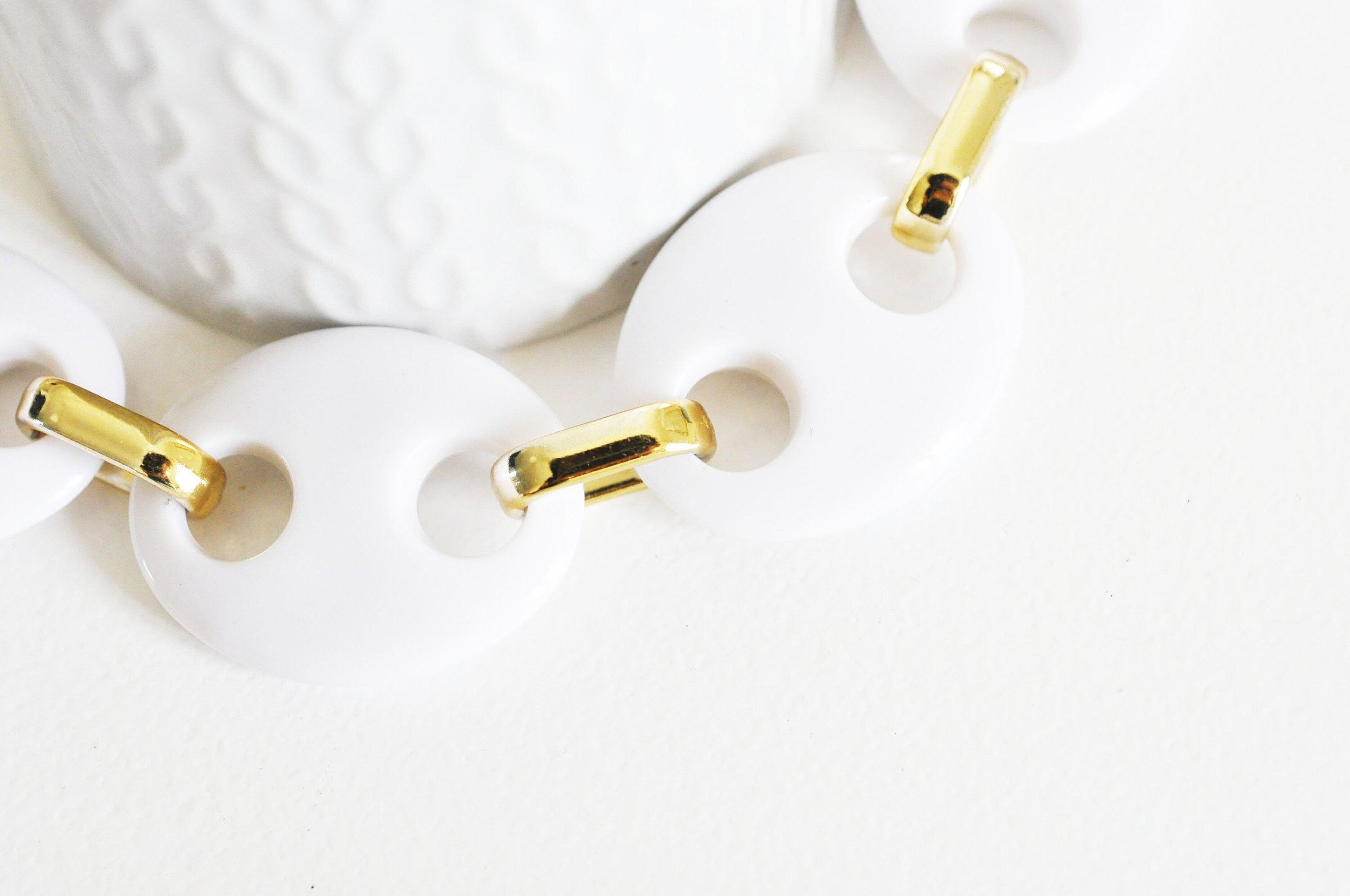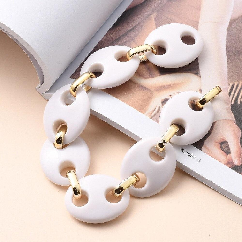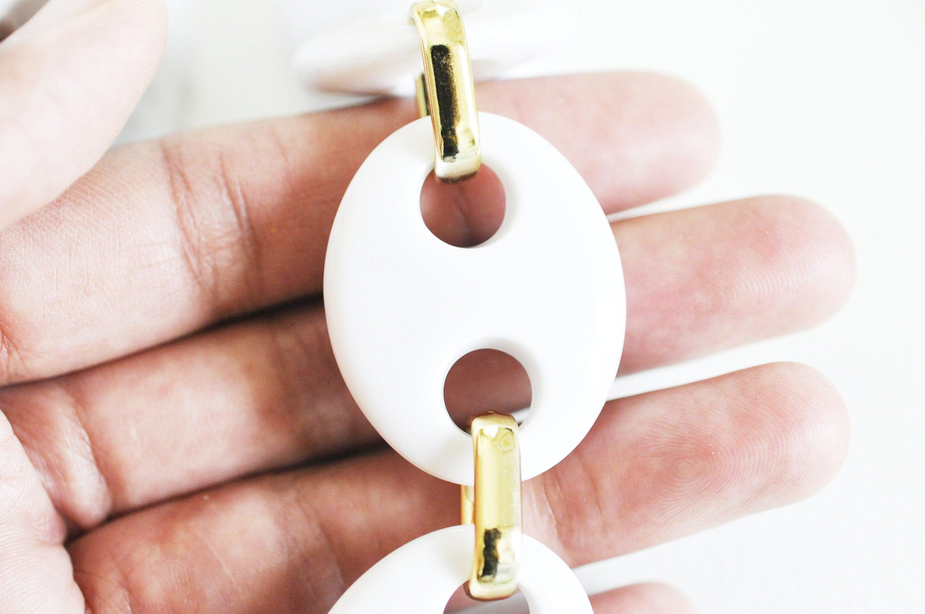 Una gran cadena de plástico acrílico blanco y un eslabón CCB dorado para hacer joyas modernas y originales o para tus bolsos. Aquí hay algunas ideas creativas para usar la gruesa cadena acrílica de plástico multicolor pastel de 20,5x30 mm...