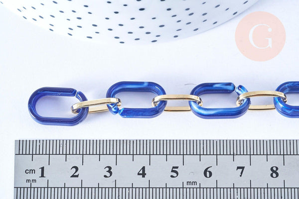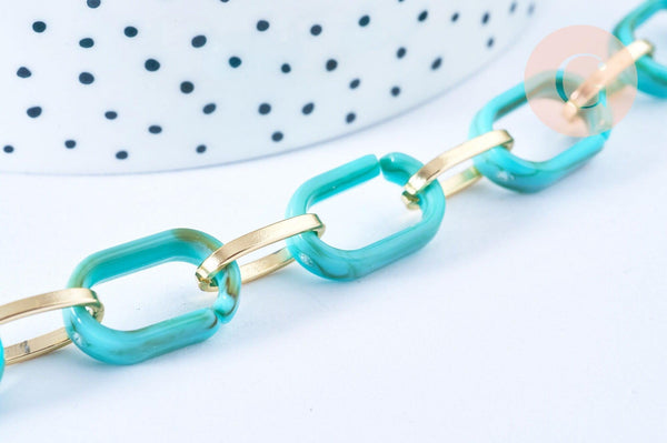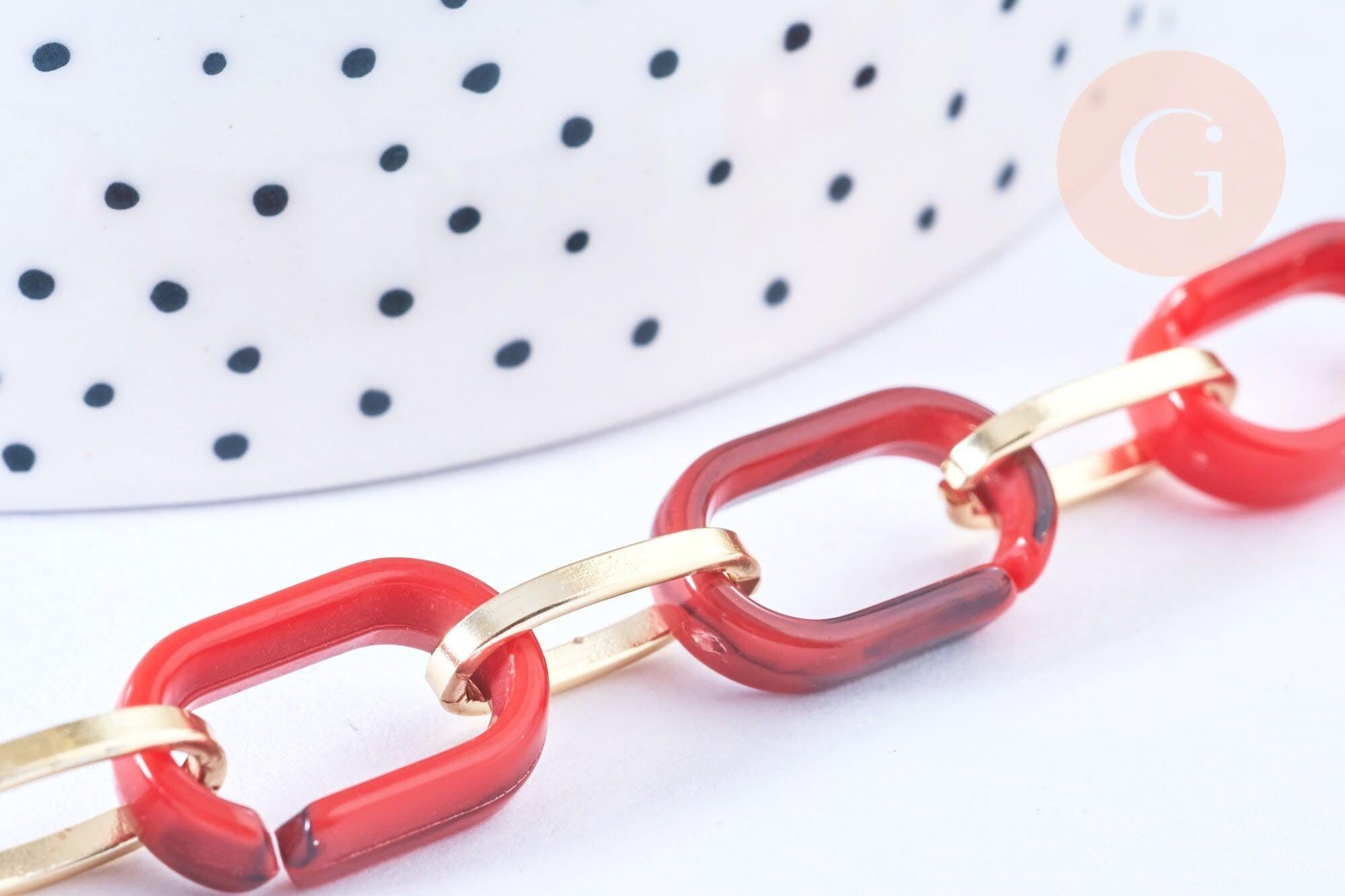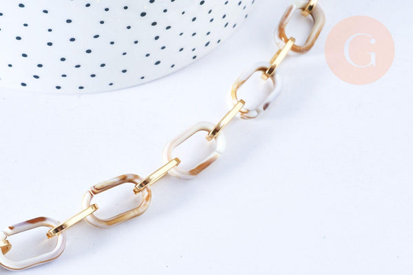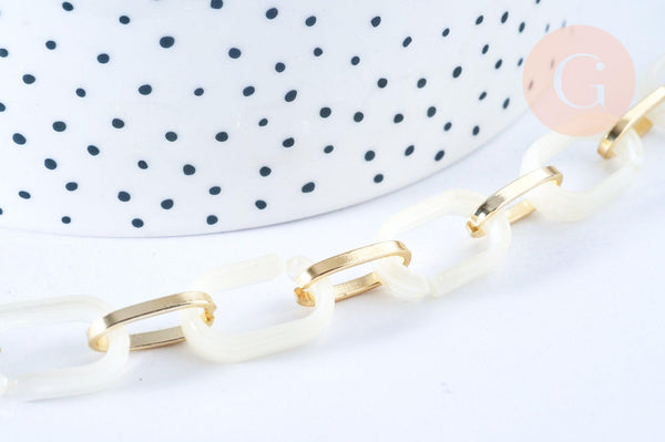 Añade un toque moderno y atrevido a tus creaciones con esta gran cadena redonda de acrílico con efecto escamas , unida por eslabones de aluminio dorado texturizado .