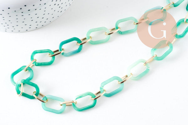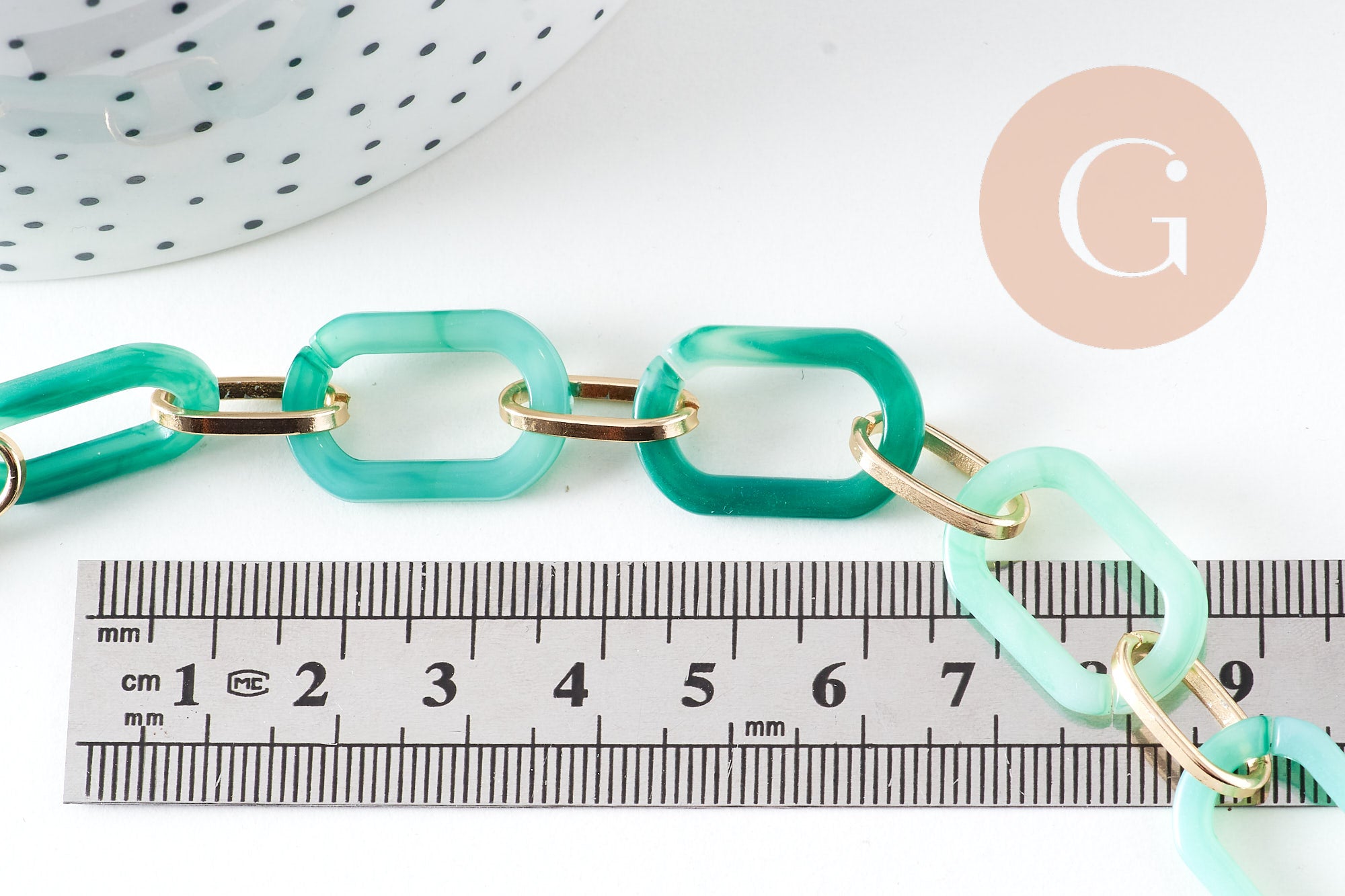 Grosse Chaine ronde écaille acrylique vert et aluminium doré texturé,perle acétate, chaine plastique,18.5mm, x1 mètre (G3365)
