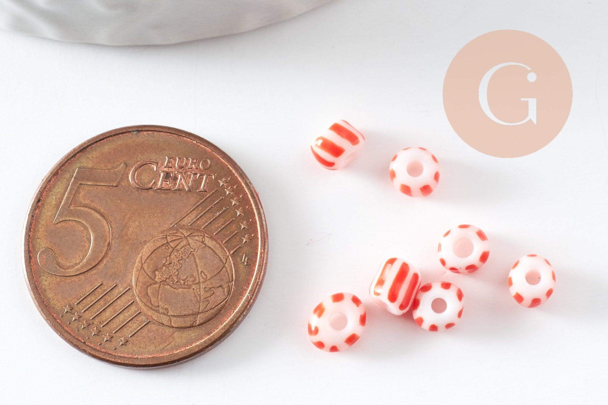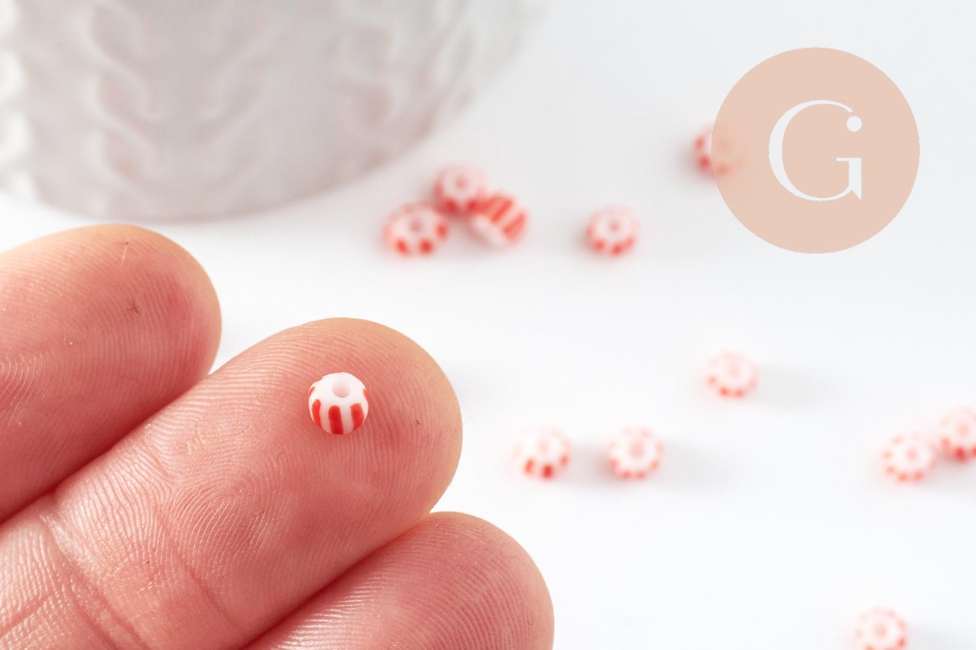 Descubra nuestras grandes cuentas de semillas rayadas en rojo y blanco de 3 a 4,5 mm, cuentas de semillas bicolor ideales para crear joyas. Este juego contiene 10 gramos de cuentas de semillas multicolores rayadas, perfectas para agregar un toque de color y textura a sus diseños.
