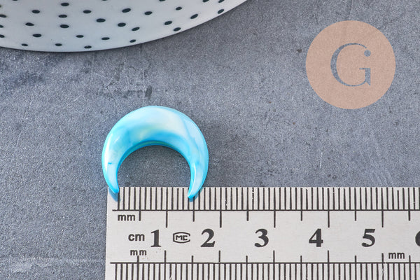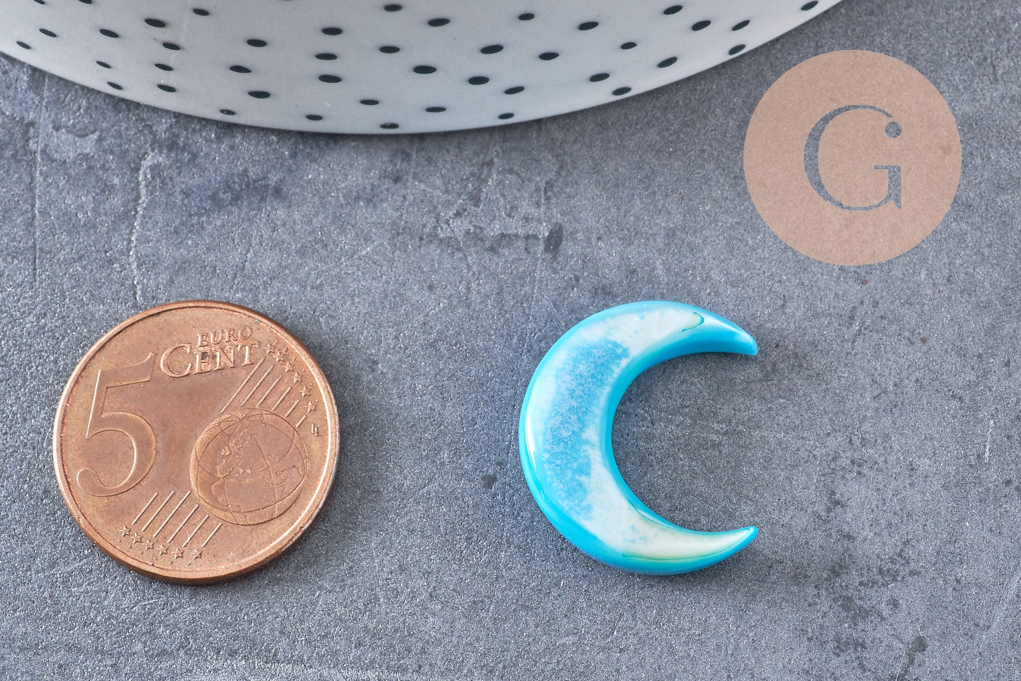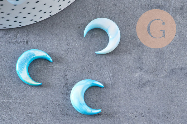 Luna de nácar azul natural, suministro creativo, colgante de luna, concha natural, sin perforar, creación de joyas, colgante de nácar, 18x19 mm