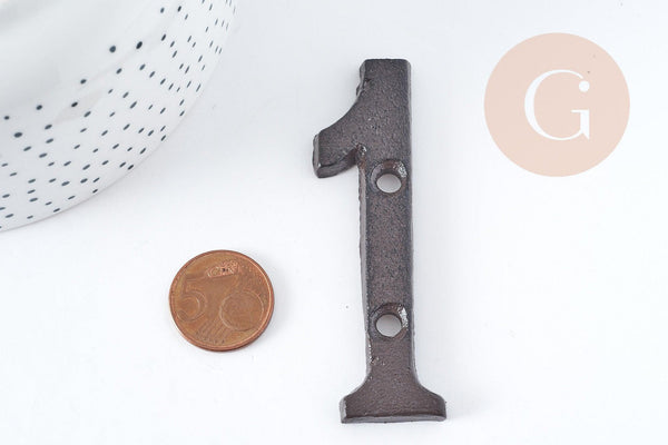 Numéro 1 accroche murale fer argenté foncé 74x19x5mm, accessoire maison, décoration maison, x1 G9104