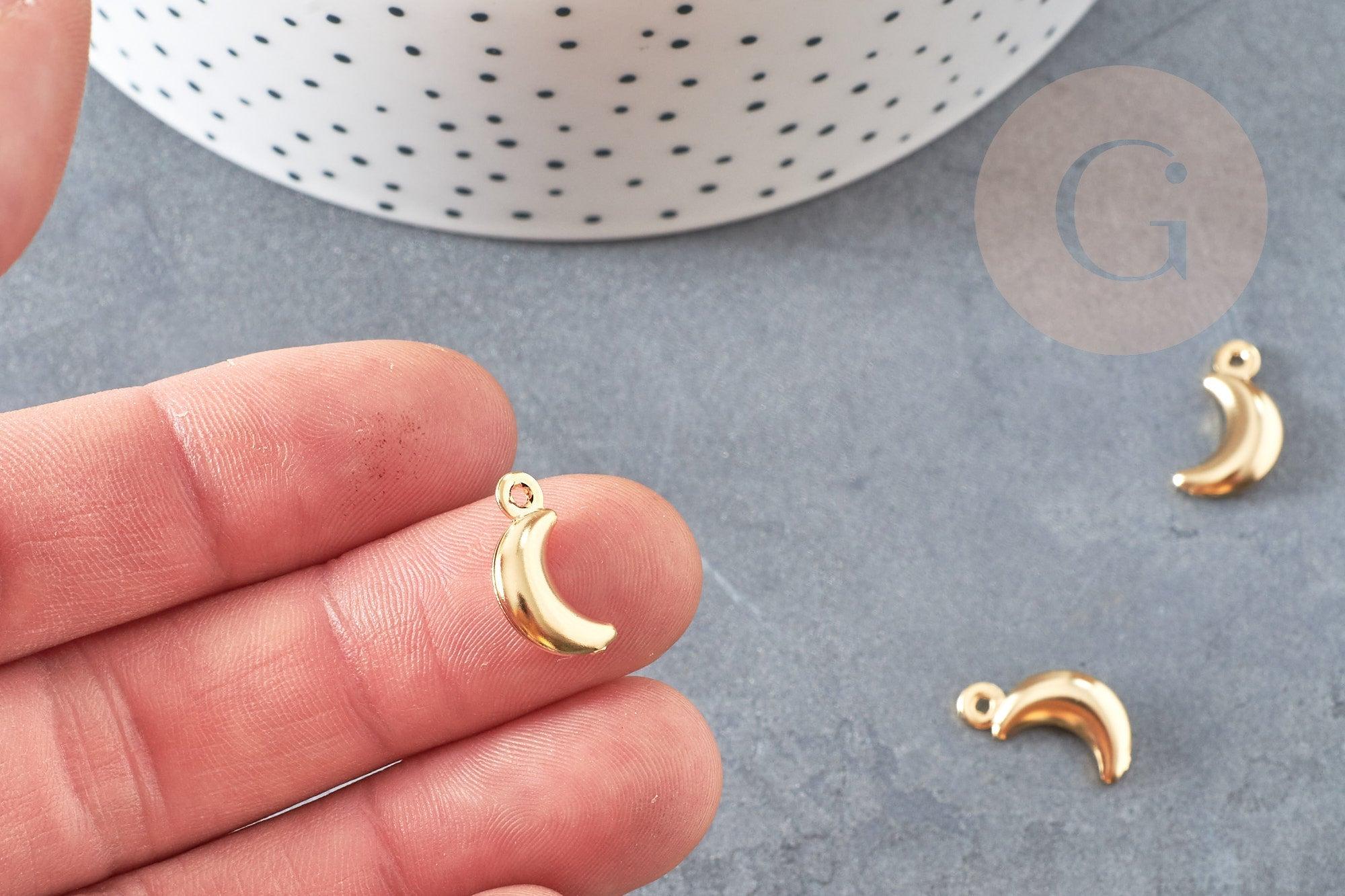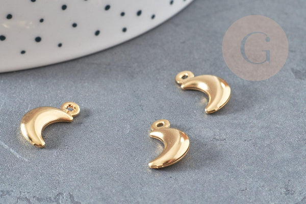 Pendentif acier doré lune 16mm,breloque doré, acier inoxydable doré,pendentif sans nickel,création bijoux, x5 G6156