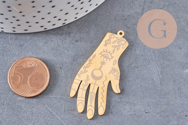 Colgante de acero dorado mano mística 49mm, acero inoxidable dorado sin liberación de níquel, creación de joyería de la suerte, x1 G6243