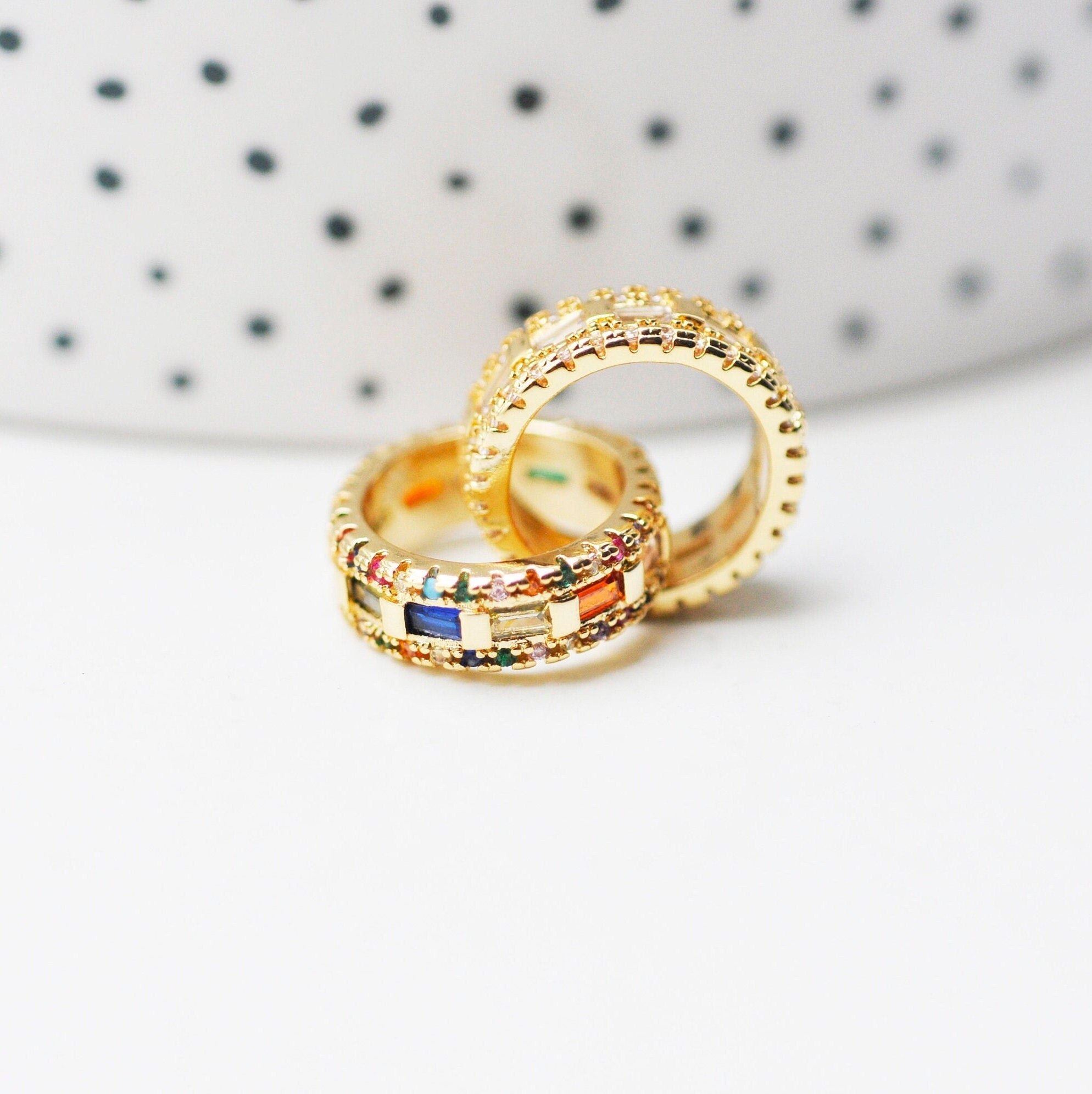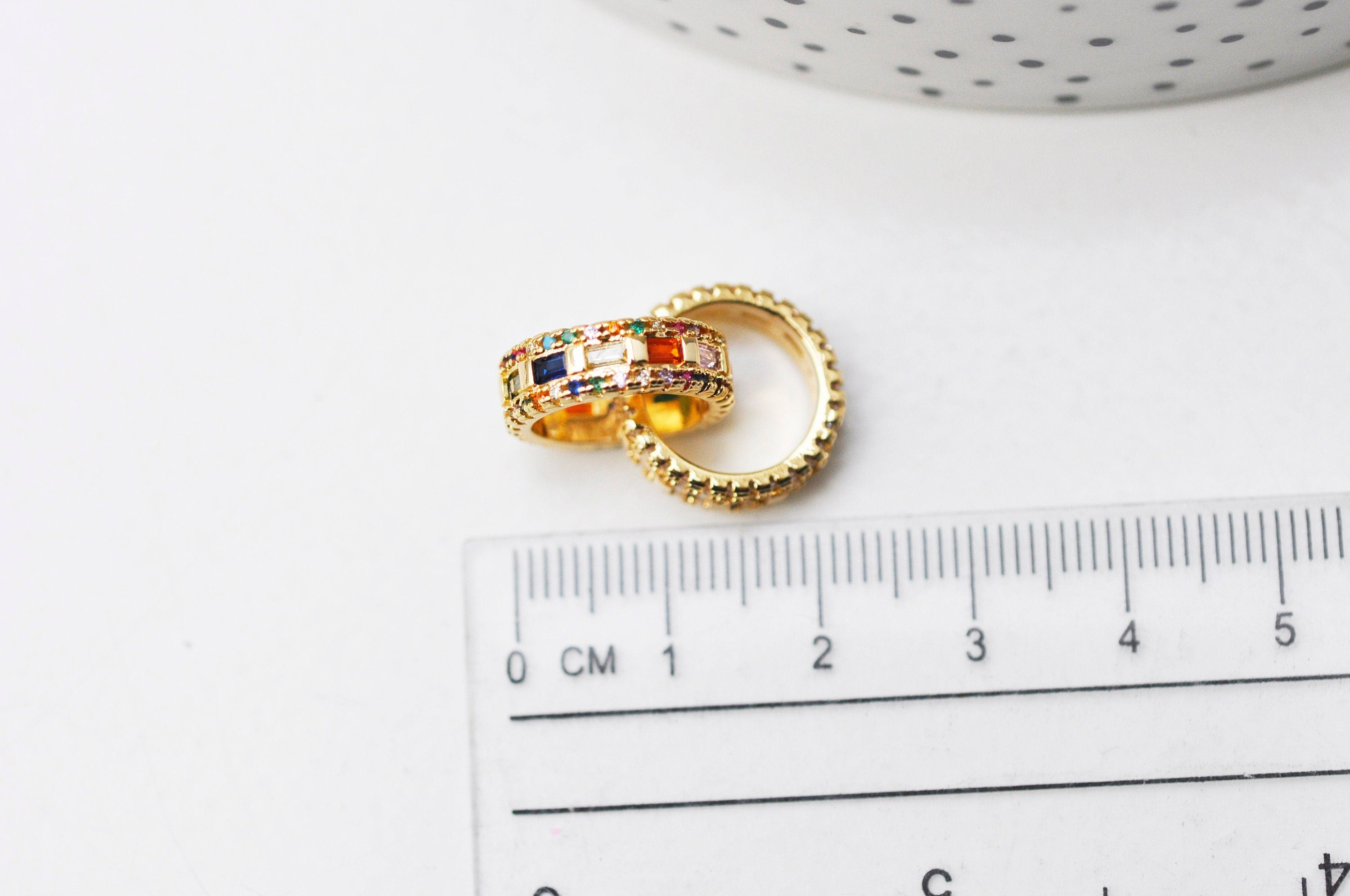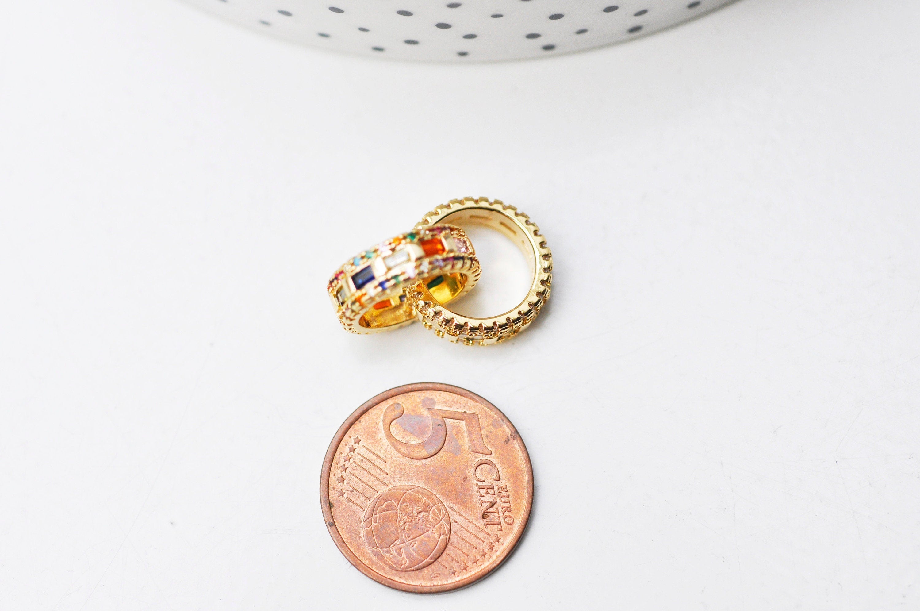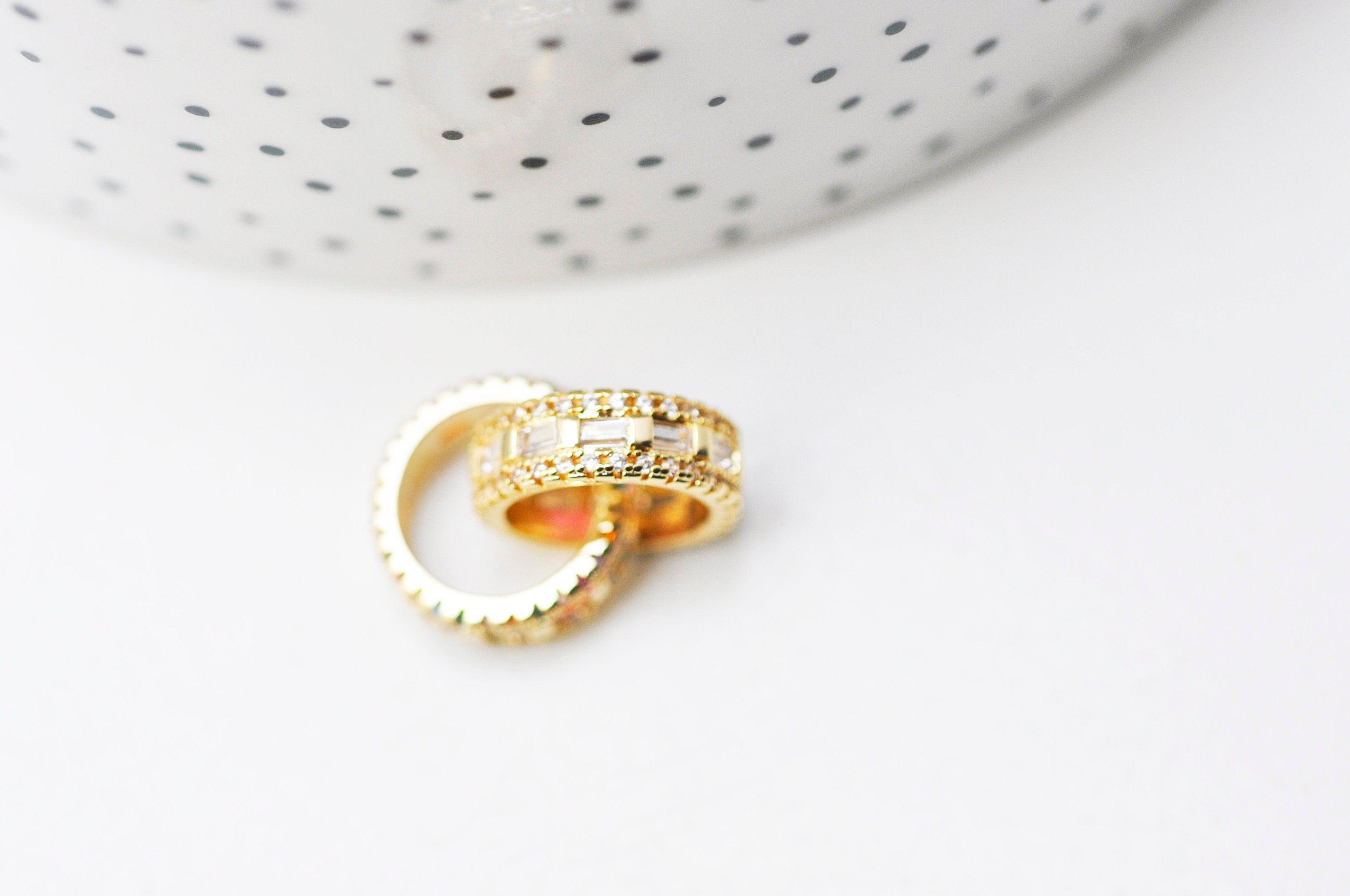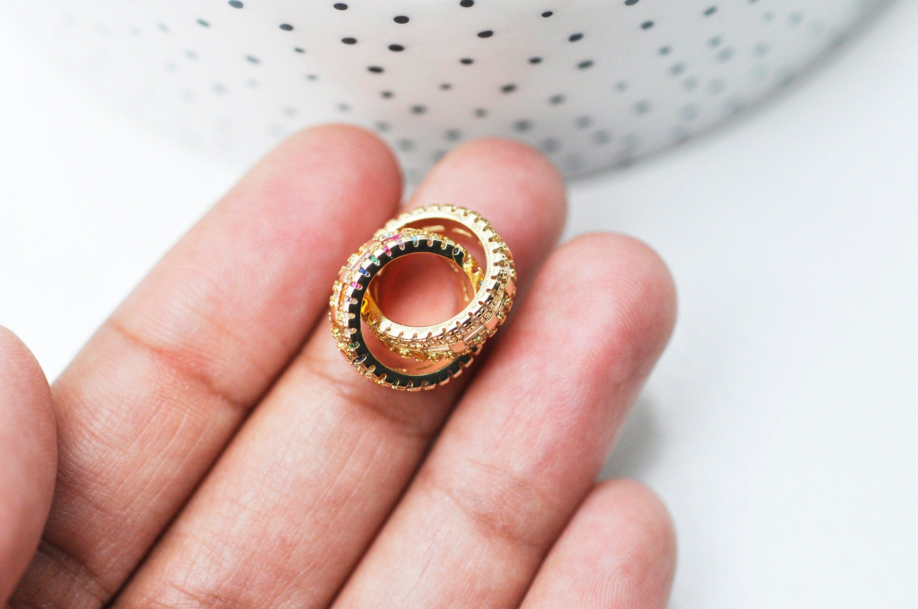 Colgante de anillos entrelazados de latón chapado en oro con cristal de circonita de color, símbolo de amor y amistad, 15 mm, se vende por unidad Un bonito colgante que representa dos anillos entrelazados, decorado con pequeños cristales de zircón...