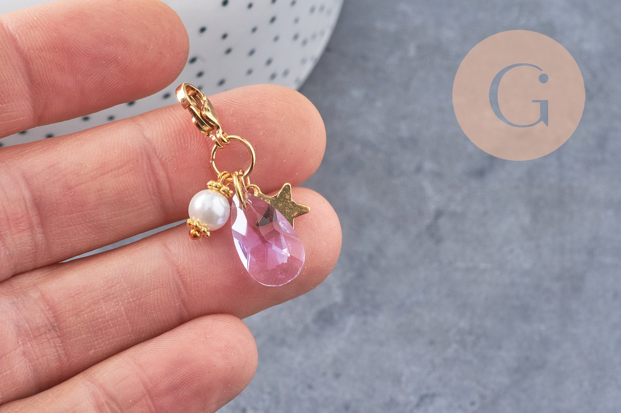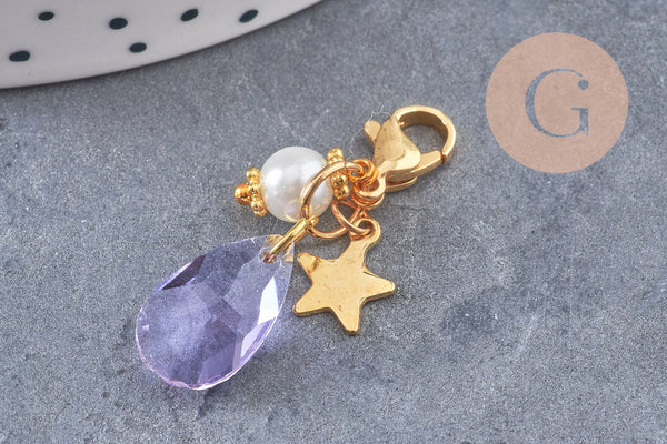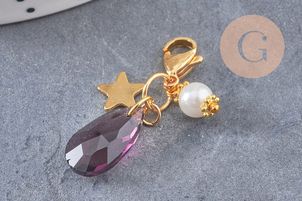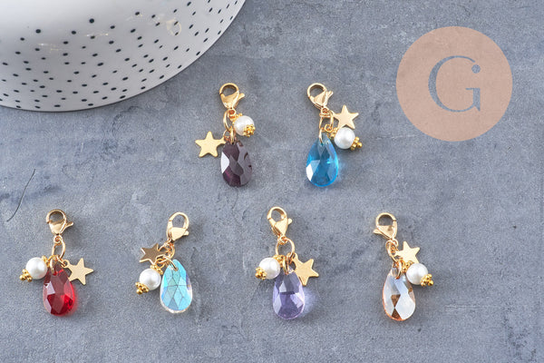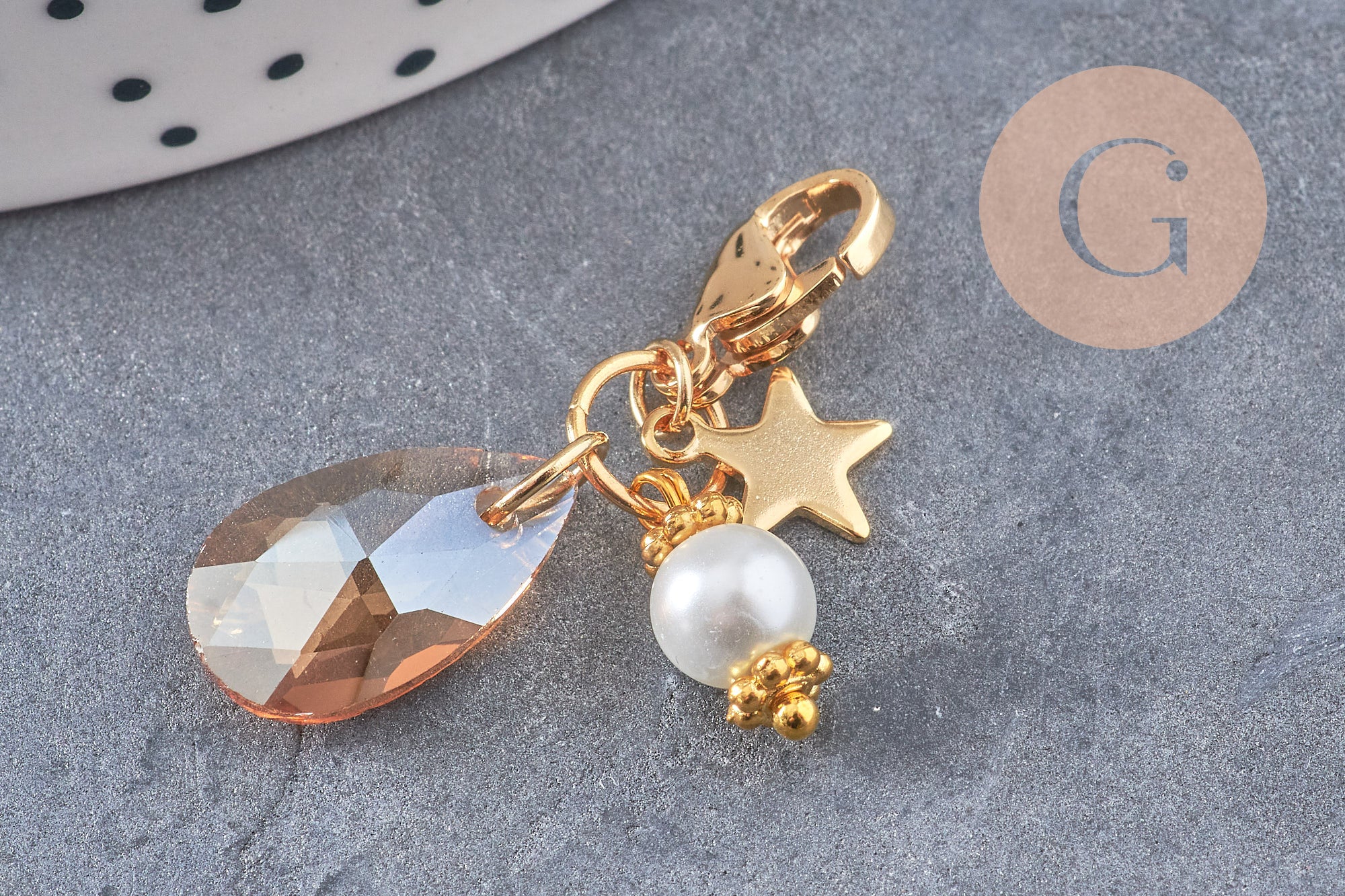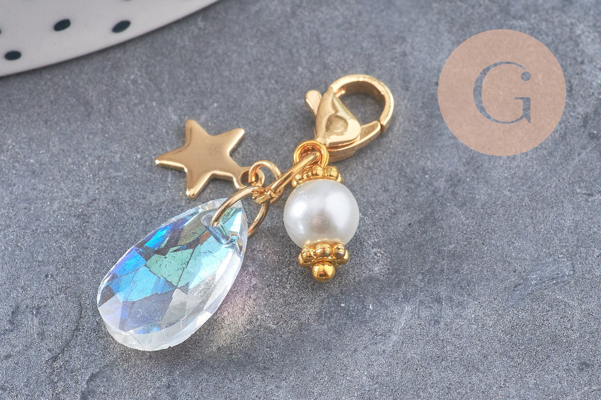 Colgante con cierre de cristal facetado de acero inoxidable chapado en oro, 34 mm, colgante de cuentas de vidrio, para hacer llaveros, 1 unidad (G7102)