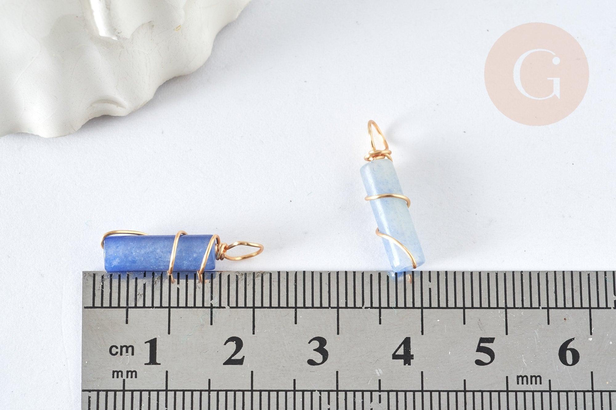 Déjate seducir por este colgante liso de aventurina azul natural con su soporte de cobre dorado .