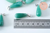 Colgante de gota de aventurina natural acero platino laminado 30 mm, colgante de piedra de acero inoxidable de piedra natural, x1, G6171