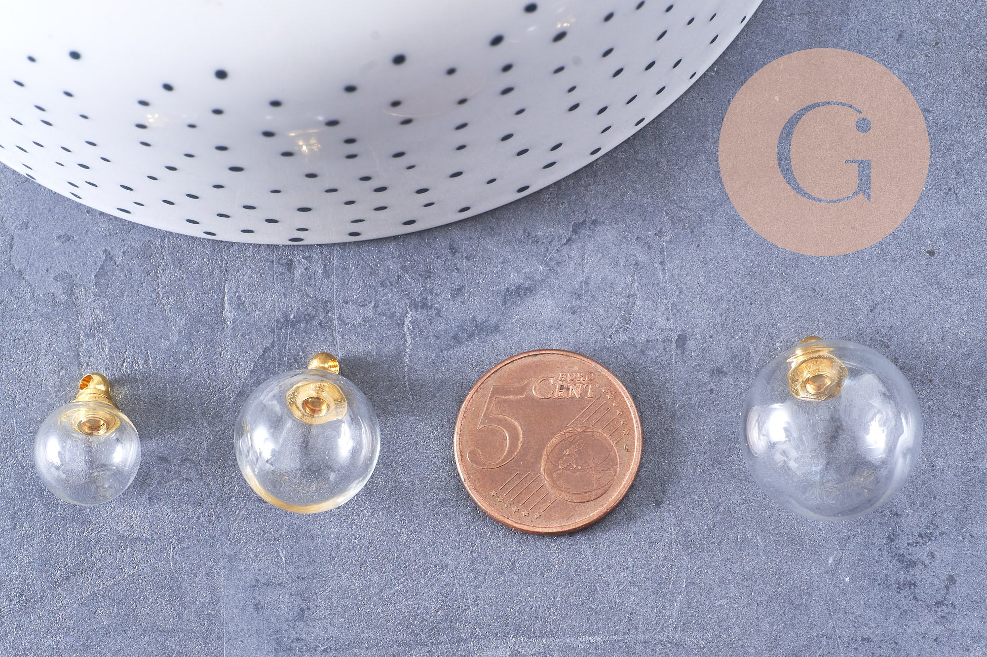 Dale un toque único y creativo a tus joyas con este colgante en forma de pequeño frasco de vidrio transparente con burbujas, cerrado con una tapa de metal dorado. Este colgante abatible admite resina, purpurina, cuentas, palabras o cualquier otra decoración en miniatura para crear creaciones únicas y personalizadas.