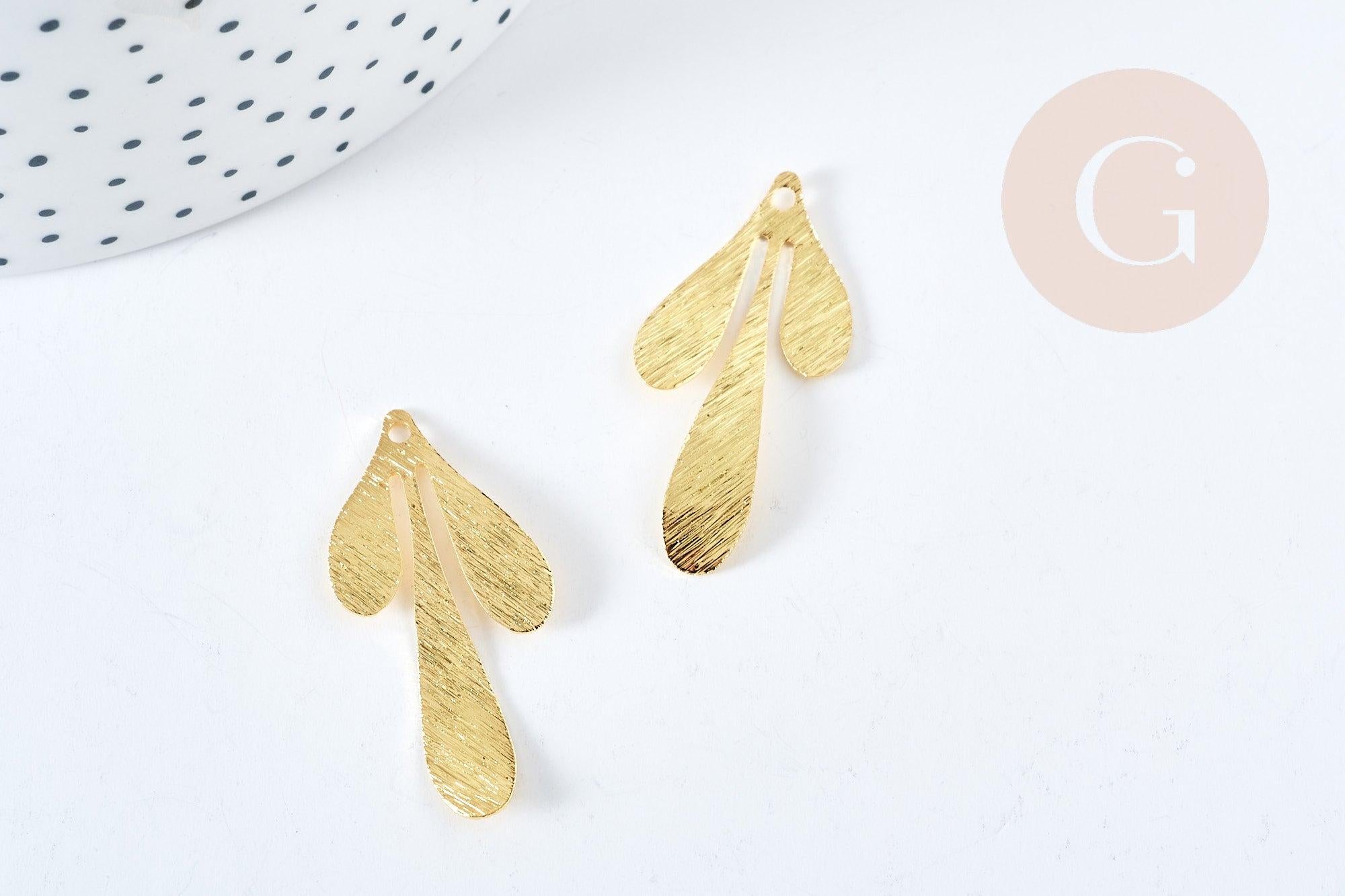 Estos colgantes de latón dorado cepillado en forma de rama con hojas son elementos ideales para crear joyas inspiradas en la naturaleza . Con sus delicados motivos vegetales, estos colgantes añaden un toque de elegancia y refinamiento a cualquier creación.