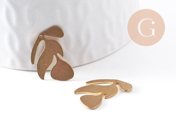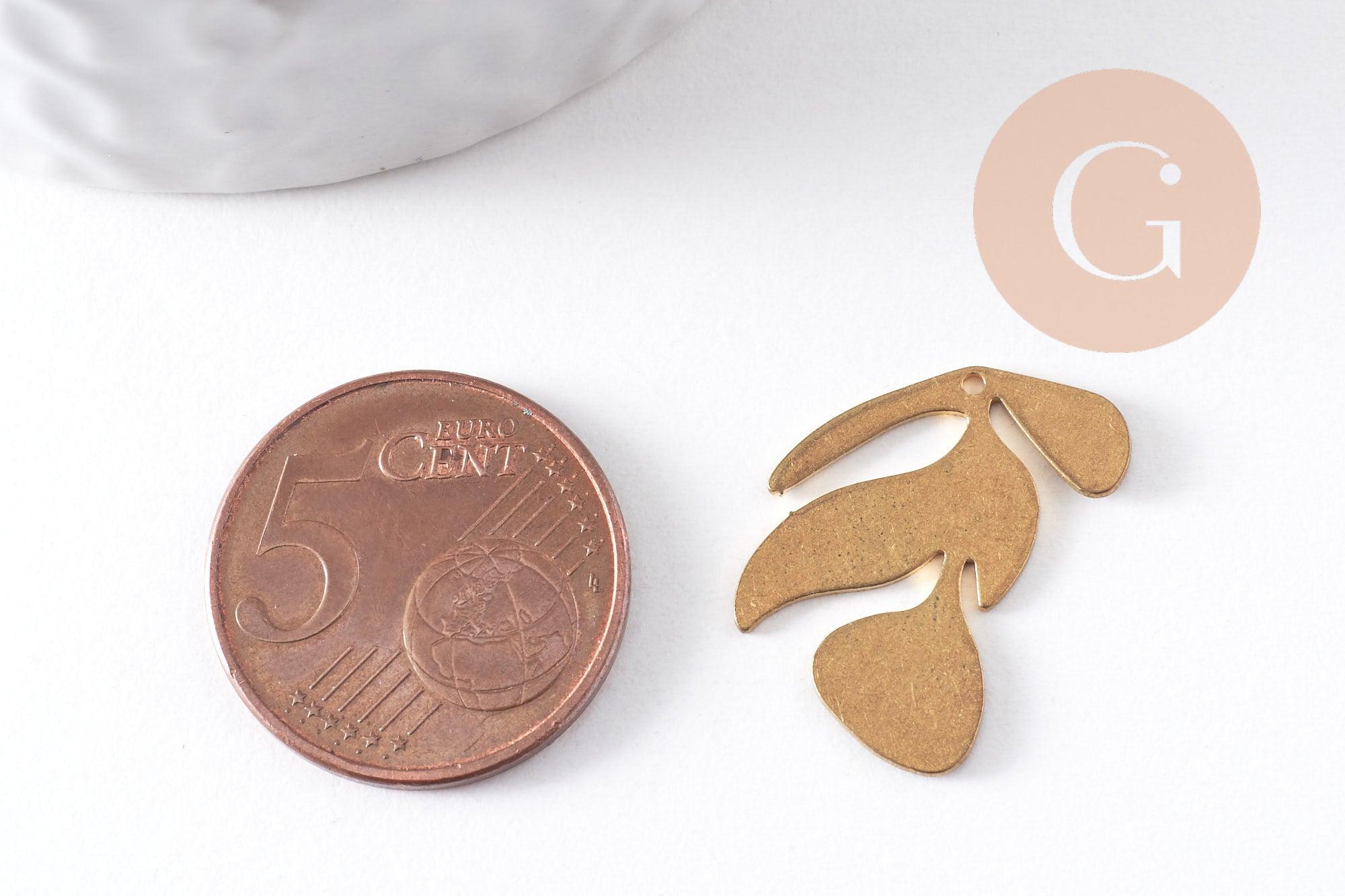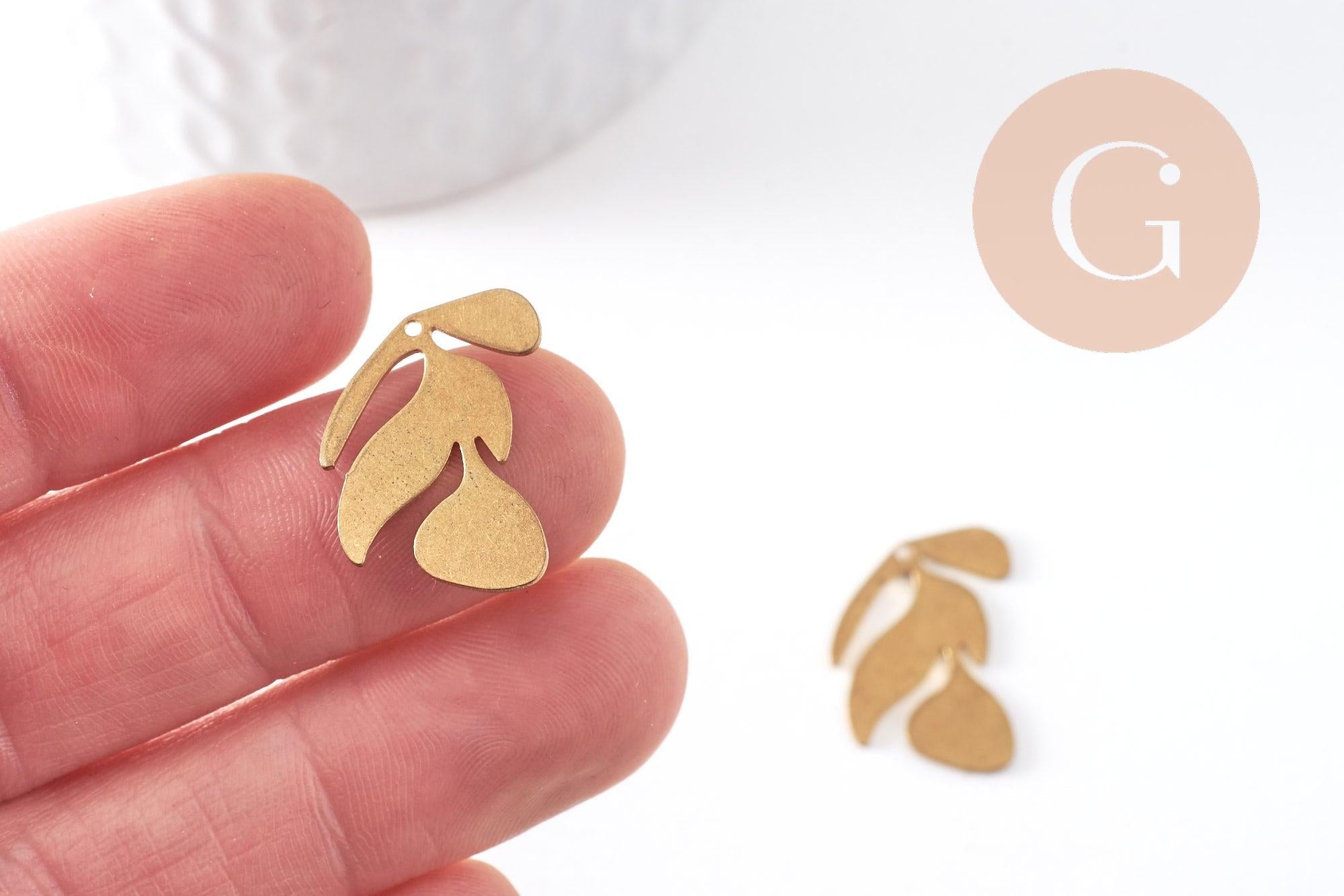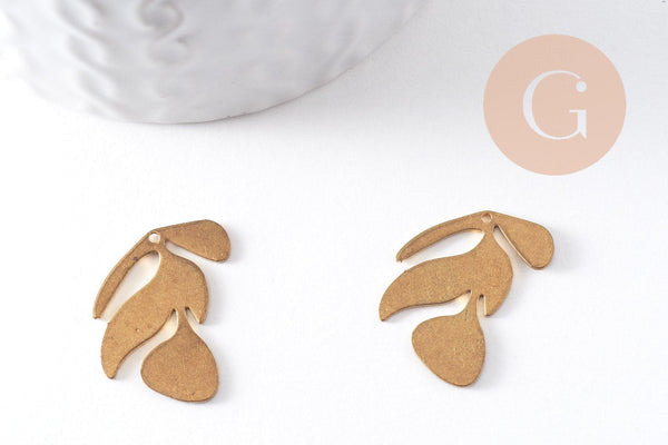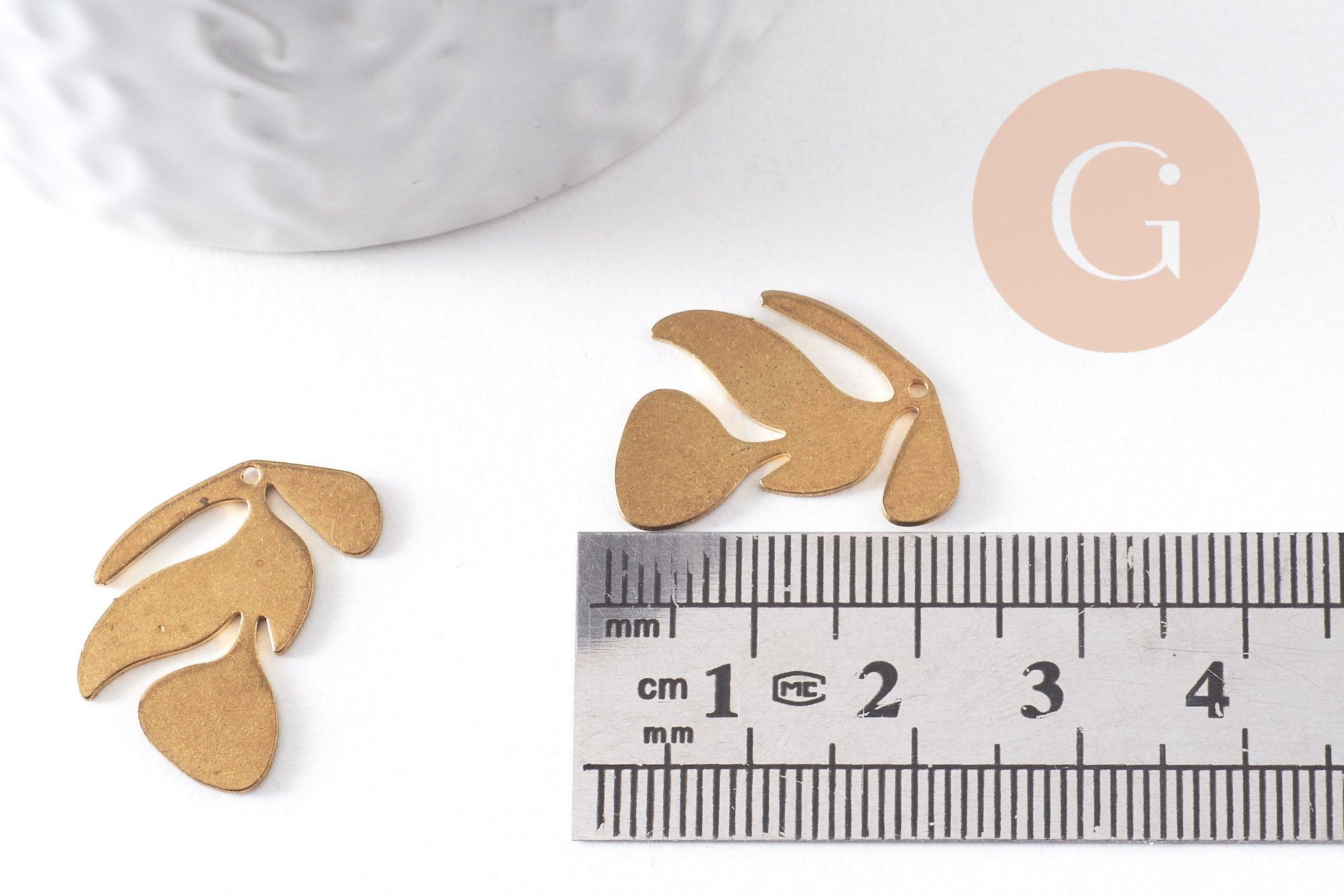 Colgante de rama de hoja de latón, dije de latón crudo, joyería de hoja de laurel, colgante de latón crudo 21,5 x 15 mm, x2 (G3238)
