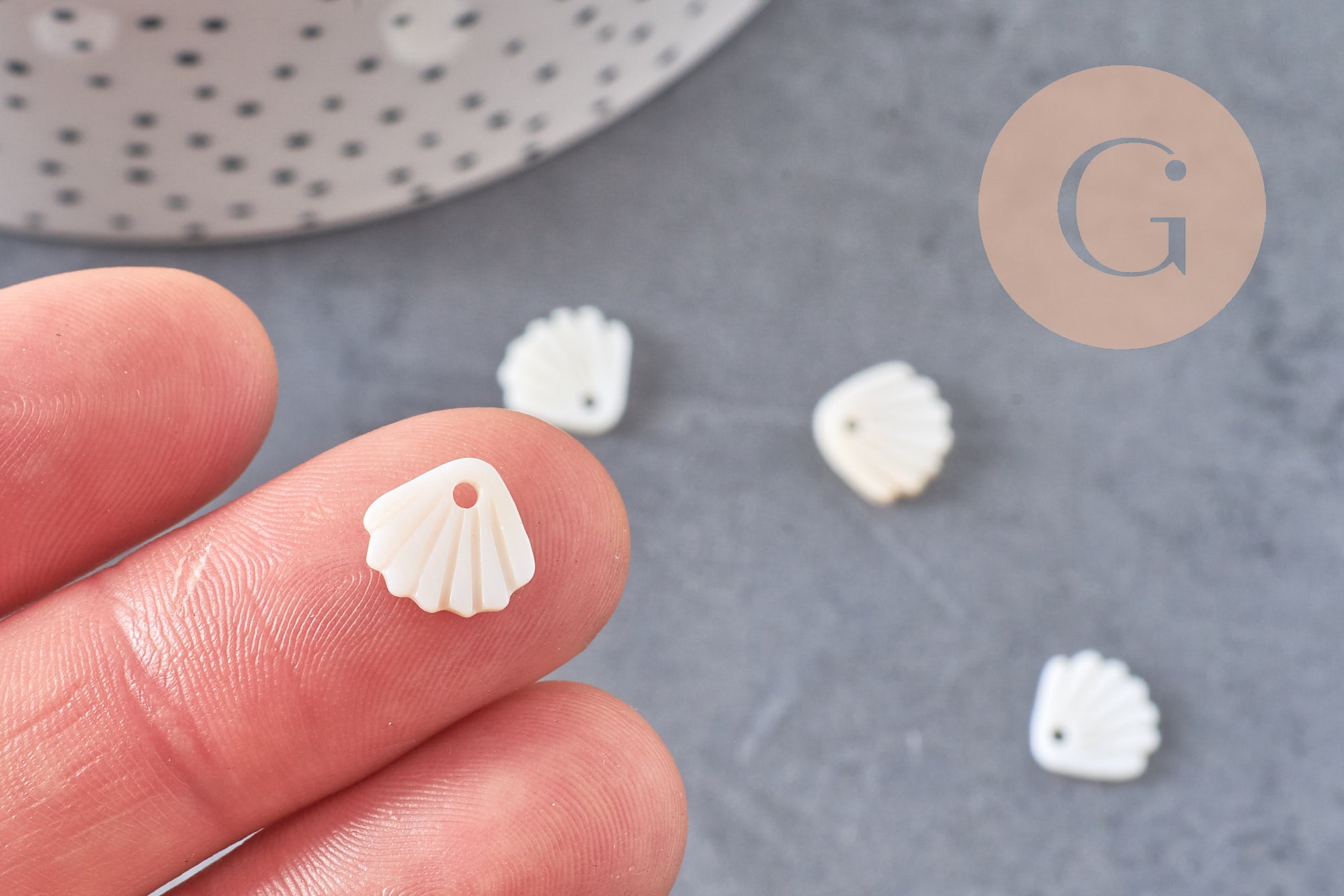 Pendentif charm coquillage nacre blanche naturelle ,pendentif coquillage nacre,coquillage blanc,création bijou, 10mm, x5 G4623