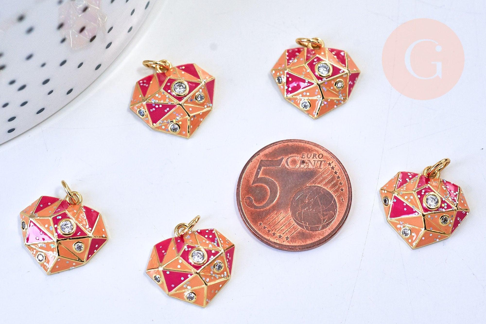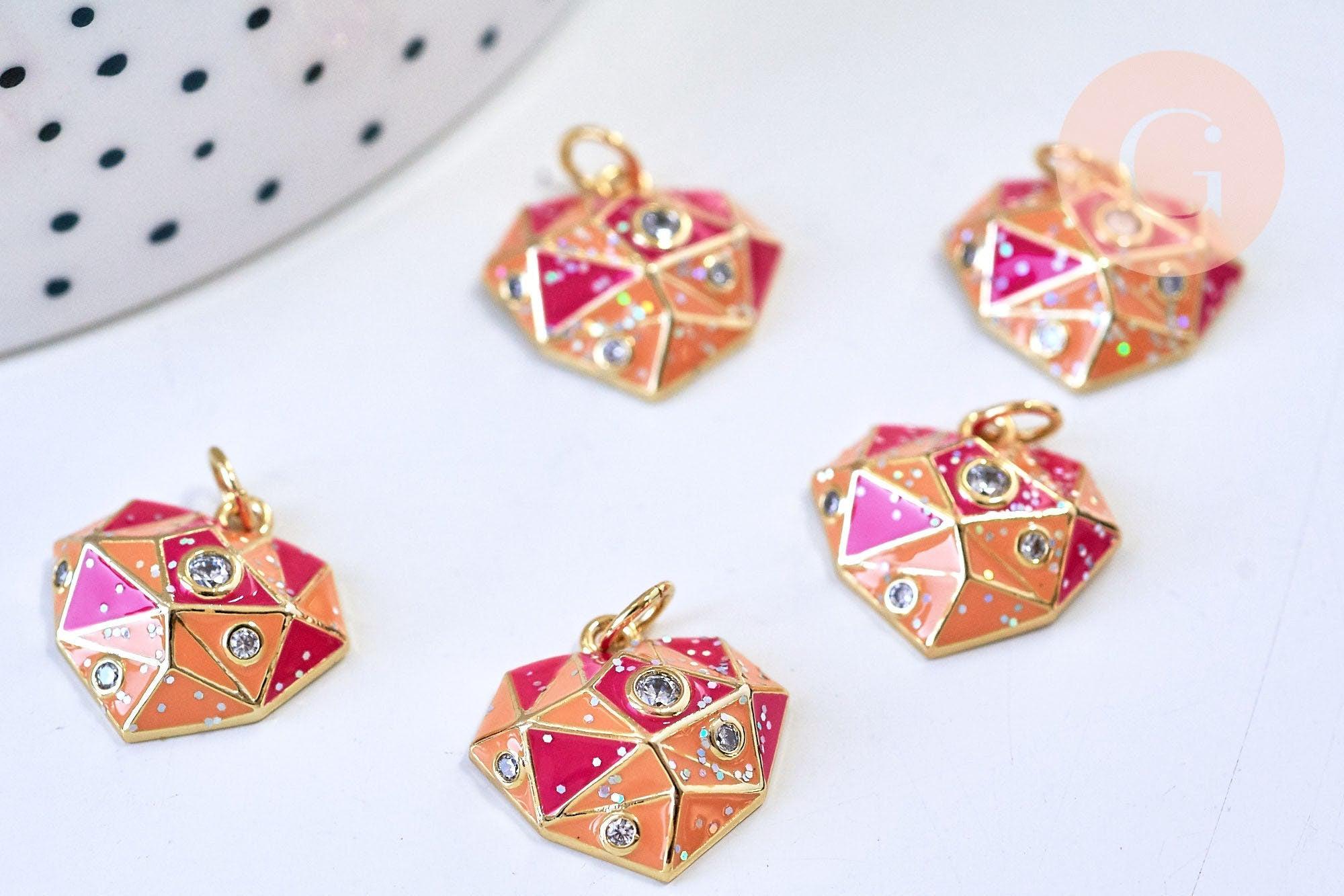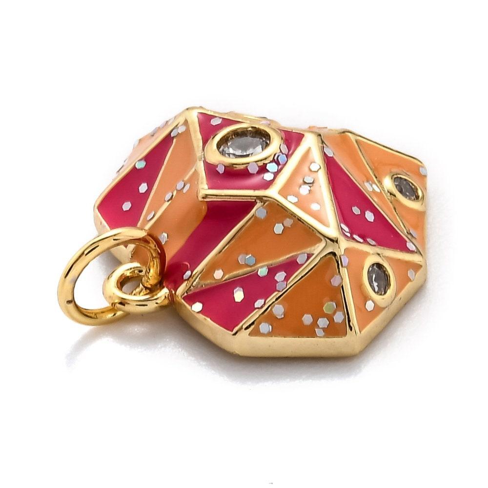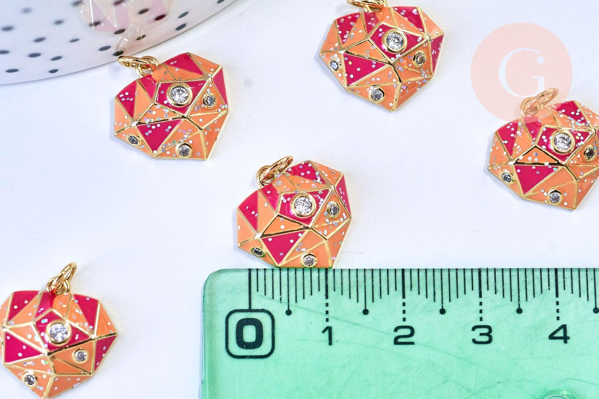 Colgante de corazón de latón dorado con circonita esmaltada de color rojo naranja, colgante de corazón de latón facetado, sin níquel, 16 mm, x1 G5642
