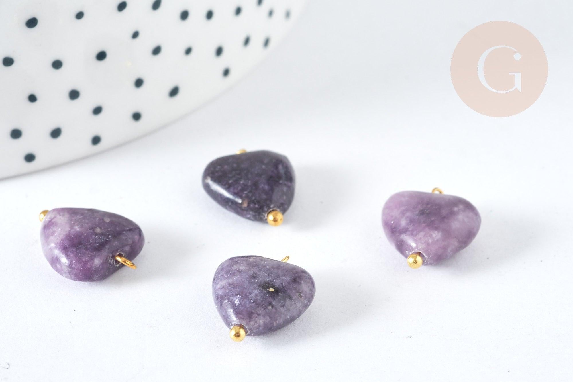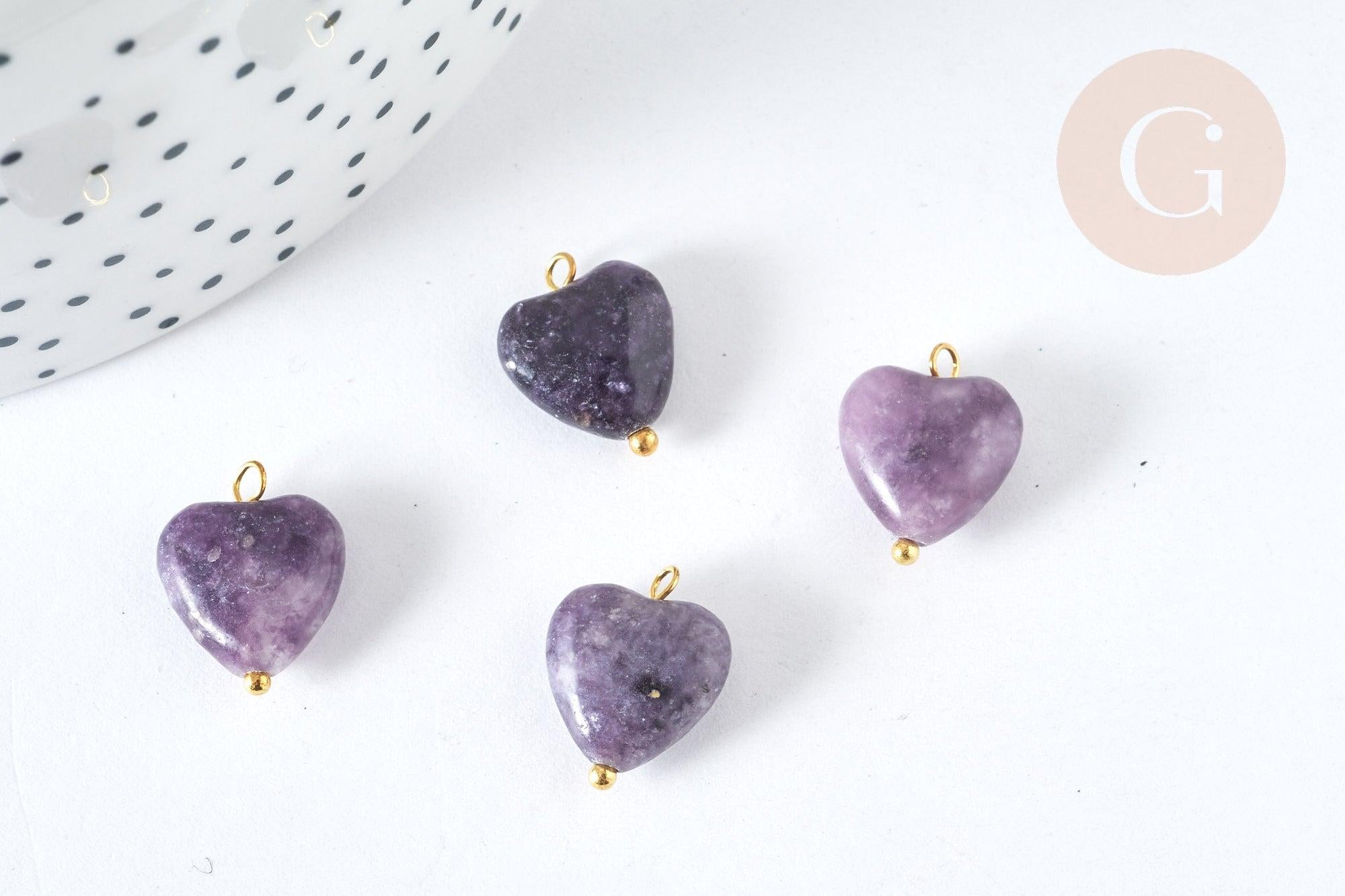 Colgante corazón de lepidolita piedra natural 15~15,5 mm, colgante de piedra natural para la creación de joyas, x1 G7592