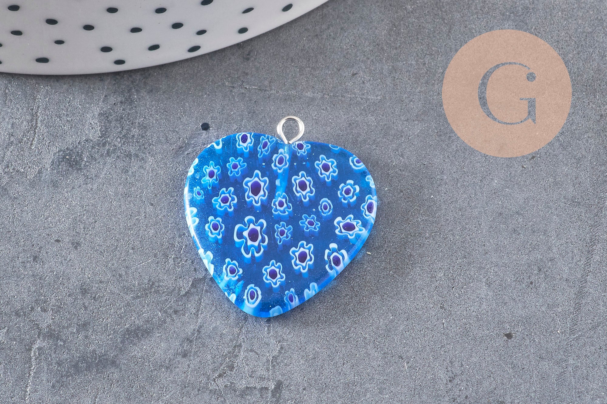 Añade un toque de arte en vidrio a tus creaciones con este impresionante colgante de corazón de cristal millefiori, inspirado en la tradición veneciana . Cada pieza está hecha a mano y presenta un mosaico de coloridos motivos florales, creando una joya única y encantadora.
