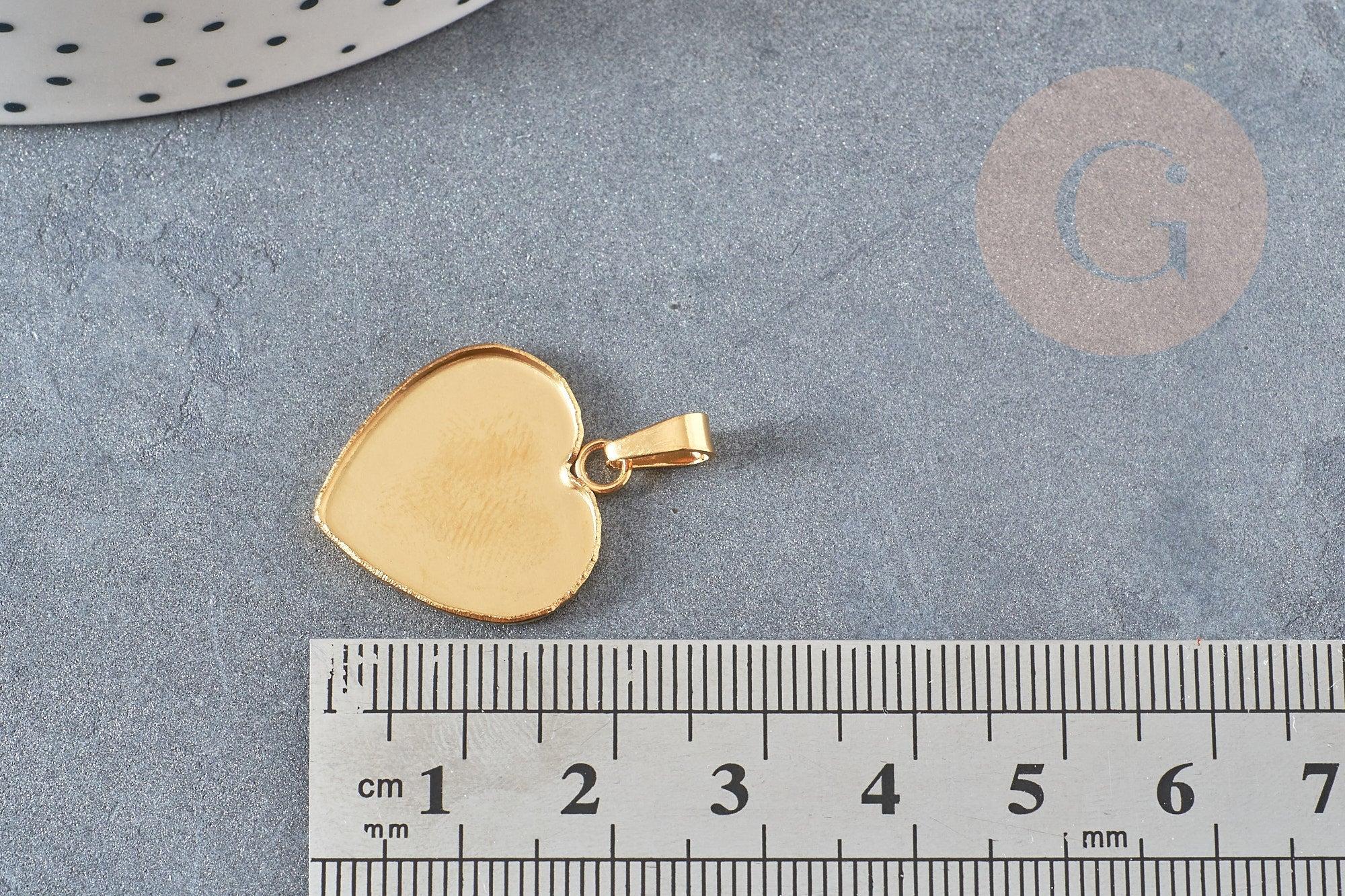 Colgante de corazón con engaste de cabujón, acero inoxidable chapado en oro, 21,5 mm x1 (G4834)