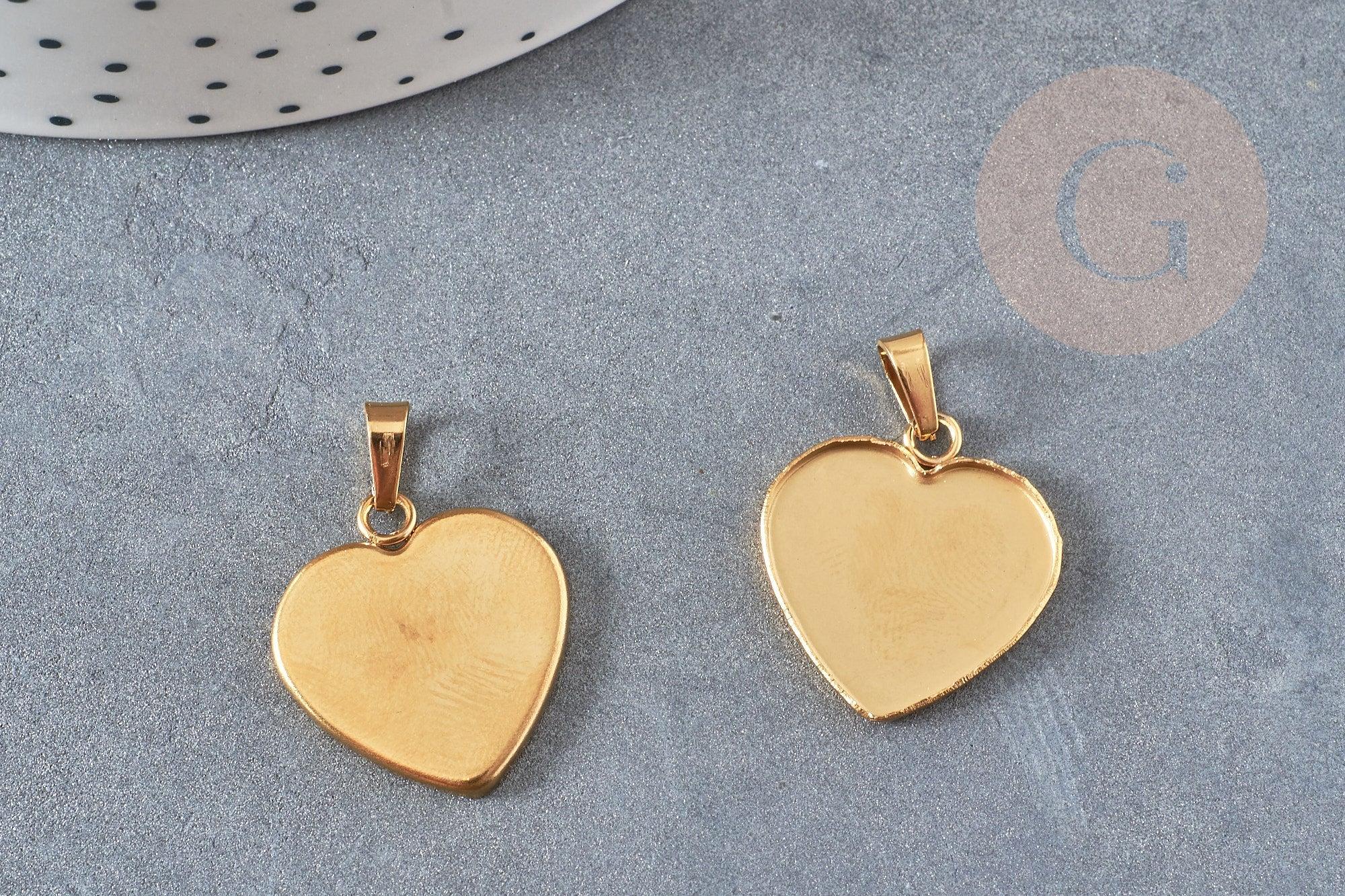 Colgante de corazón con soporte de cabujón de acero inoxidable bañado en oro, creaciones de joyería de acero bañado en oro, 21,5 mm cada uno