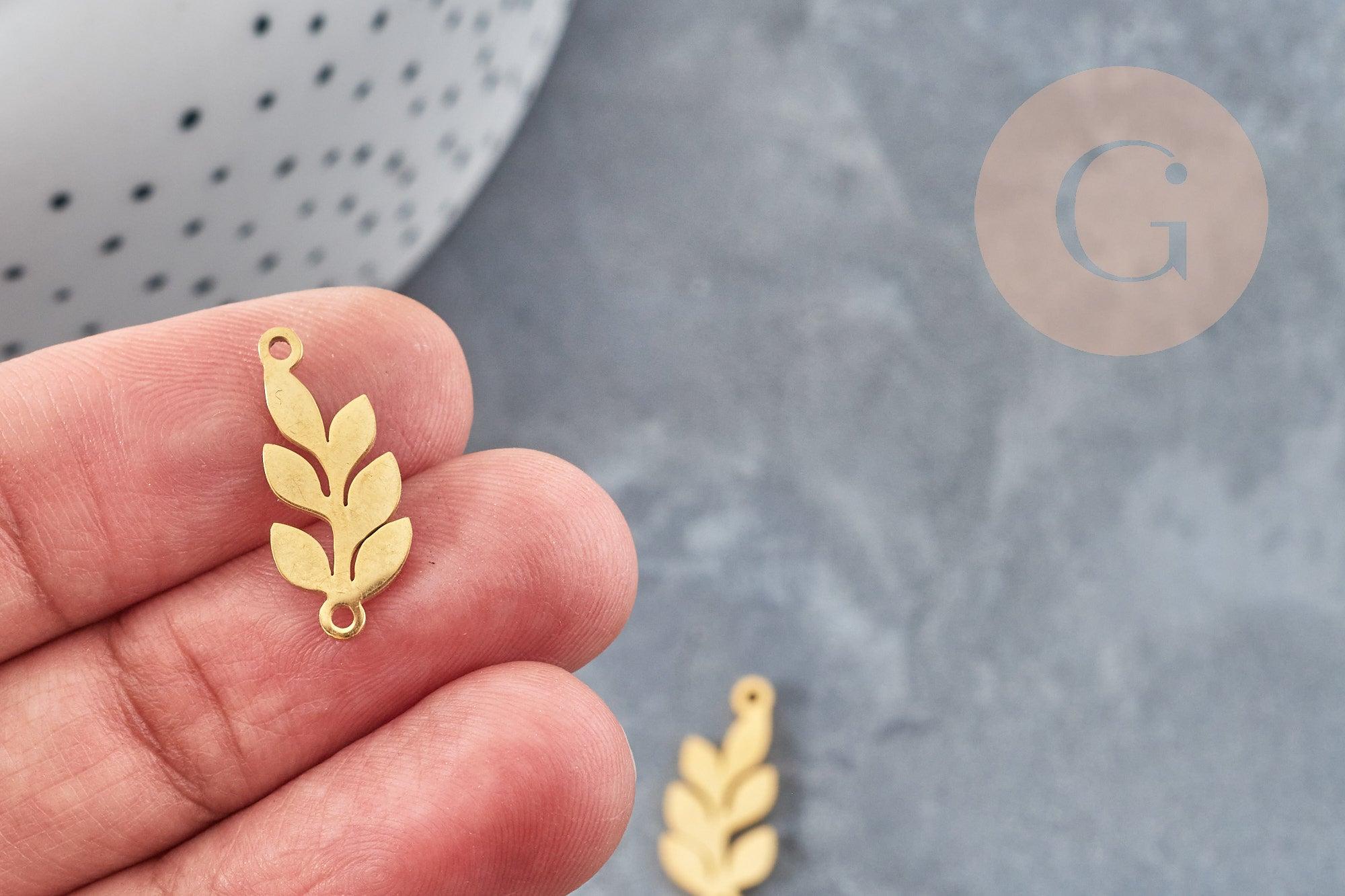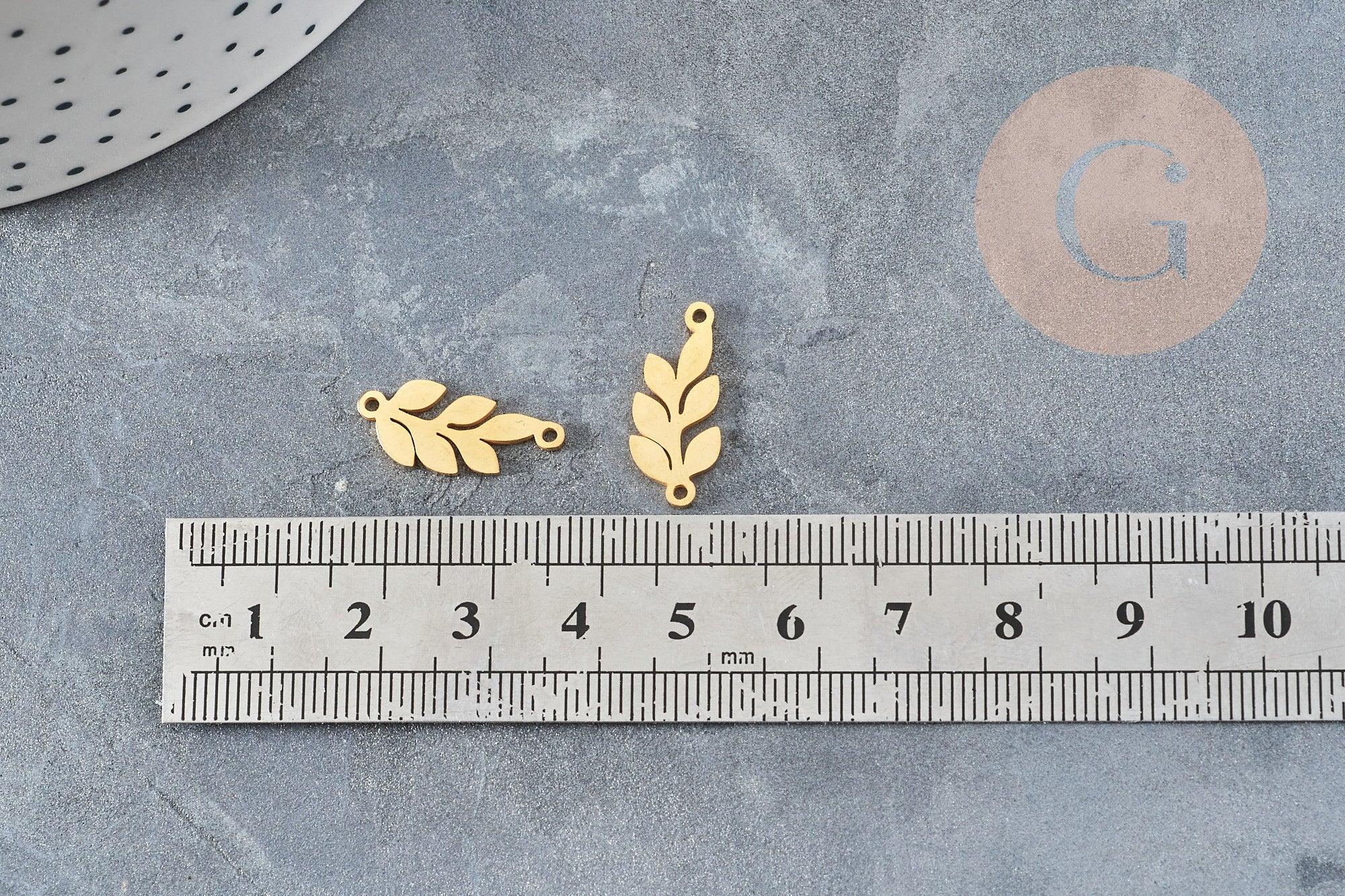Pendentif feuille laurier connecteur acier 201 inoxydable doré 19.5mm,bijou en acier hypoallergénique x1 G5596