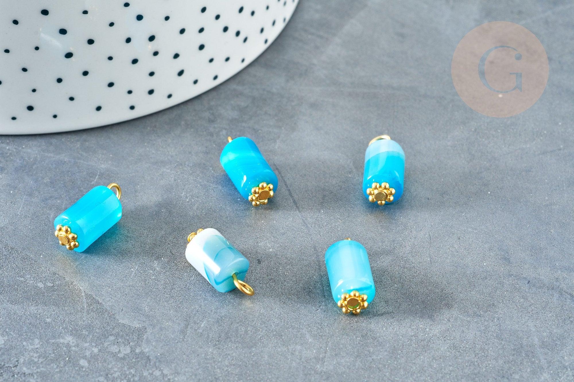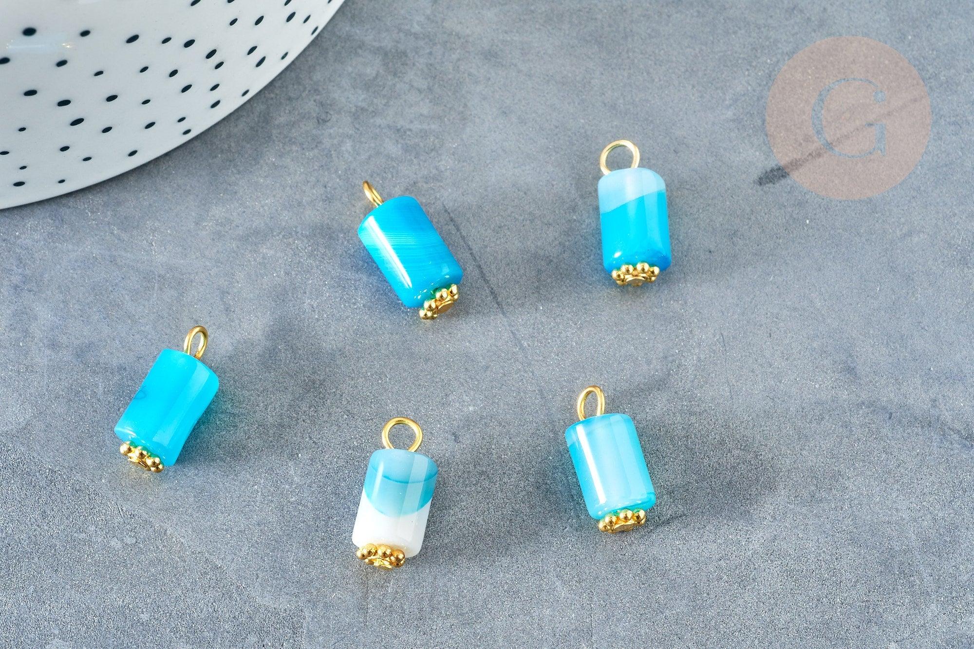 Colgante con conector de ágata azul natural, columna de hierro dorado, 17,5 mm, piedra natural, x1 (G8235)