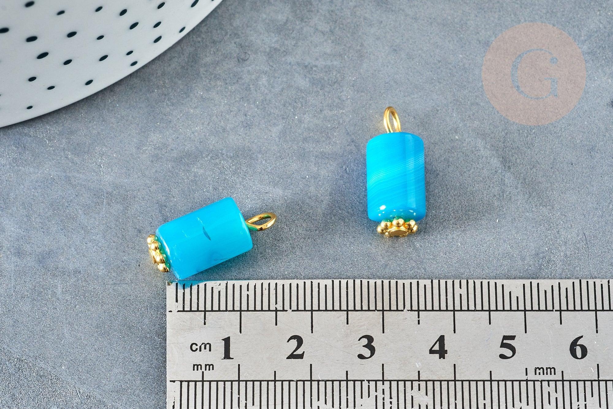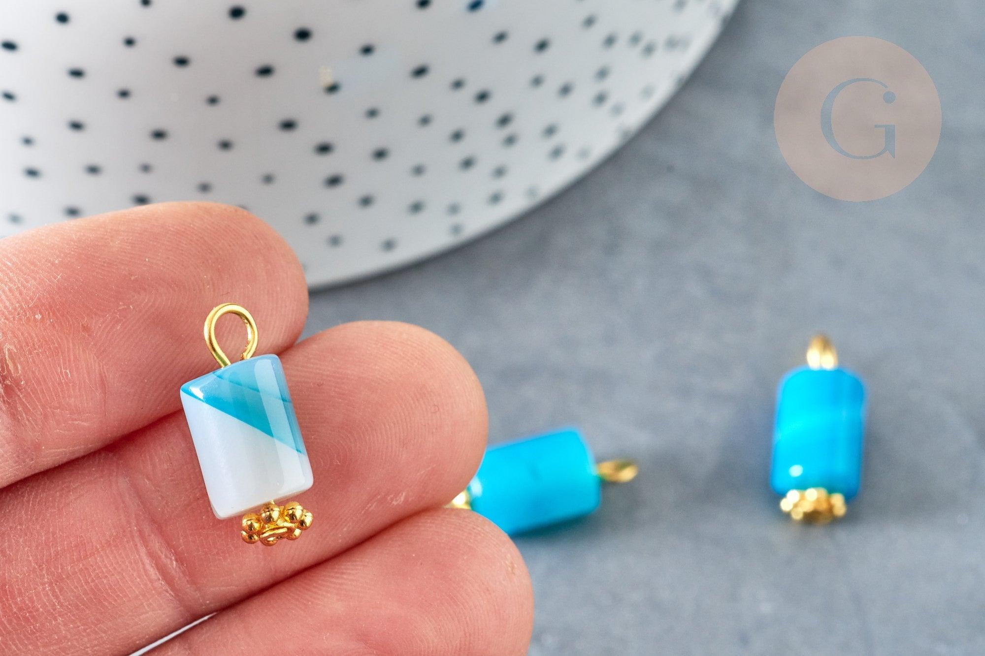 Pendentif Connecteur Agate naturelle bleue colonne fer doré 17.5mm, pierre naturelle, x1 (G8235)