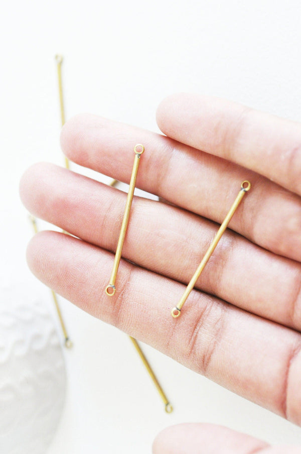 Conector colgante de barra redonda de latón crudo sin níquel de 40 mm, con un anillo en cada extremo para hacer aretes, collares, collares largos y pulseras.