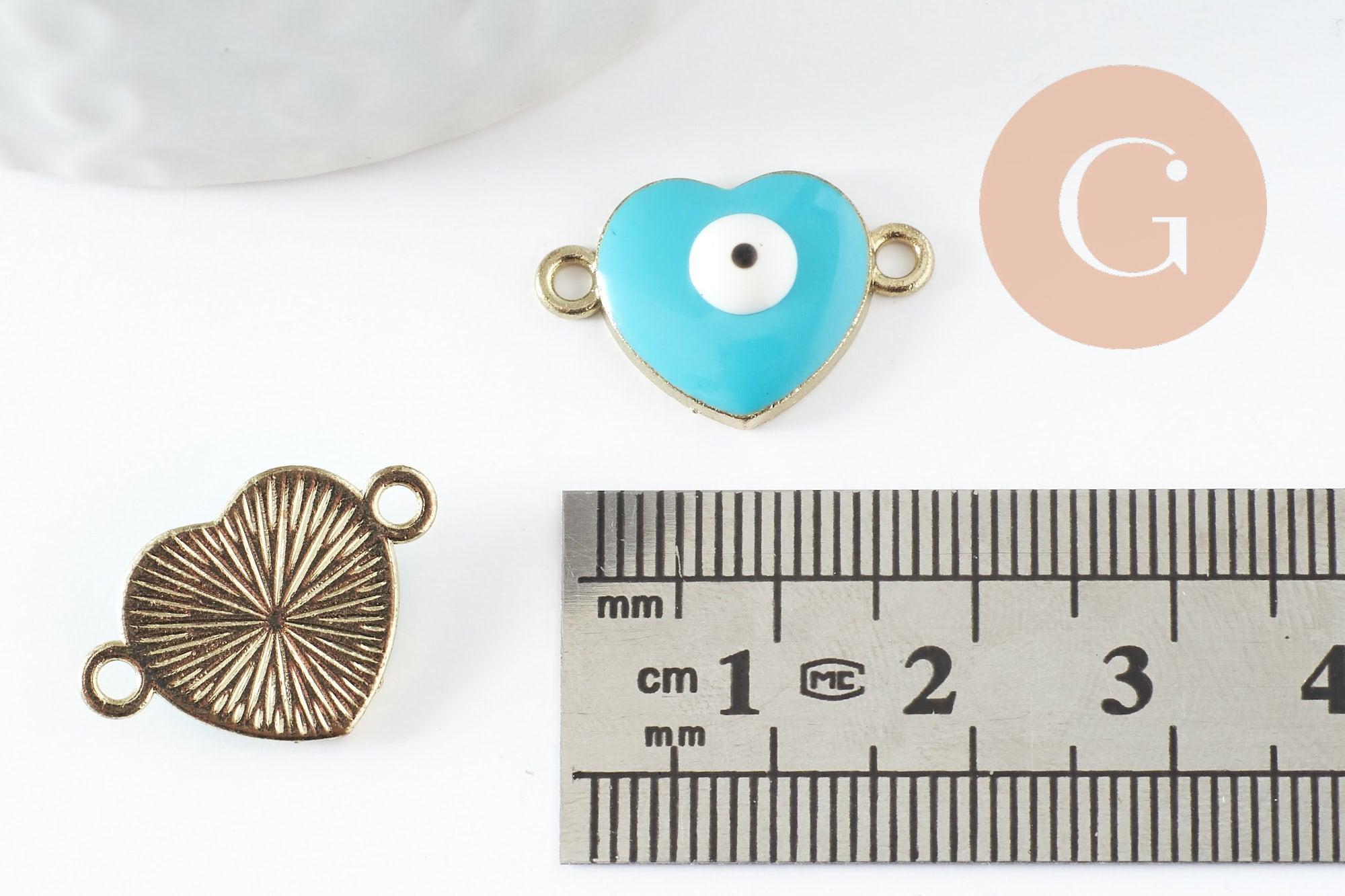 Pendentif connecteur coeur oeil protecteur émail laiton doré 18K,pendentif laiton amour pour création bijoux,20.5mm, x2 (G4295)