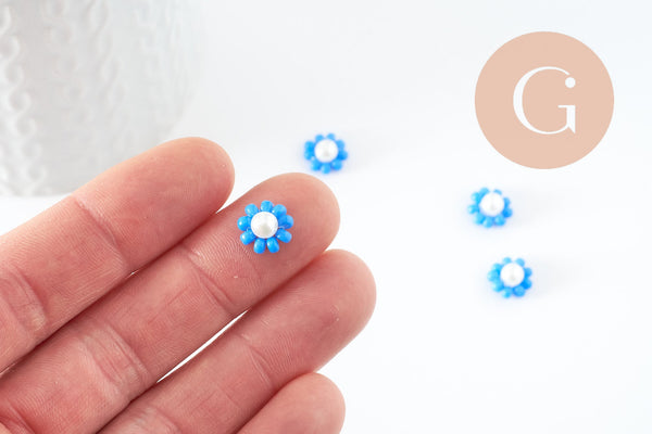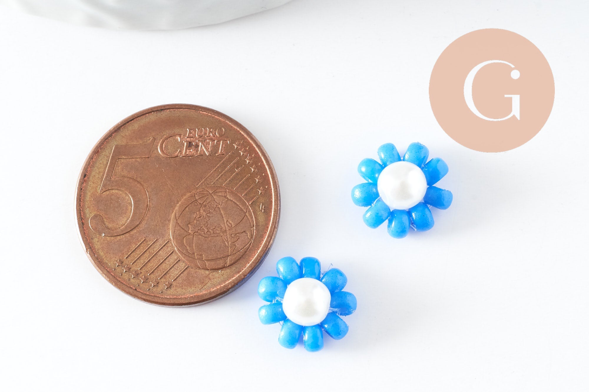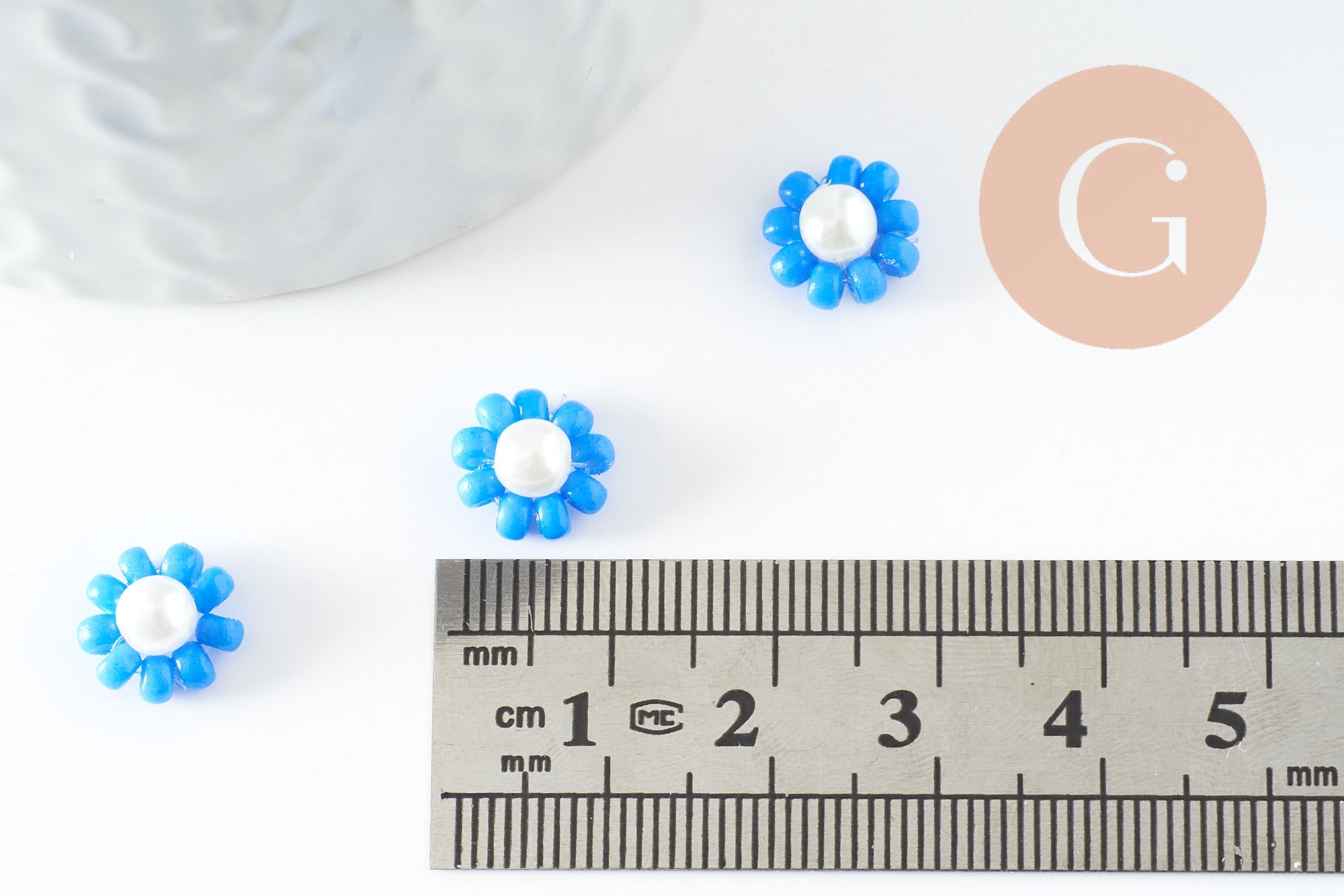 Pendentif connecteur fleur rocaille verre bleu,pendentif verre pour création bijoux, 10mm,x5 (G4025)