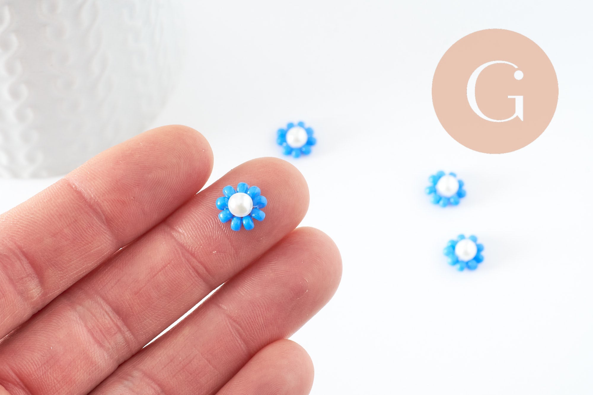 Un bonito conjunto de flores con semillas de vidrio azul, para hacer joyas vegetales, gri-gris y joyas para ofrecer. también son complementos ideales para combinar con pulseras, collares y hebillas.
