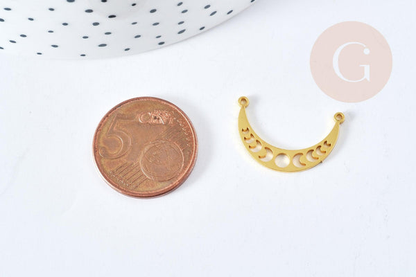 Colgante de luna calada con conector en acero inoxidable 304 dorado de 21,5 mm (x1) (G8709)