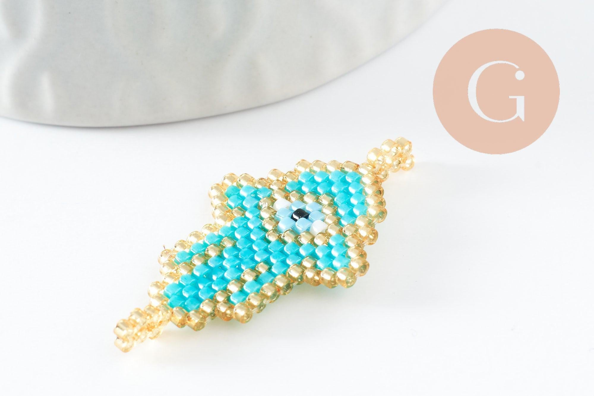 Pendentif connecteur main oeil protecteur rocaille MIYUKI TOHO turquoise or 37mm, x1 (G5725)