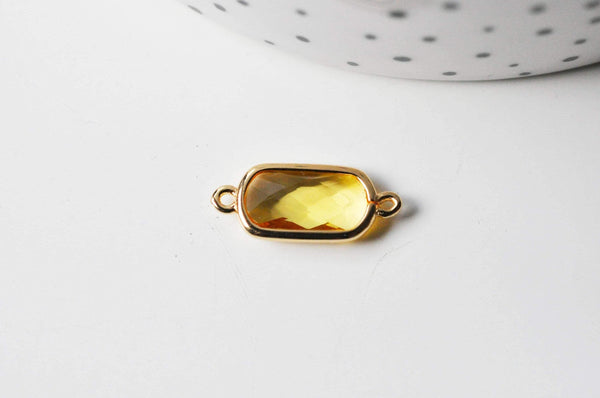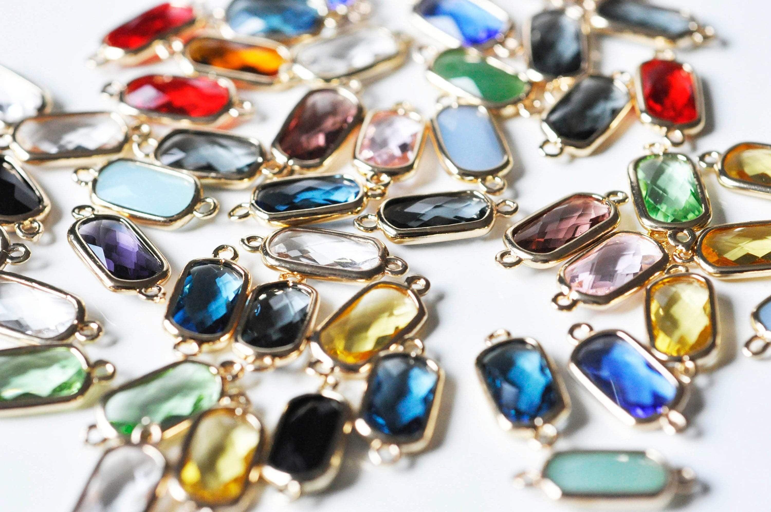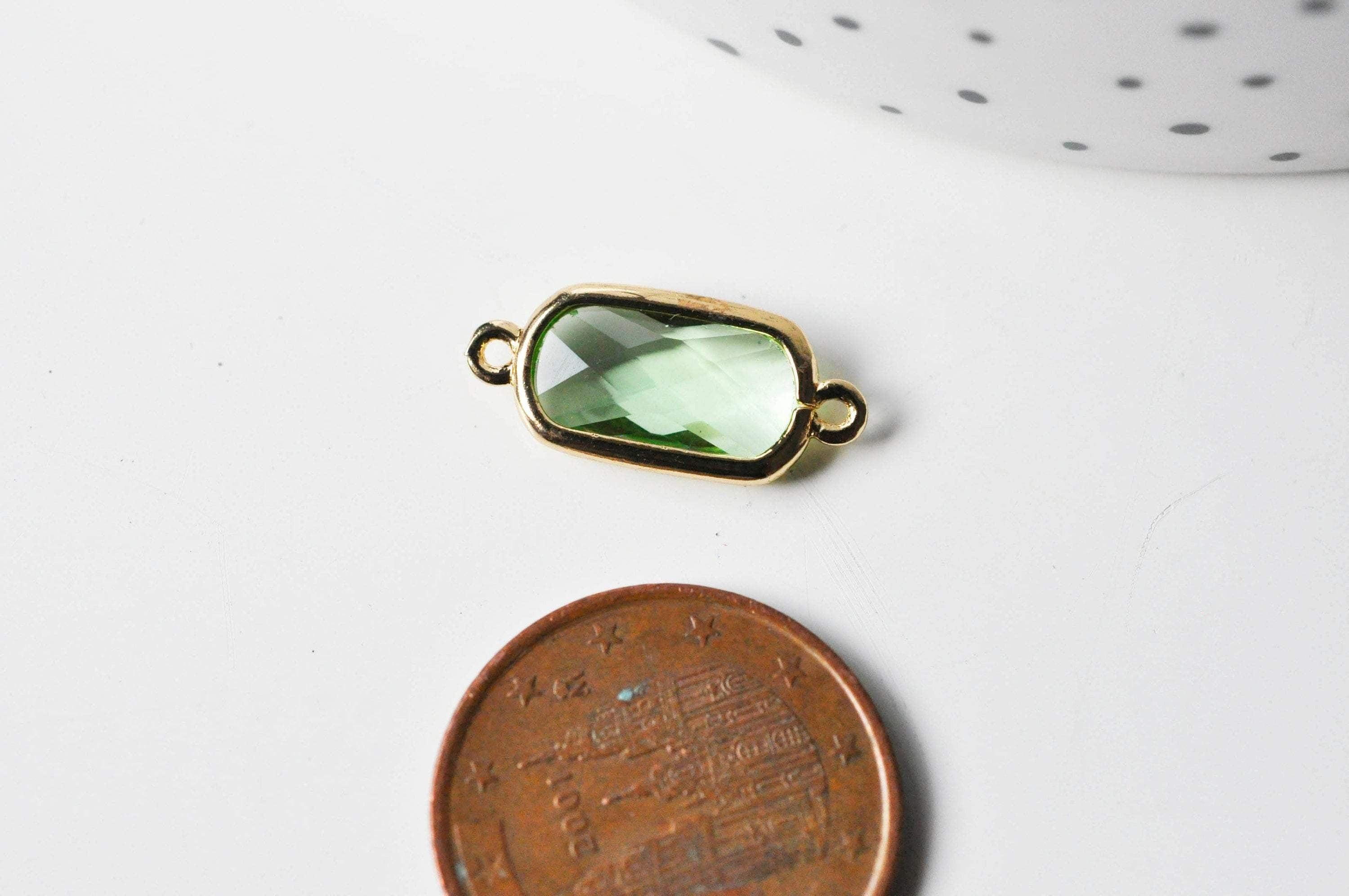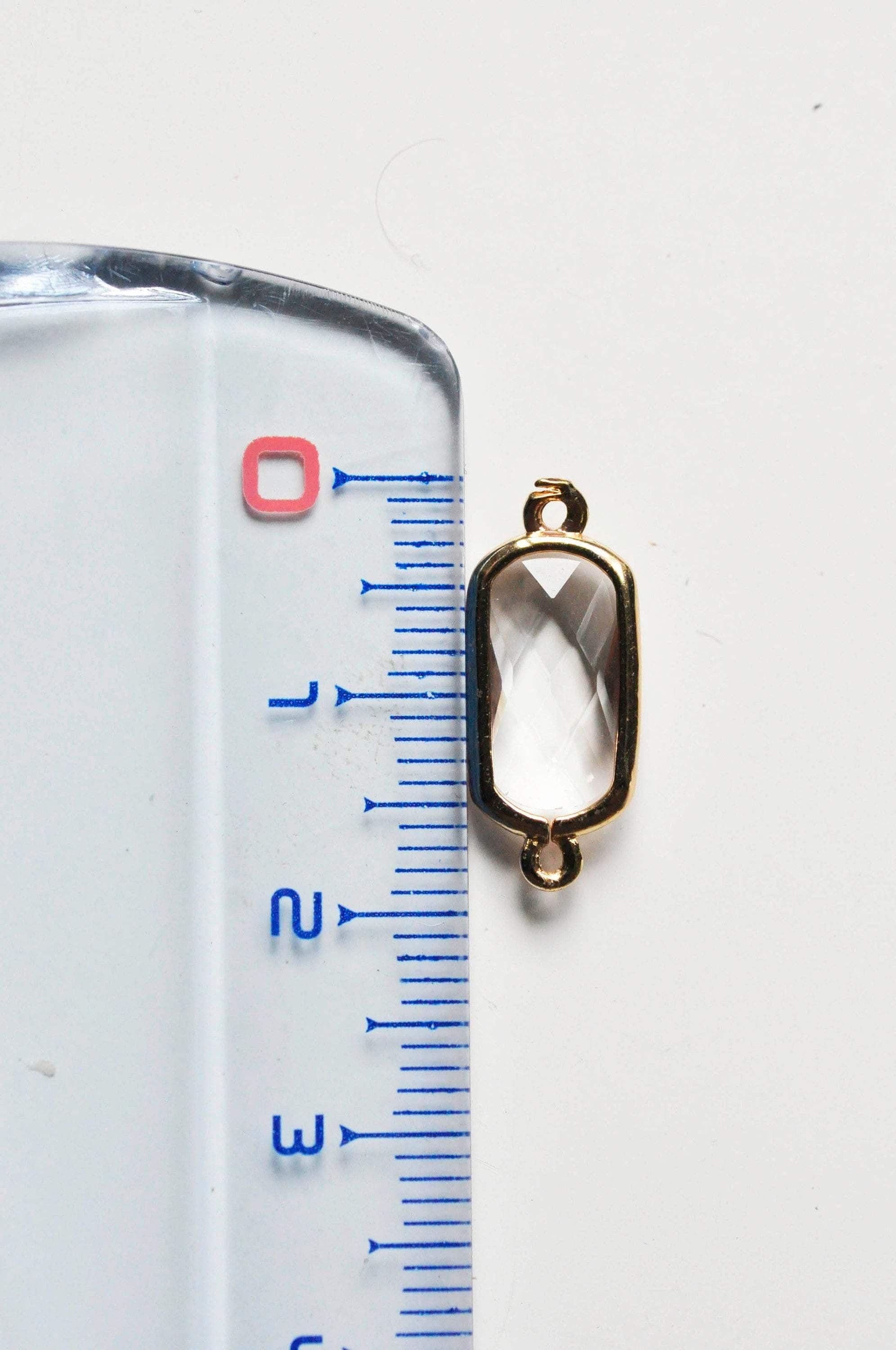 Dale brillo y refinamiento a tus creaciones DIY con este colgante rectangular de cristal de colores , delicadamente rodeado de latón dorado . Cuidadosamente facetada, esta piedra captura la luz y destaca como el elemento central ideal para tus collares, pendientes o pulseras.