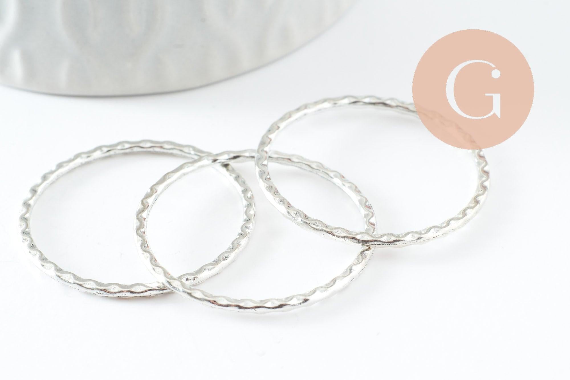 Añade un toque elegante y texturizado a tus creaciones con estos anillos conectores trenzados de zamac plateado de 30 mm. Su gran diámetro y acabado en plata antigua los convierten en piezas versátiles y modernas, perfectas para joyería de estilo bohemio, romántico o contemporáneo.