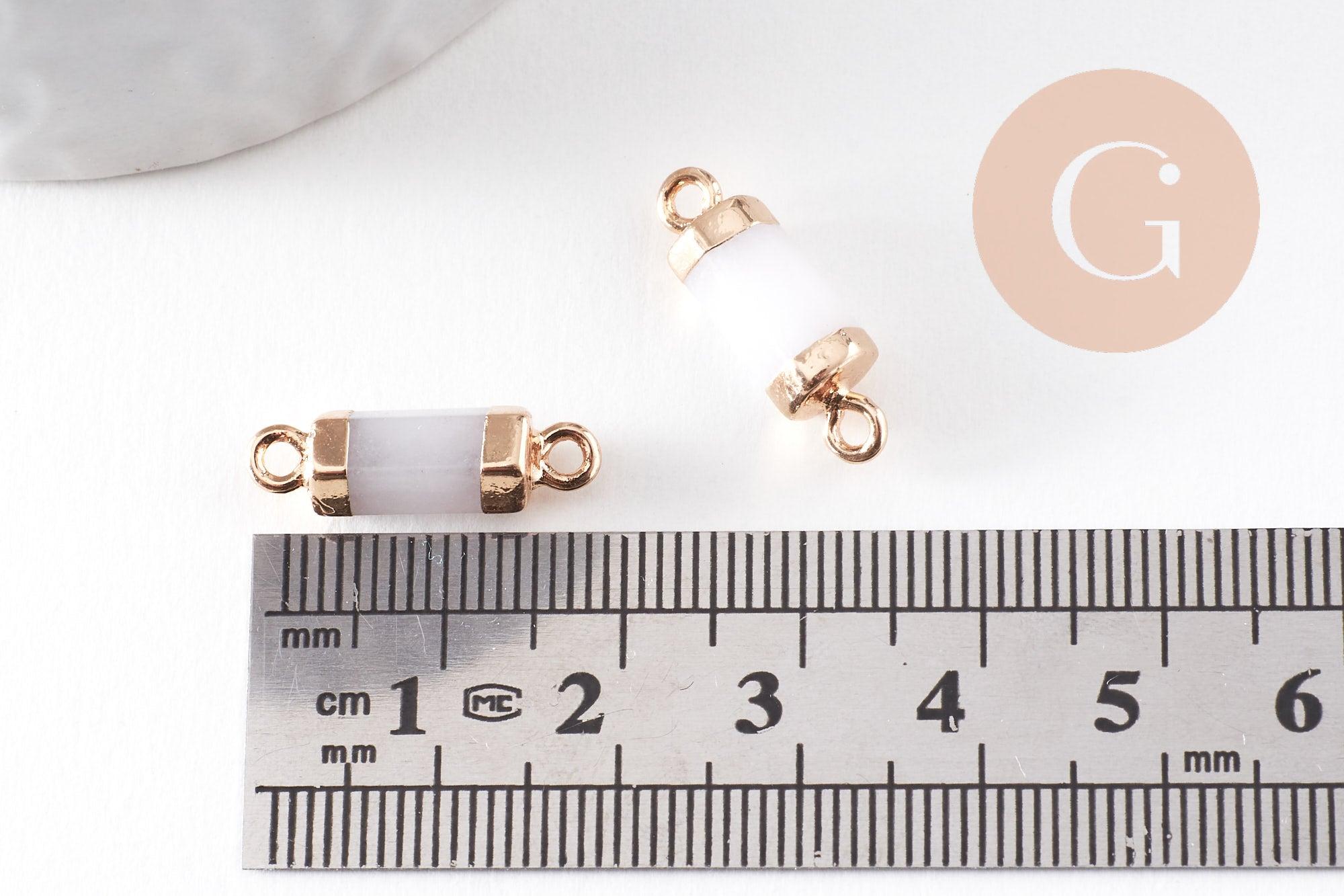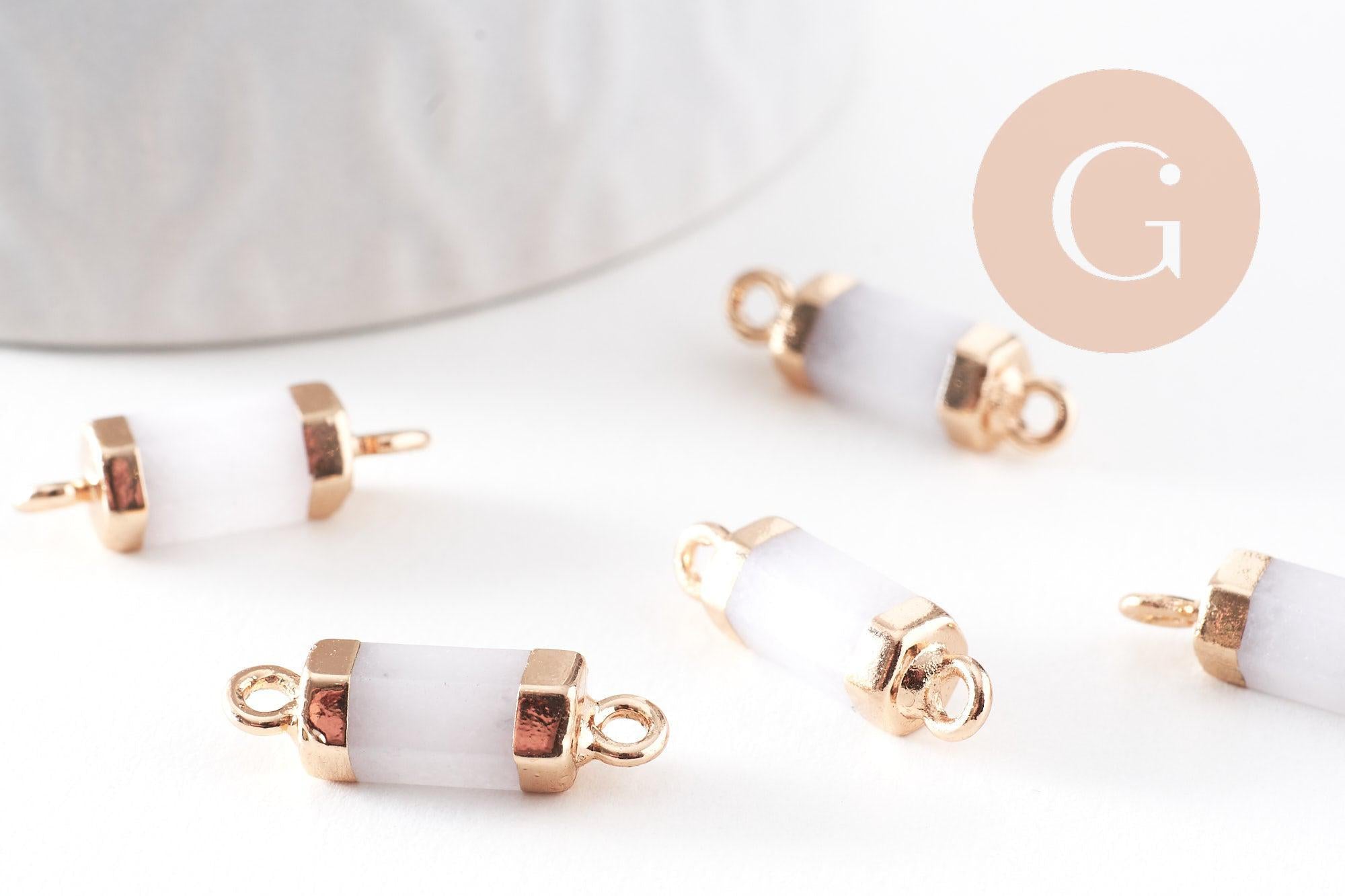 Déjate seducir por este pequeño colgante de jade natural teñido de blanco con su soporte dorado, en forma de tubo.