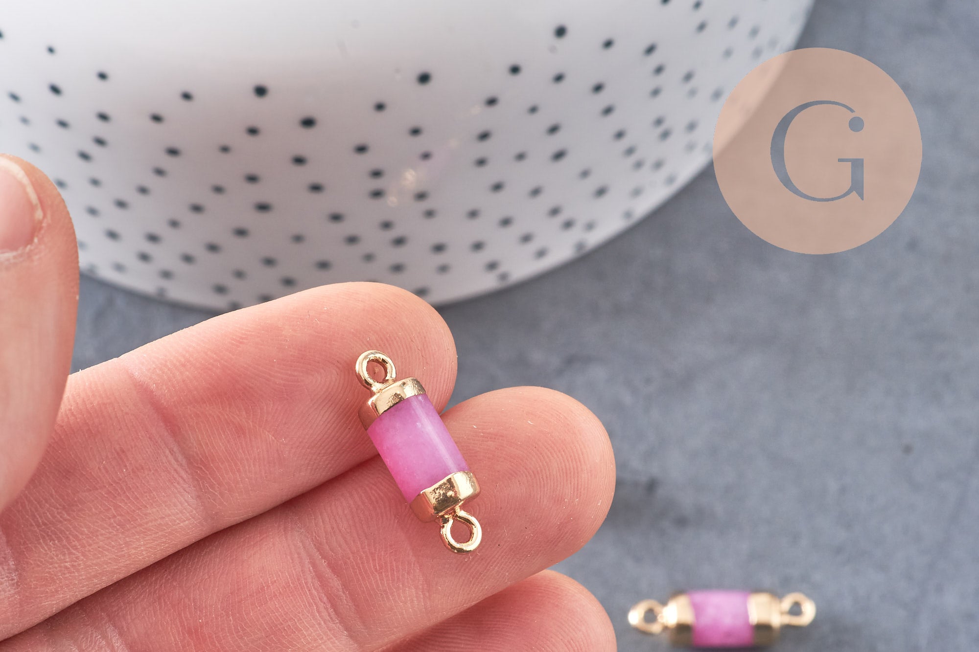 Pendentif connecteur tube jade naturel rose fer doré 20mm, x1 (G0934)