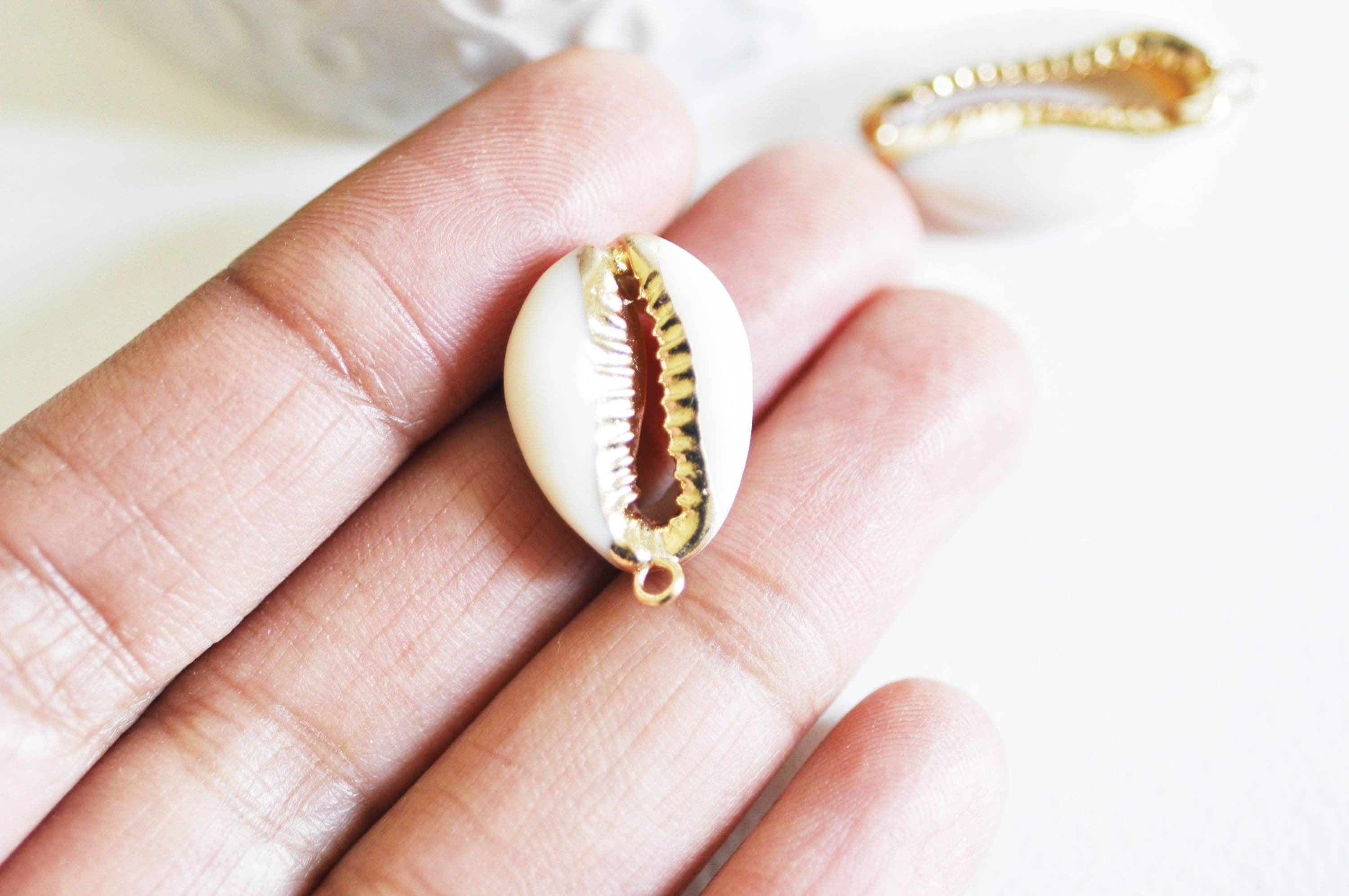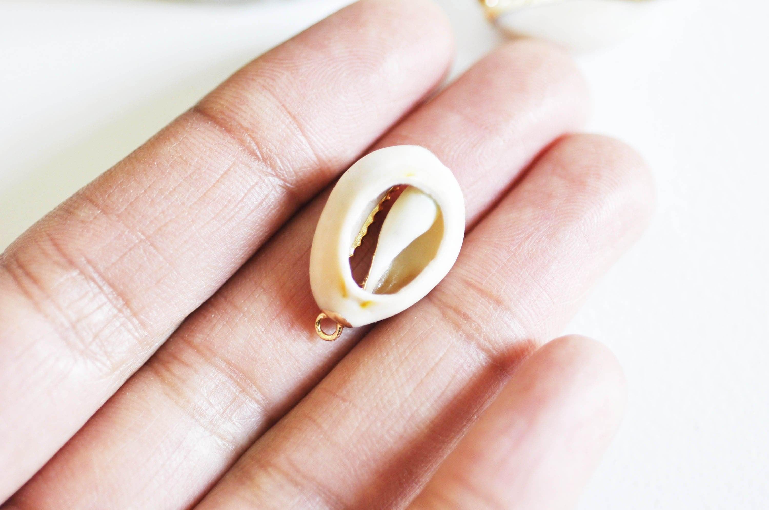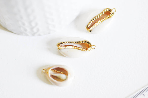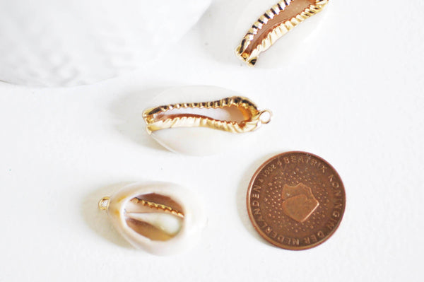 Colgante de concha cauri natural abierta en oro, colgante de oro, creación de joyas, joya de concha de caracol, concha natural, 23 mm