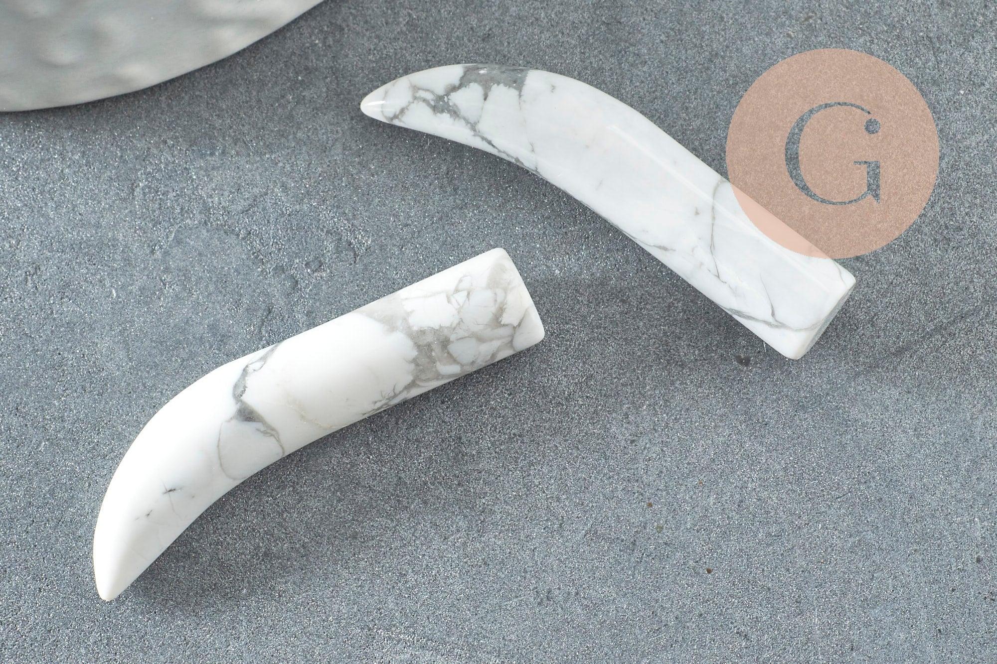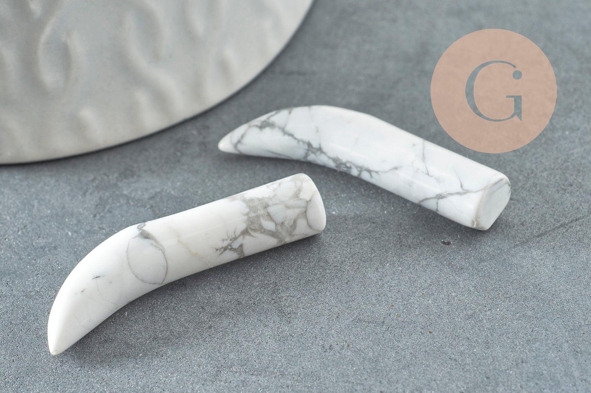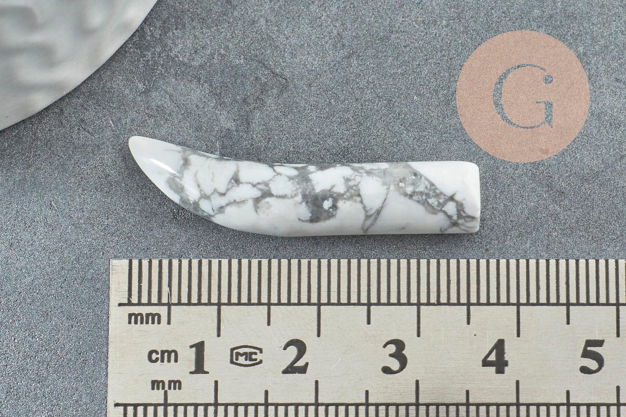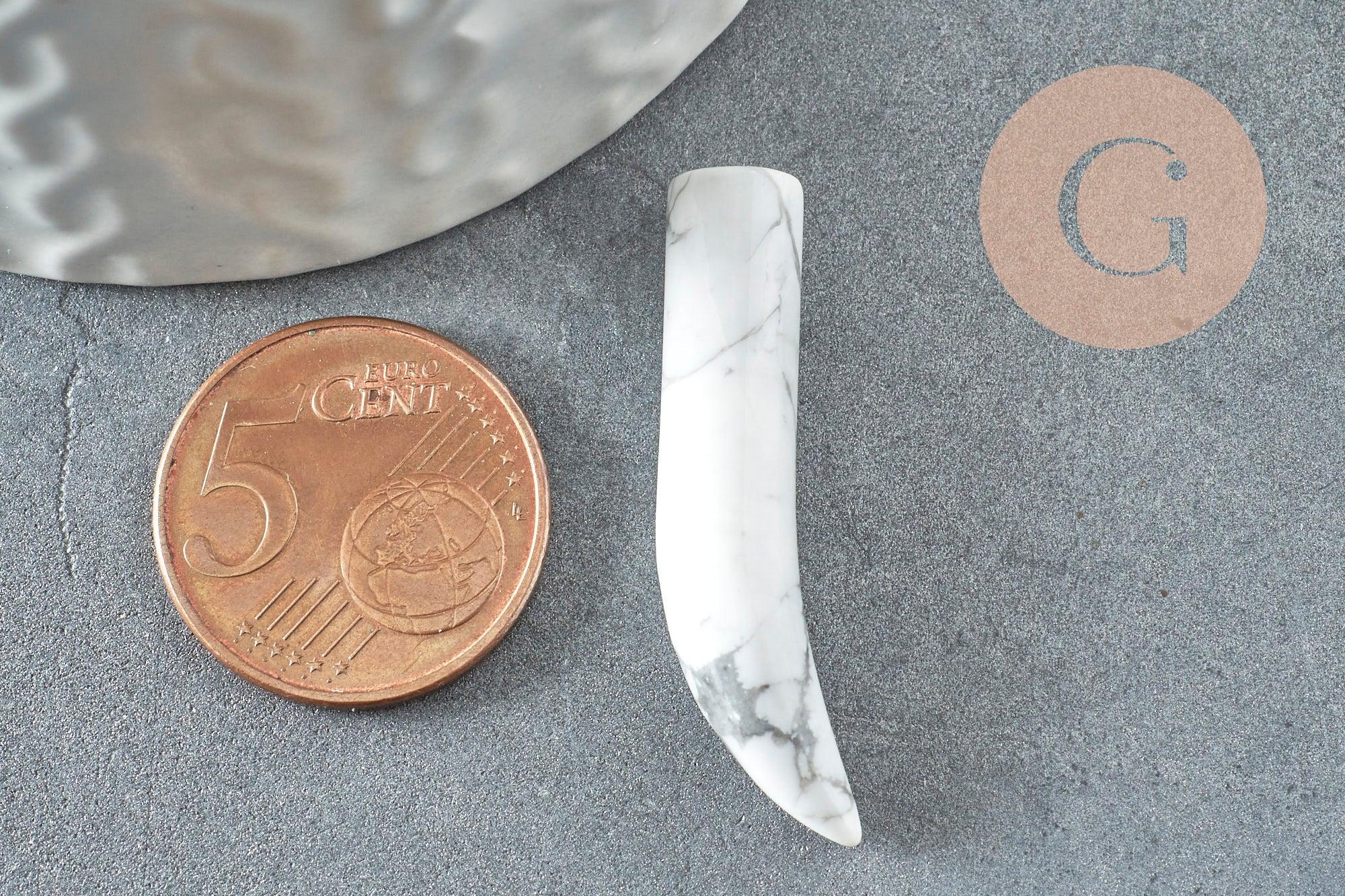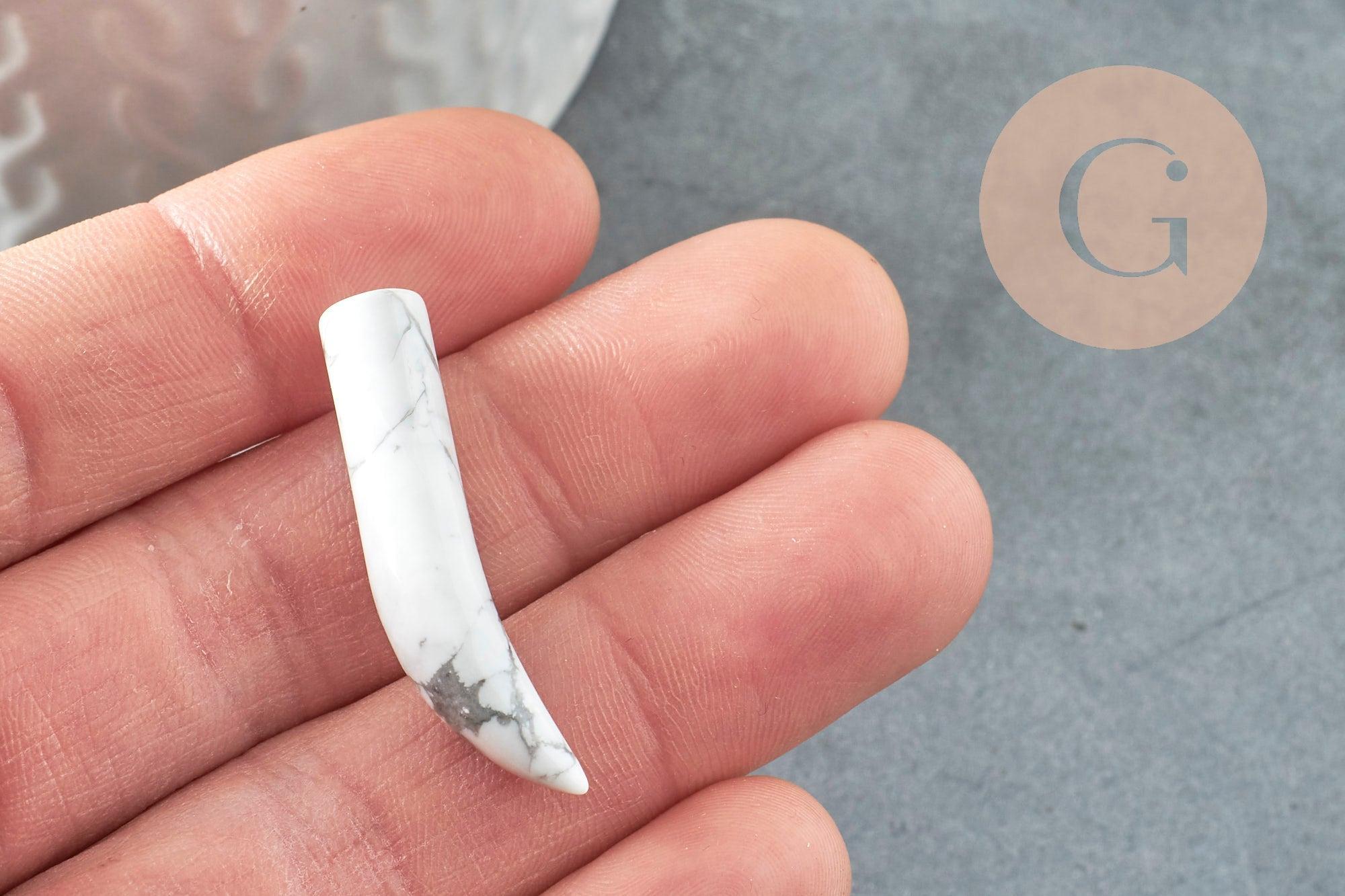 Déjese seducir por este cuerno de howlita blanca jaspeada natural, sin teñir ni perforar.