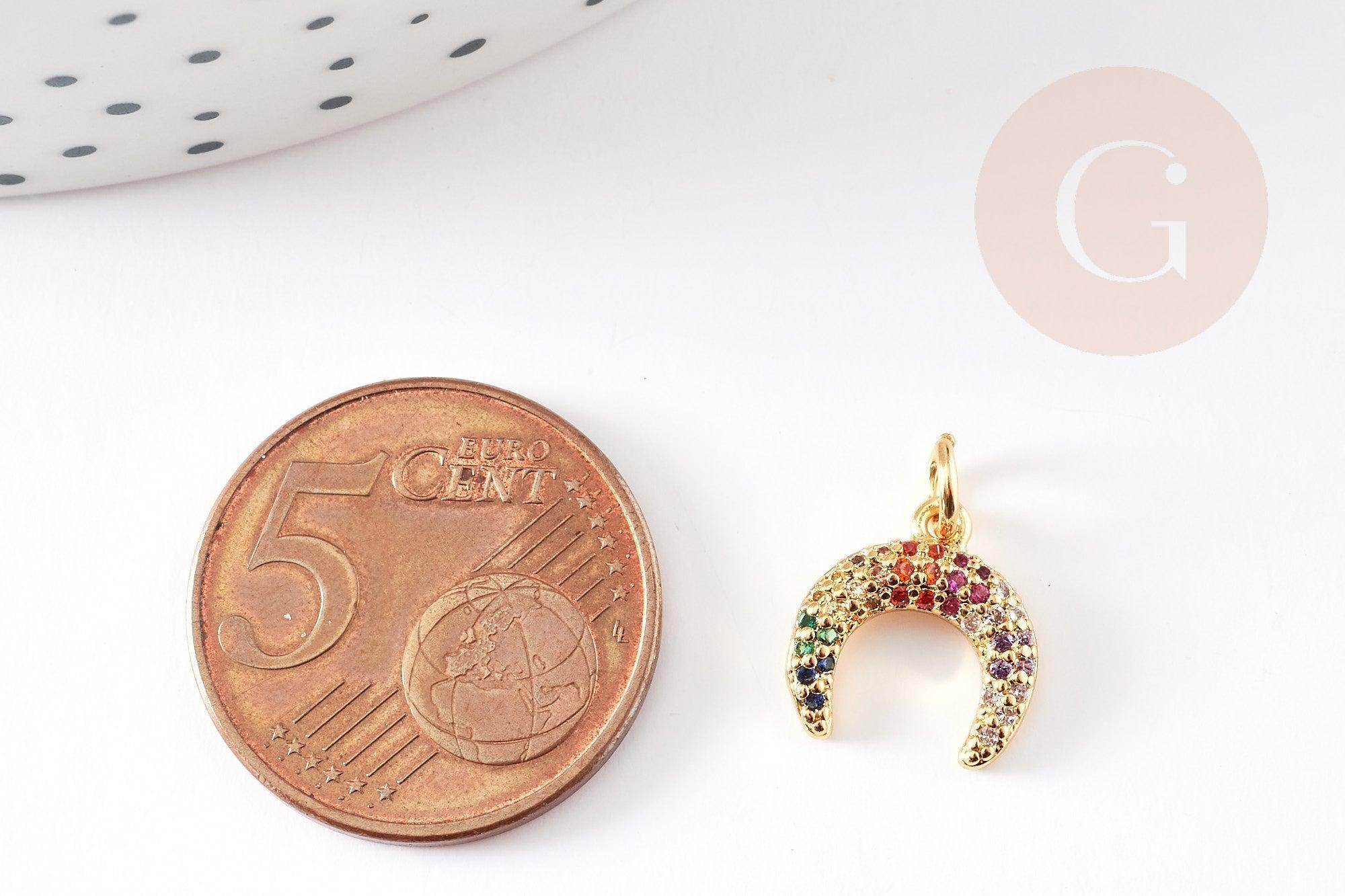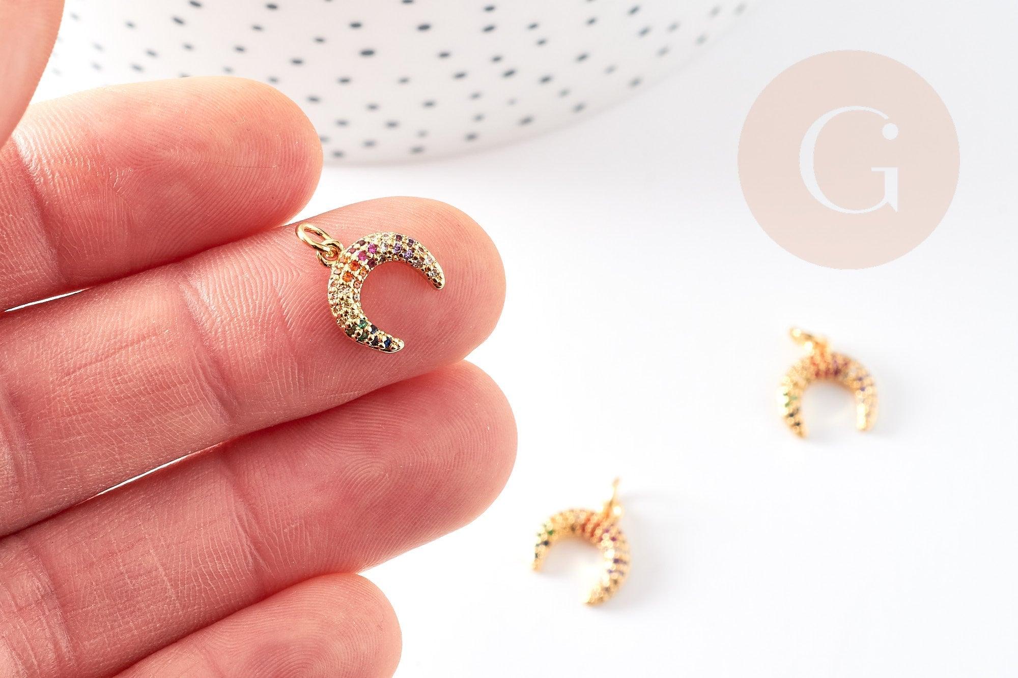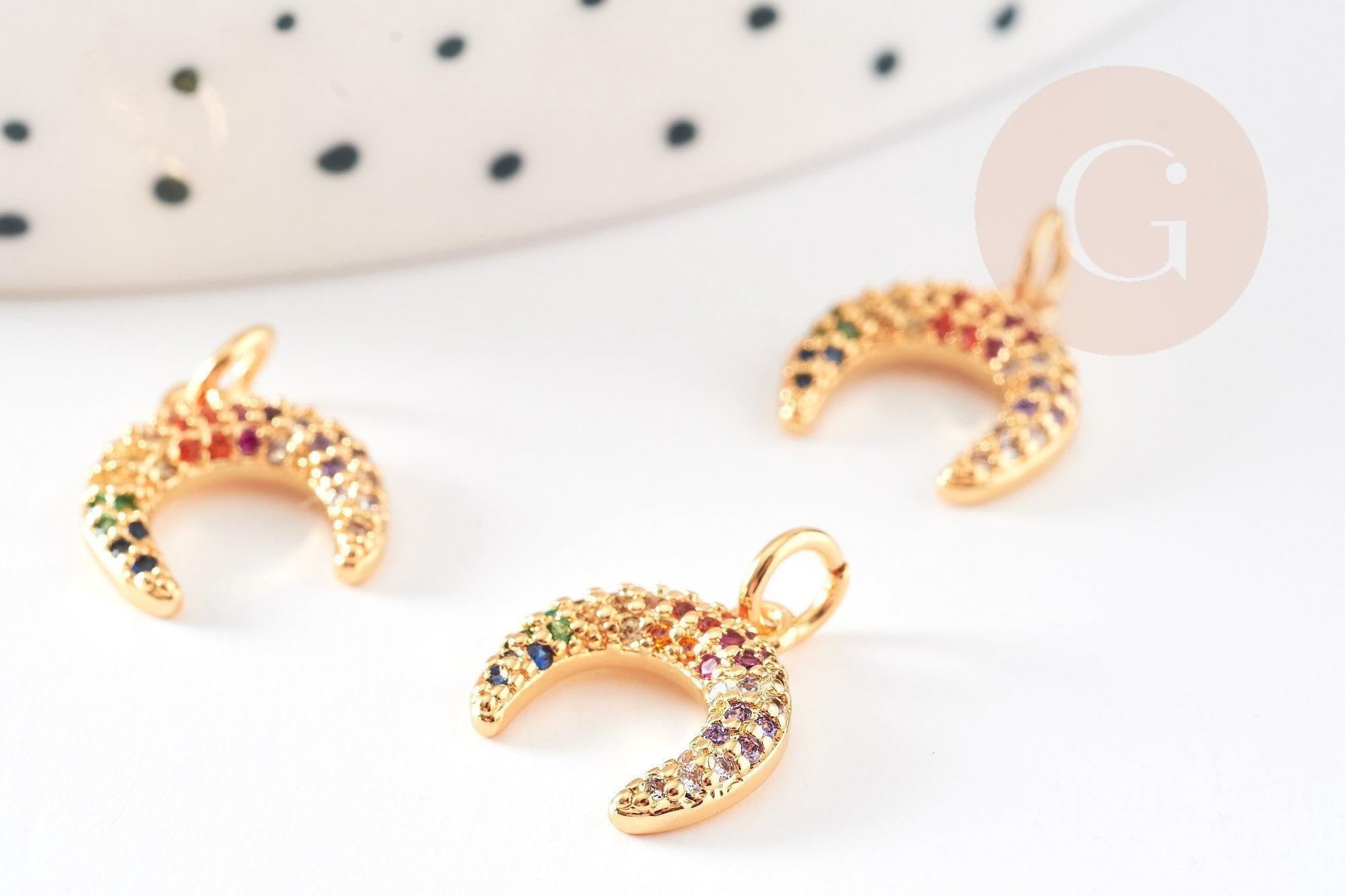 Para adoptar la tendencia celestial, adopte inmediatamente este pequeño colgante dorado en forma de media luna de latón bañado en oro de 18 quilates decorado con circonitas arcoiris.