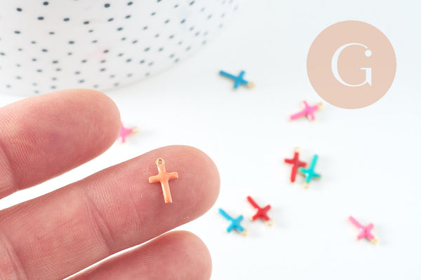 Colgante de cruz de acero inoxidable 304 con esmalte multicolor bañado en oro, 10 mm, x10 (G10747)
