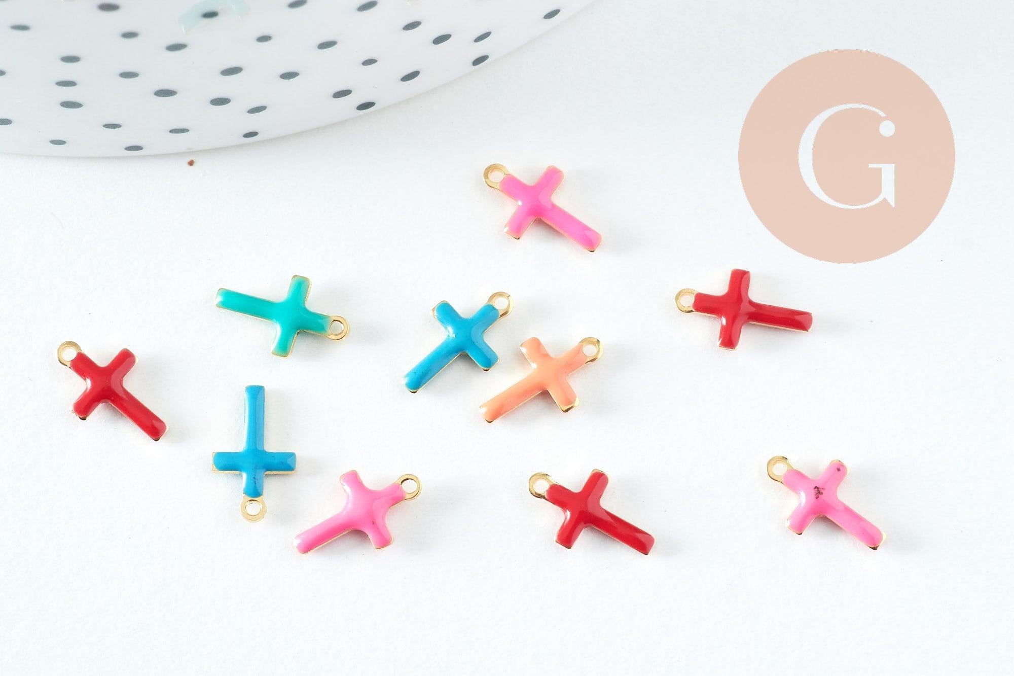 Dale un toque de alegría y simbolismo a tus creaciones DIY con este juego de colgantes de cruz de acero inoxidable 304 bañados en oro y realzados con esmalte de varios colores. Estas pequeñas y coloridas cruces son perfectas para añadir un toque moderno y vibrante a tus collares, pulseras y pendientes.