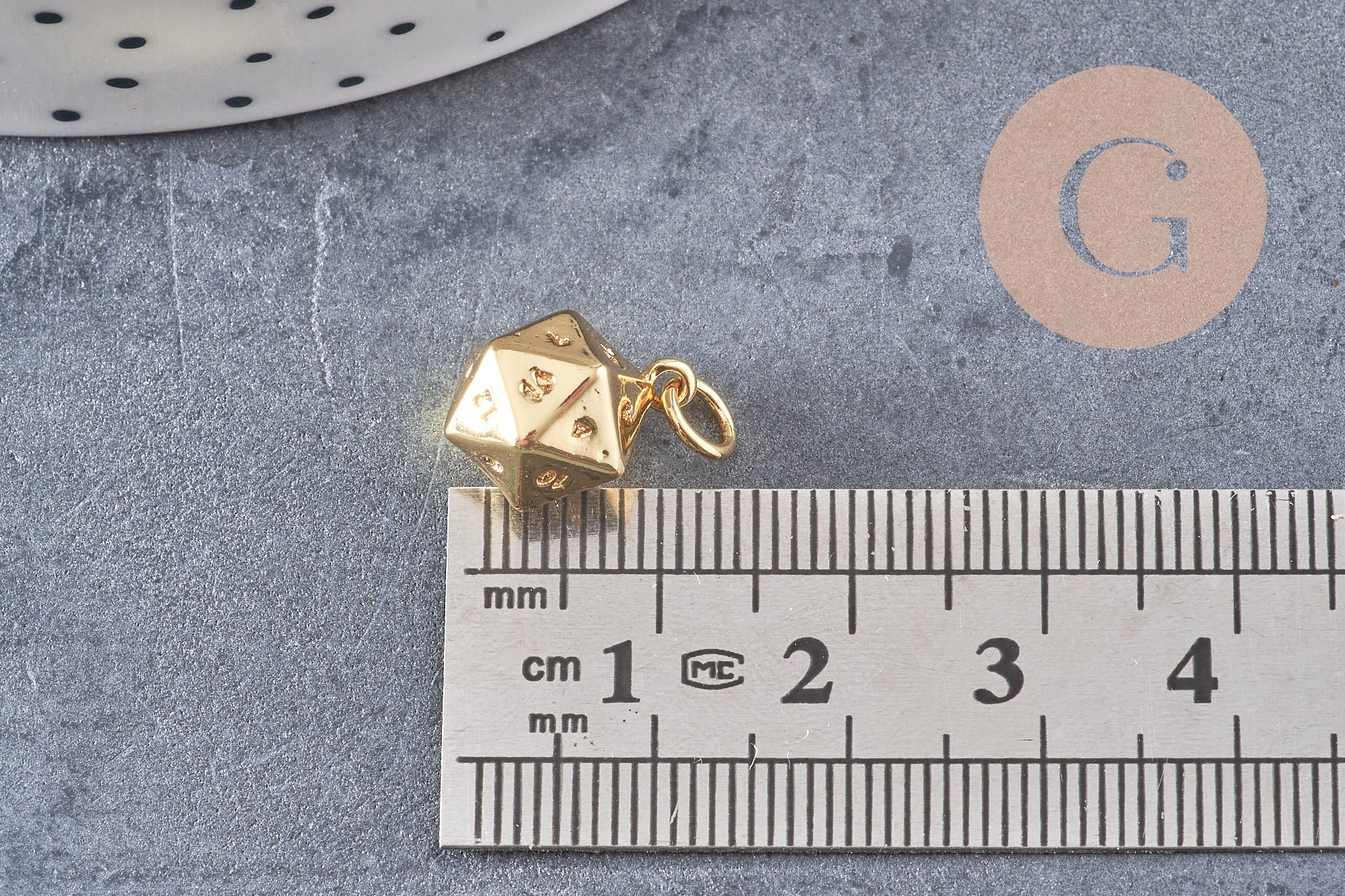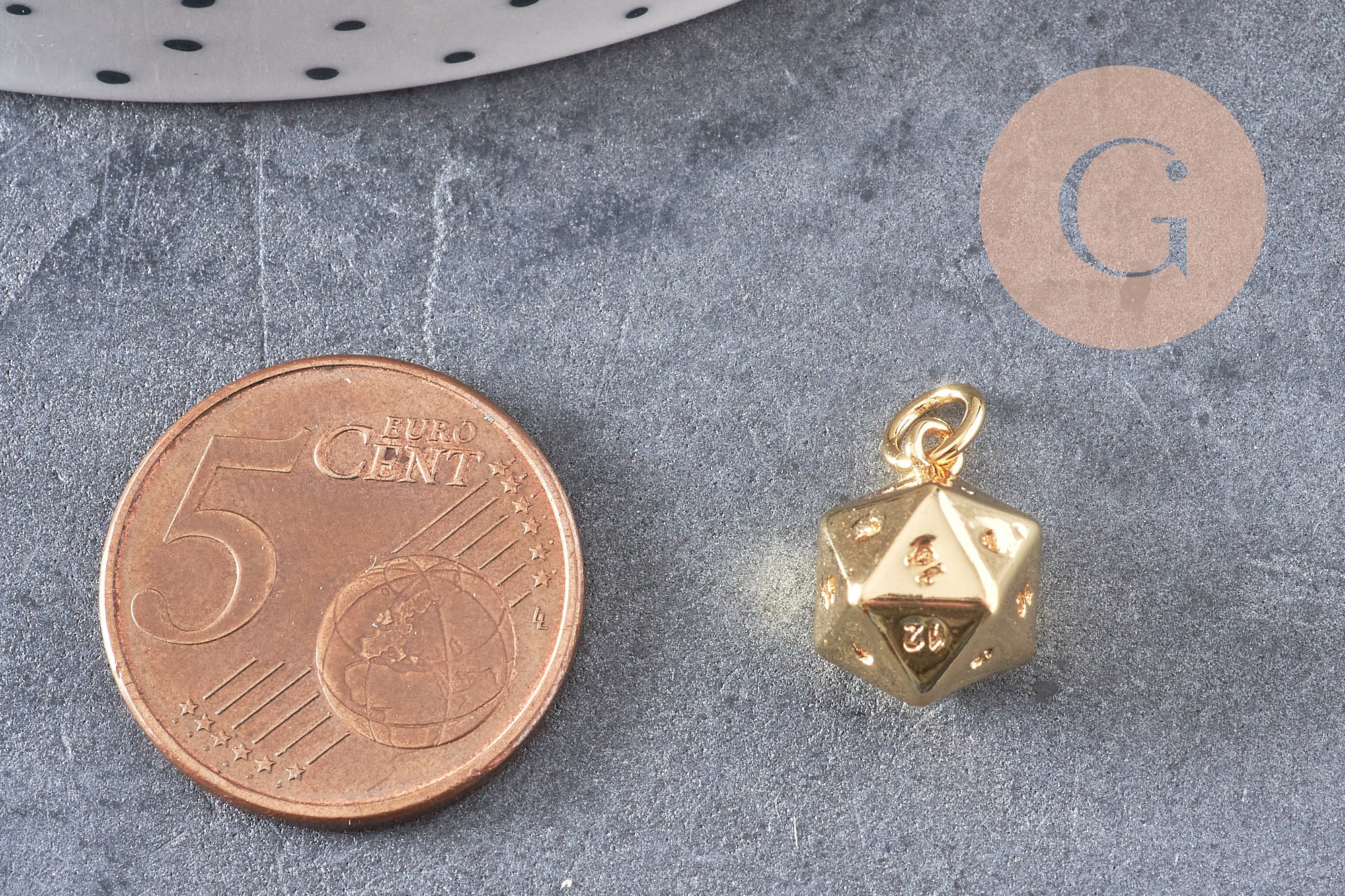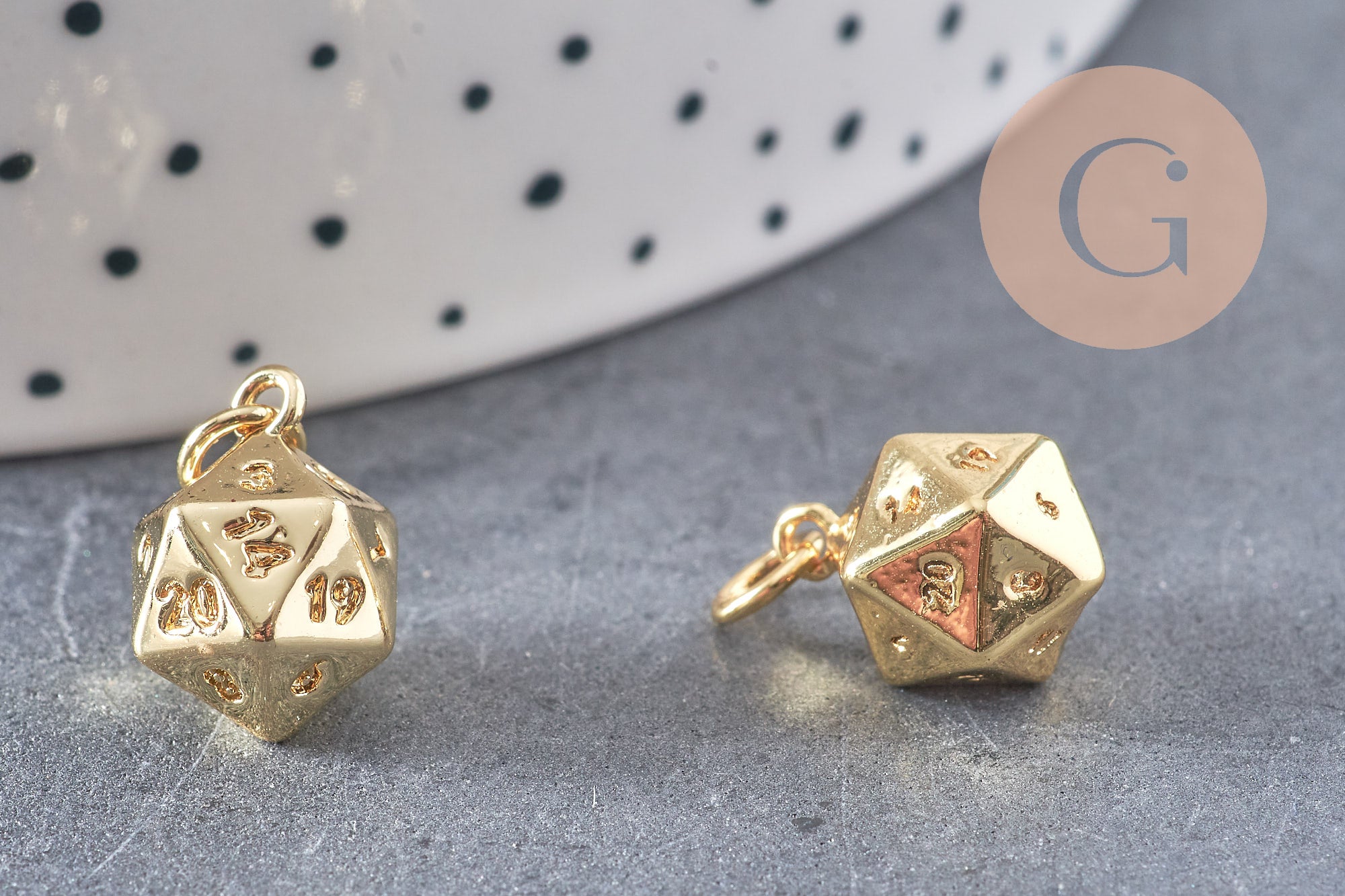 Colgante de dados de 20 caras de oro de 18K, colgante de juego de oro, amuleto de la suerte, latón dorado, colgante de juego, 13,5 mm, cada uno