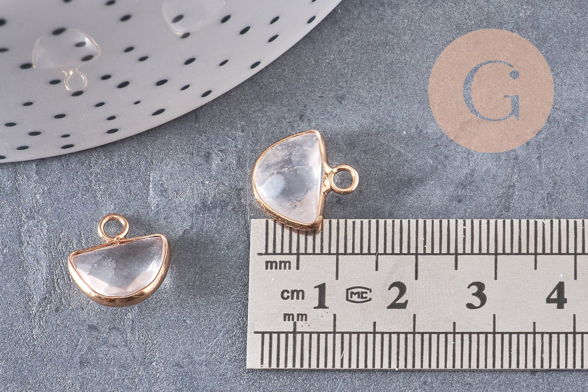 Colgante de cristal de roca semicírculo, suministros creativos, colgante de joyería, colgante de piedra, cuarzo transparente natural, colgante de cuarzo, 13,5 mm