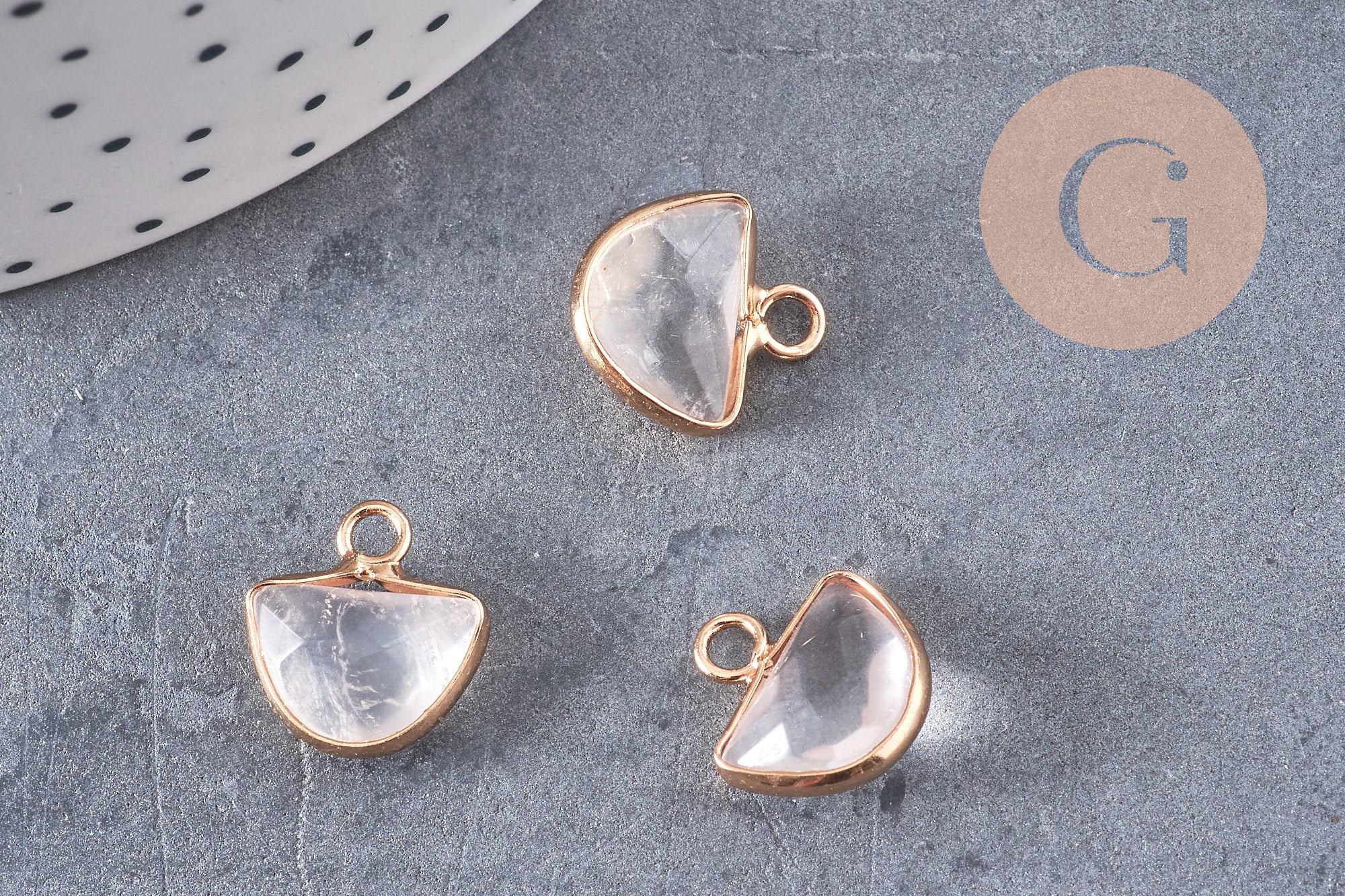 Déjese seducir por este pequeño colgante de cuarzo transparente con soporte dorado.