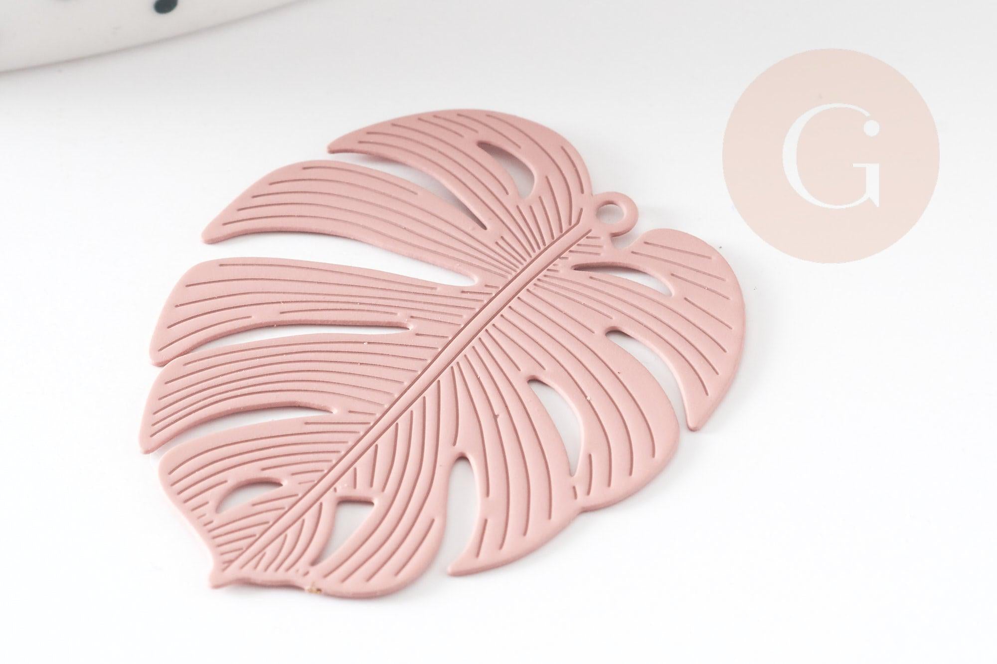 Colgante con estampado de filigrana de hoja de monstera de latón rosa, Colgante muy fino y ligero para la creación de joyas, Juego de 2,32 x 32 mm