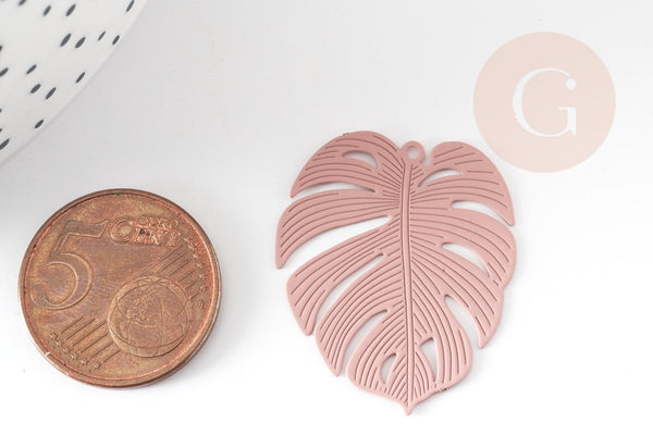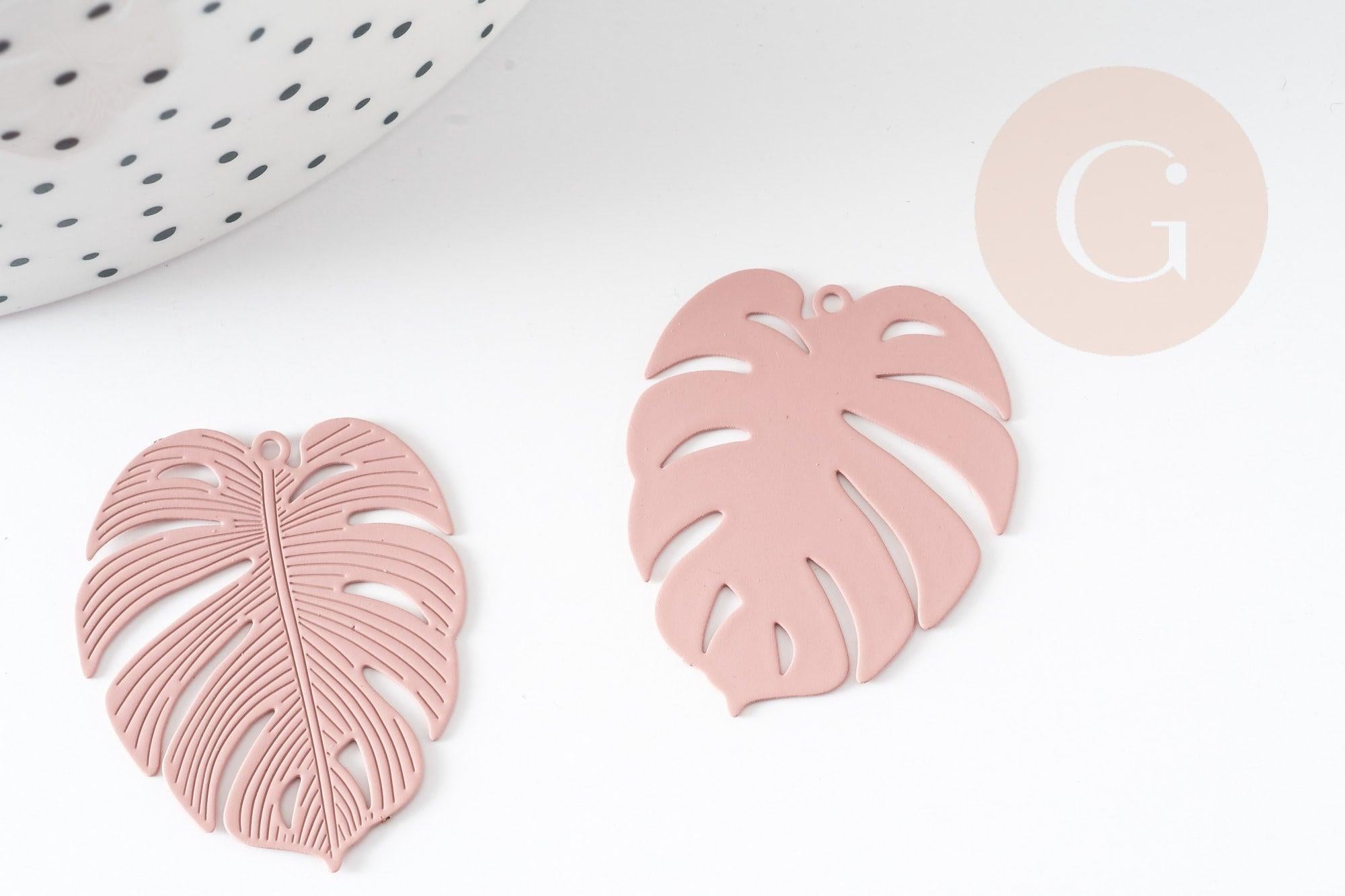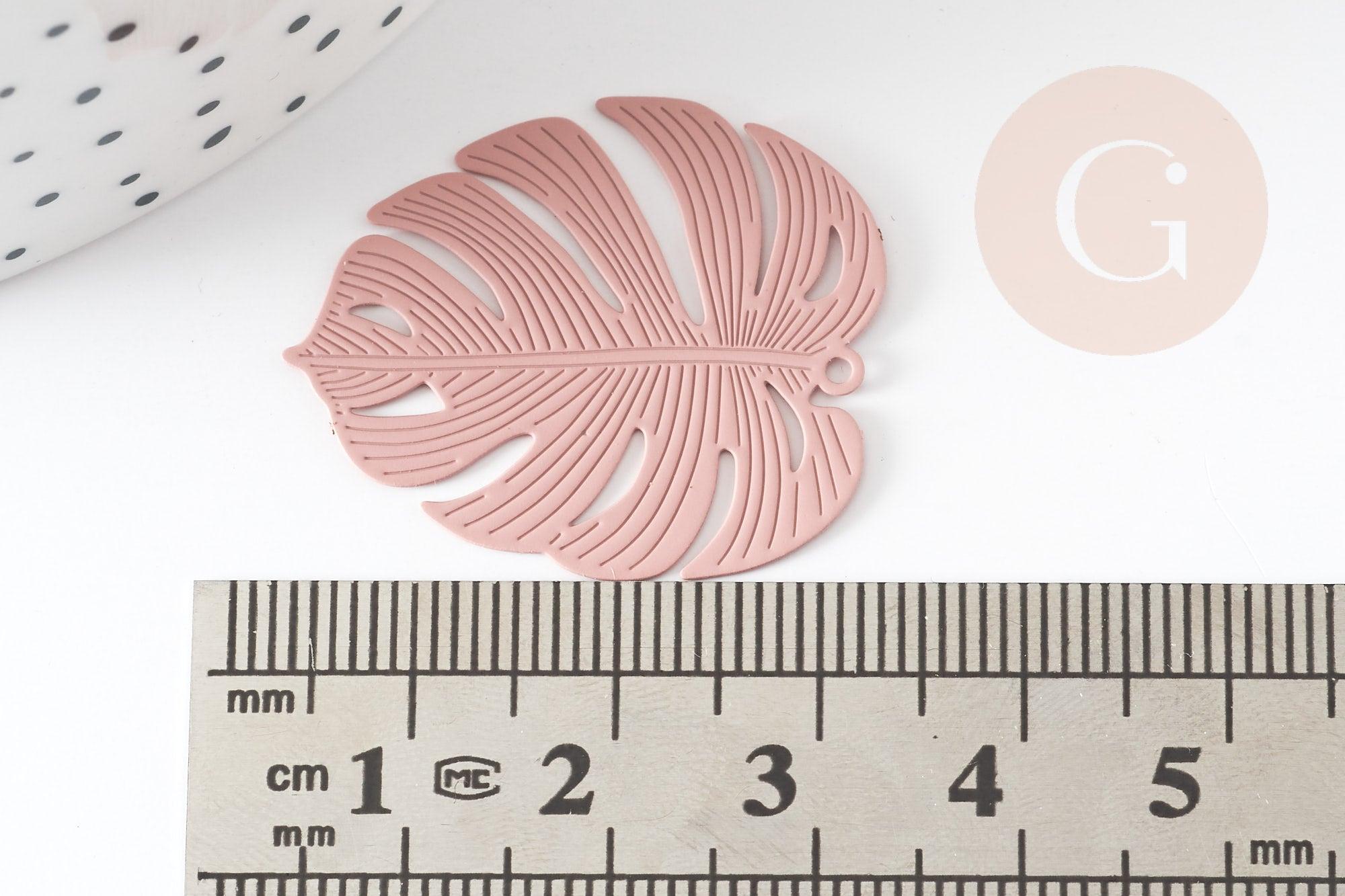 Pendentif estampe filigrane feuille monsterosa laiton rose, Pendentif très fin et léger,32 x 32 mm, x2 (G3698)