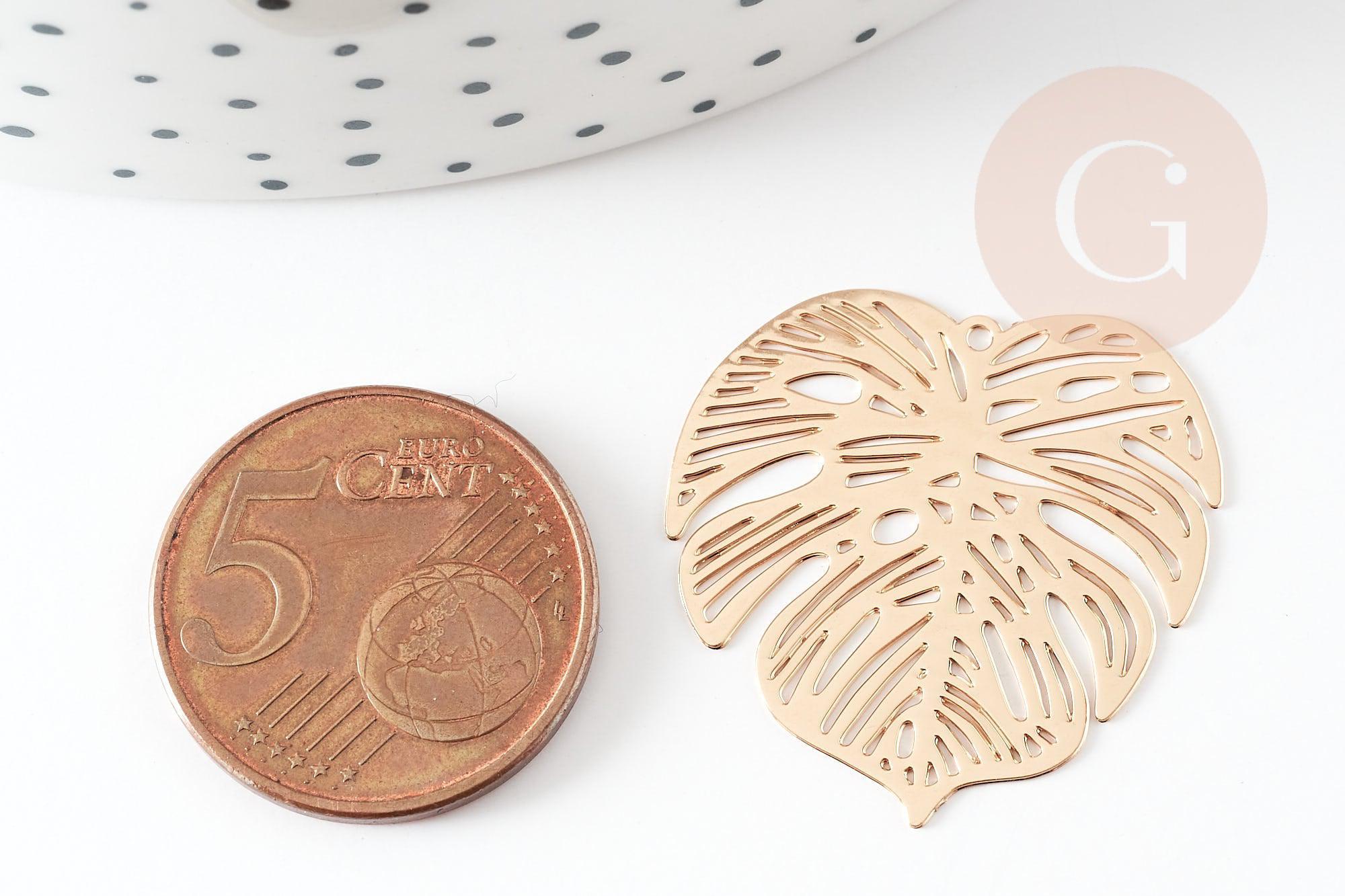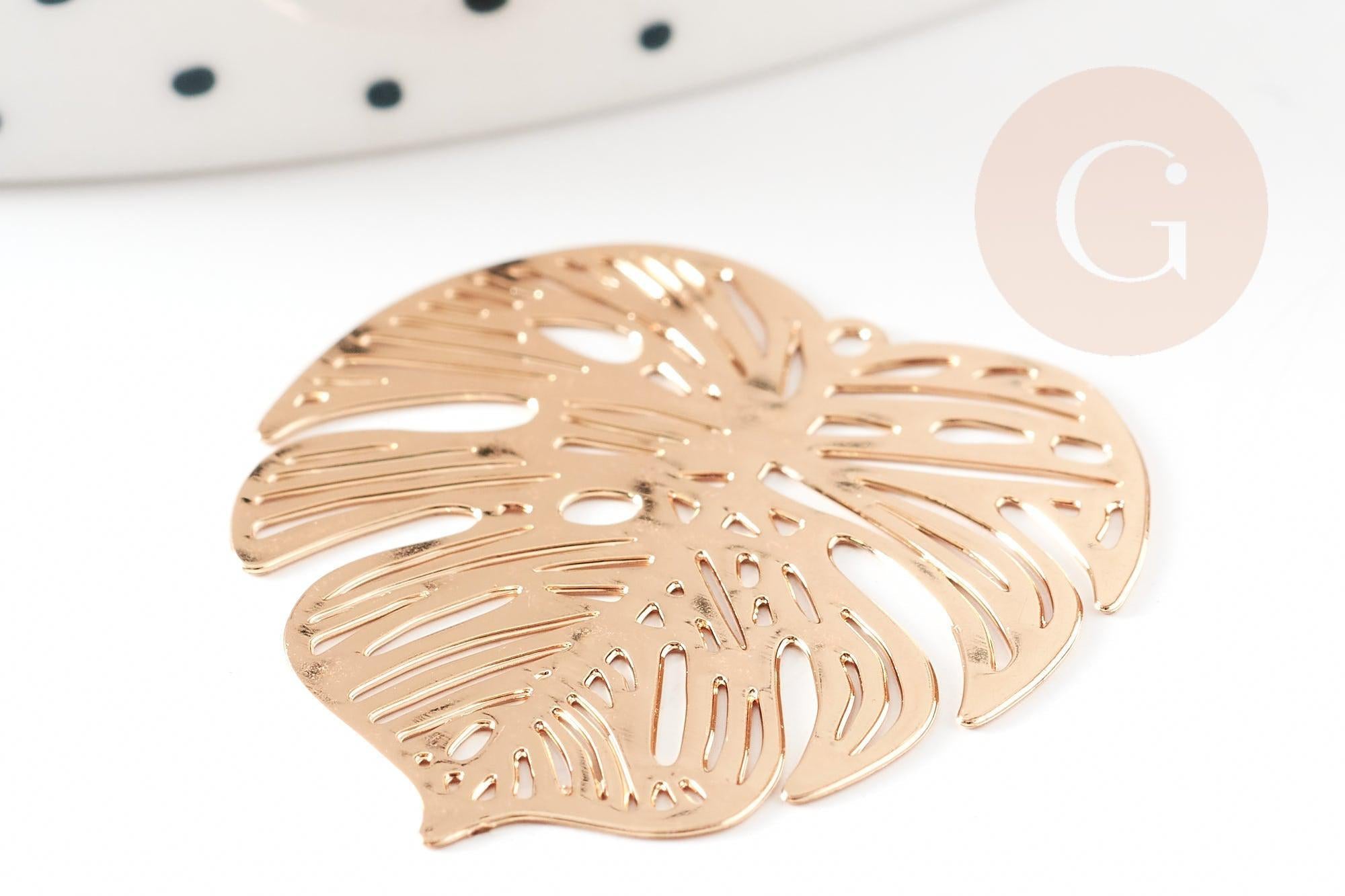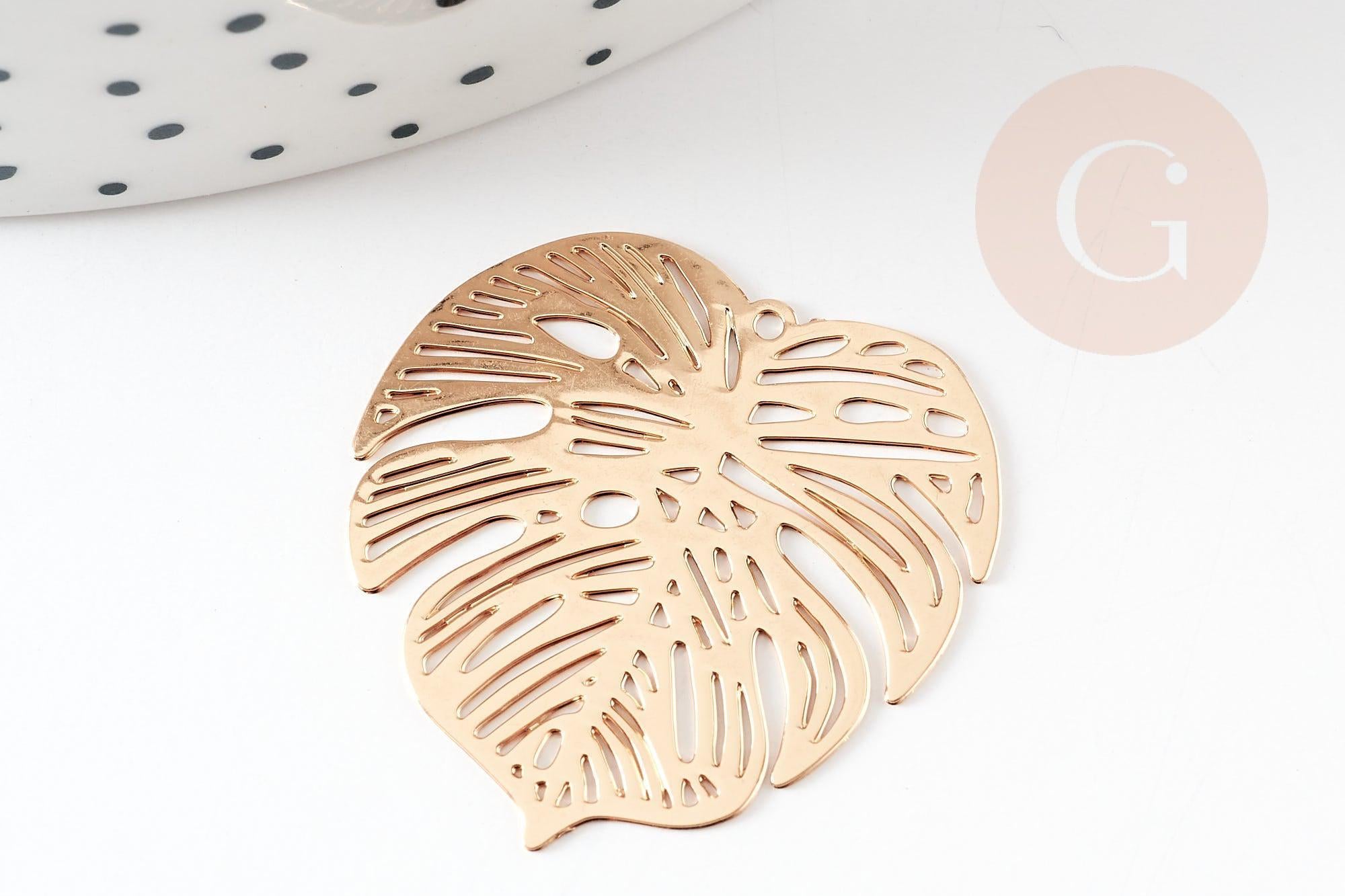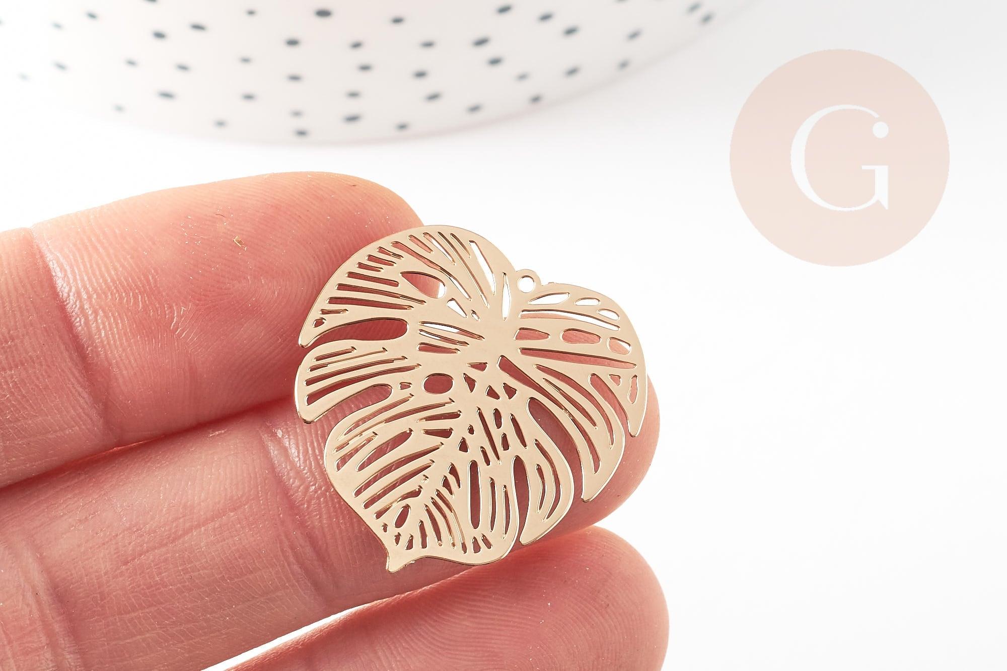 Colgante con estampado de filigrana de hoja de monstera en latón dorado, Colgante muy fino y ligero para la creación de joyas, Juego de 2,32 x 32 mm
